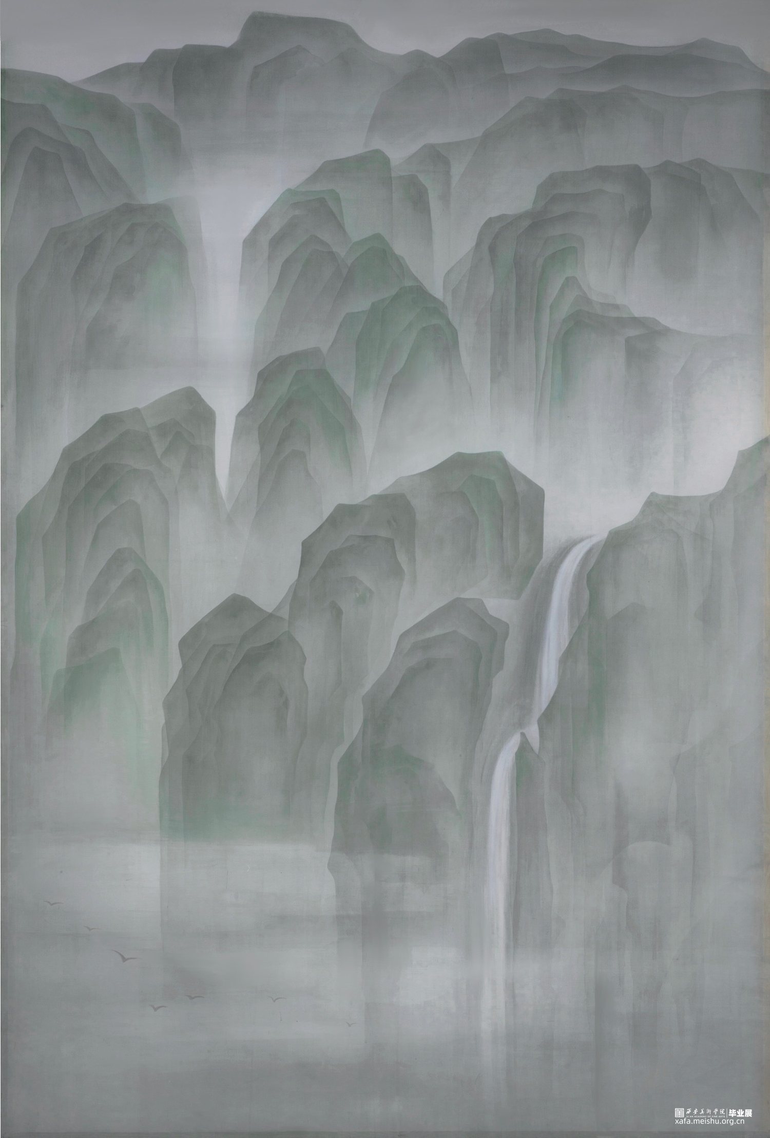 以重影穿插的语言形式来表现山川的重叠交错,营造画面清净幽深的意境。唯留下远山连绵,重峦叠嶂;山间白云,缭绕变幻;晓山晨曦,青翠欲滴。人生的感慨,历史的沉思,都融化在一片流动闪烁、如诗如画的水光山色之中。