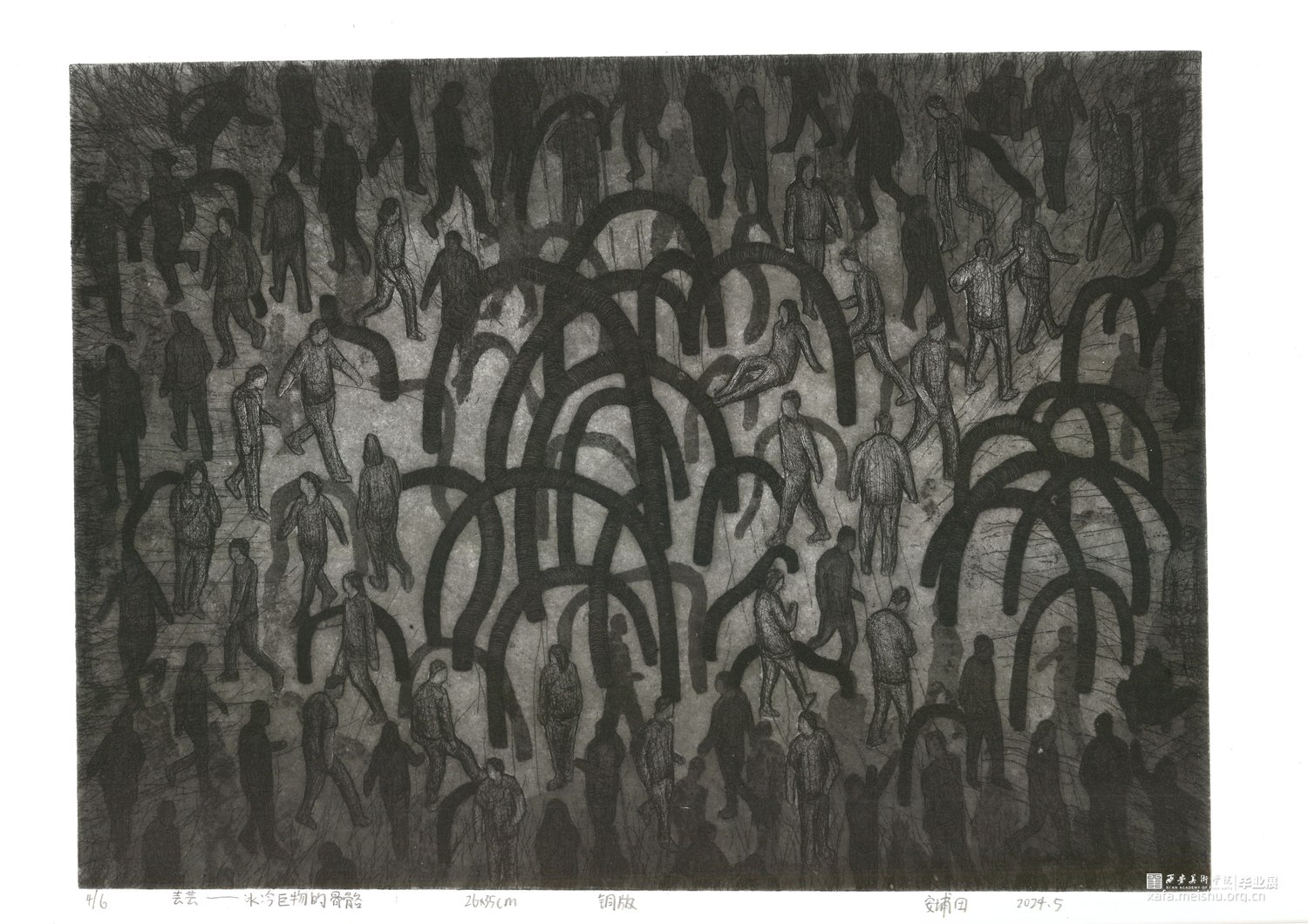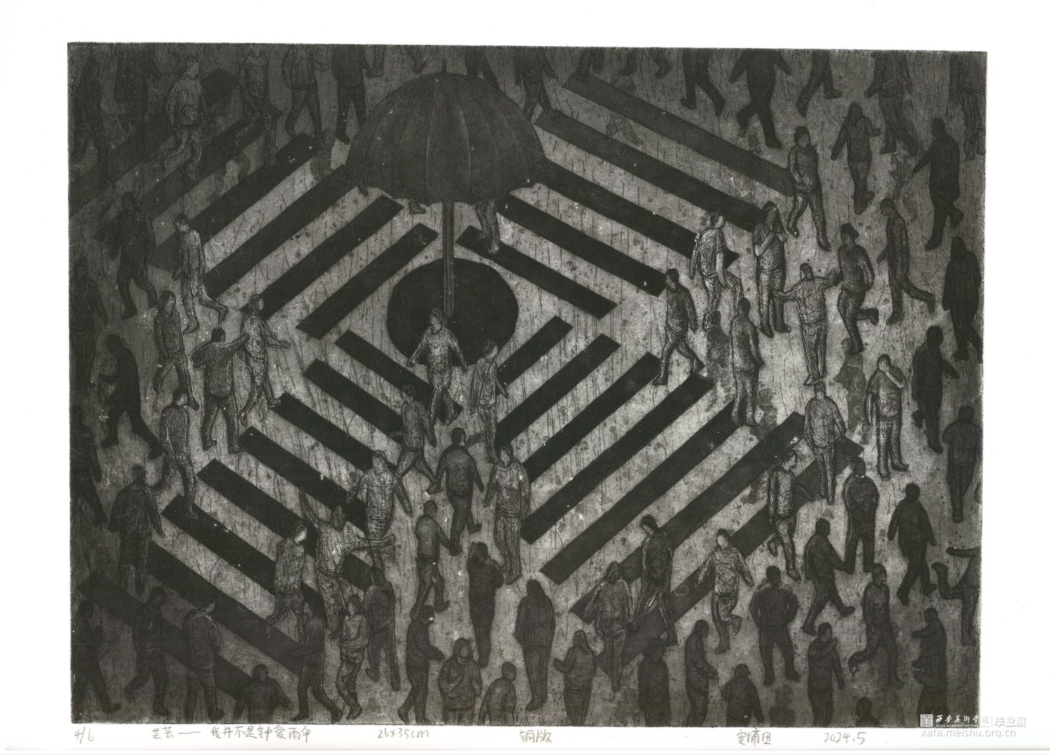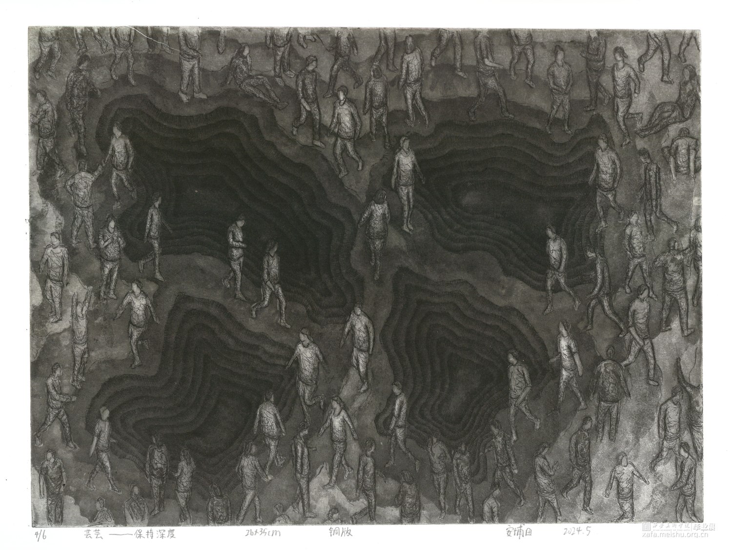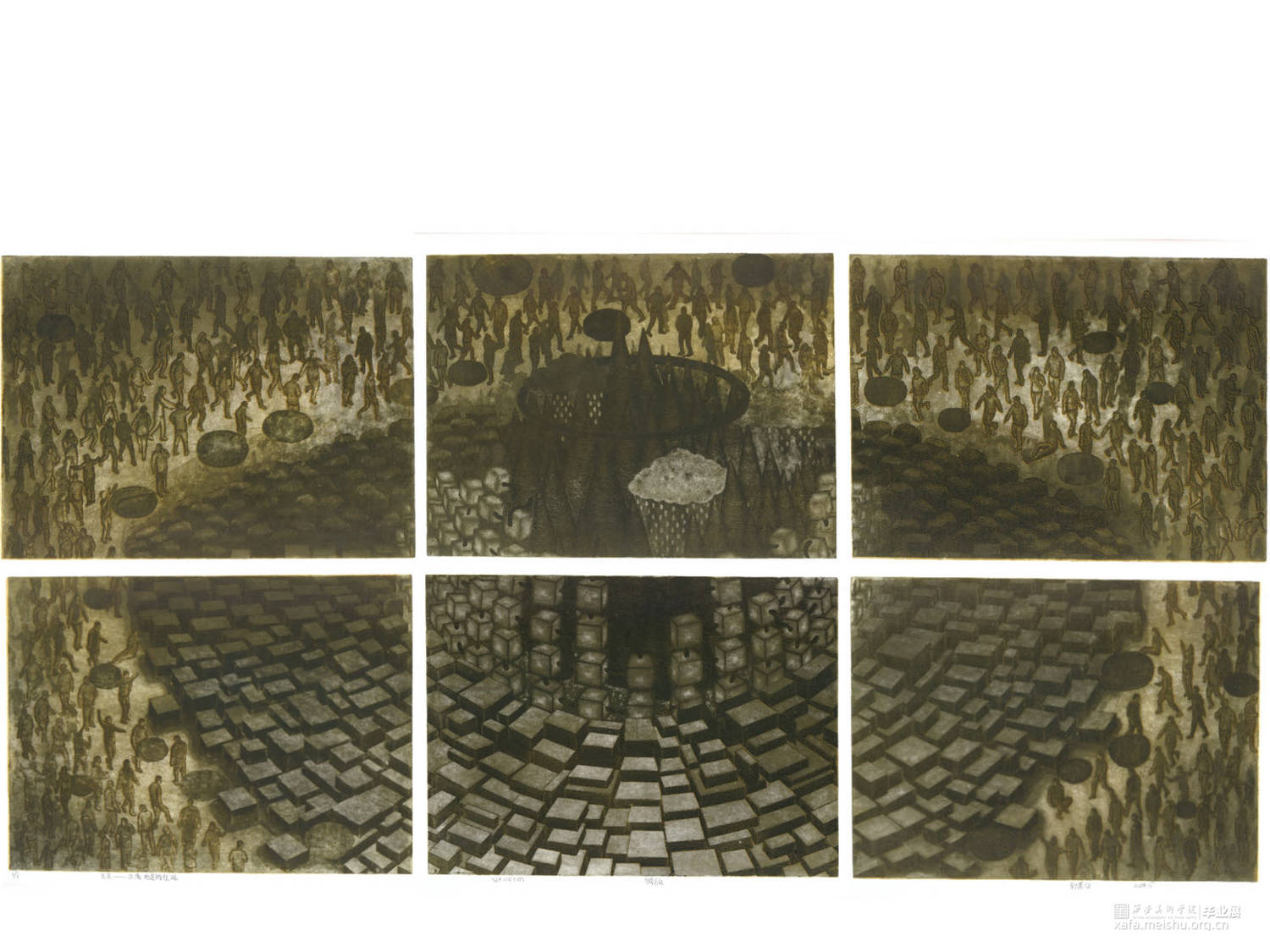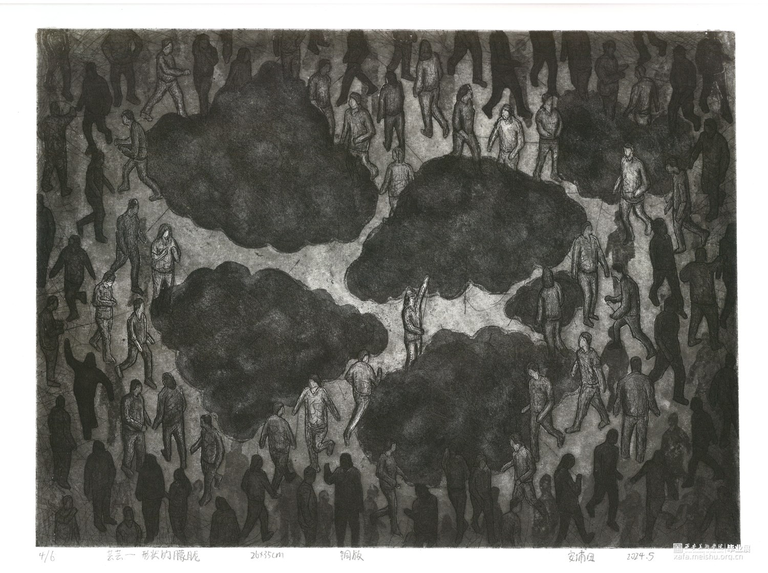 这一系列作品我命名为《芸芸系列》,选取了一些简单物像与抽象几何体来进行分解重构,让这些物体与人群之间产生联系,画面中主要以人群、一些日常物品与几何图形进行组合建立联系。在小尺幅作品中,通过人物与凳子、线团、几何体、棉花等等这些物品进行组合,以脱离事实的组合方式组织画面,用来表现内心莫名情绪的突然出现与消失,也试图探究人这一奇怪群体背后的真正逻辑,试图理解人的复杂性,多变性,以及人对周围的影响。