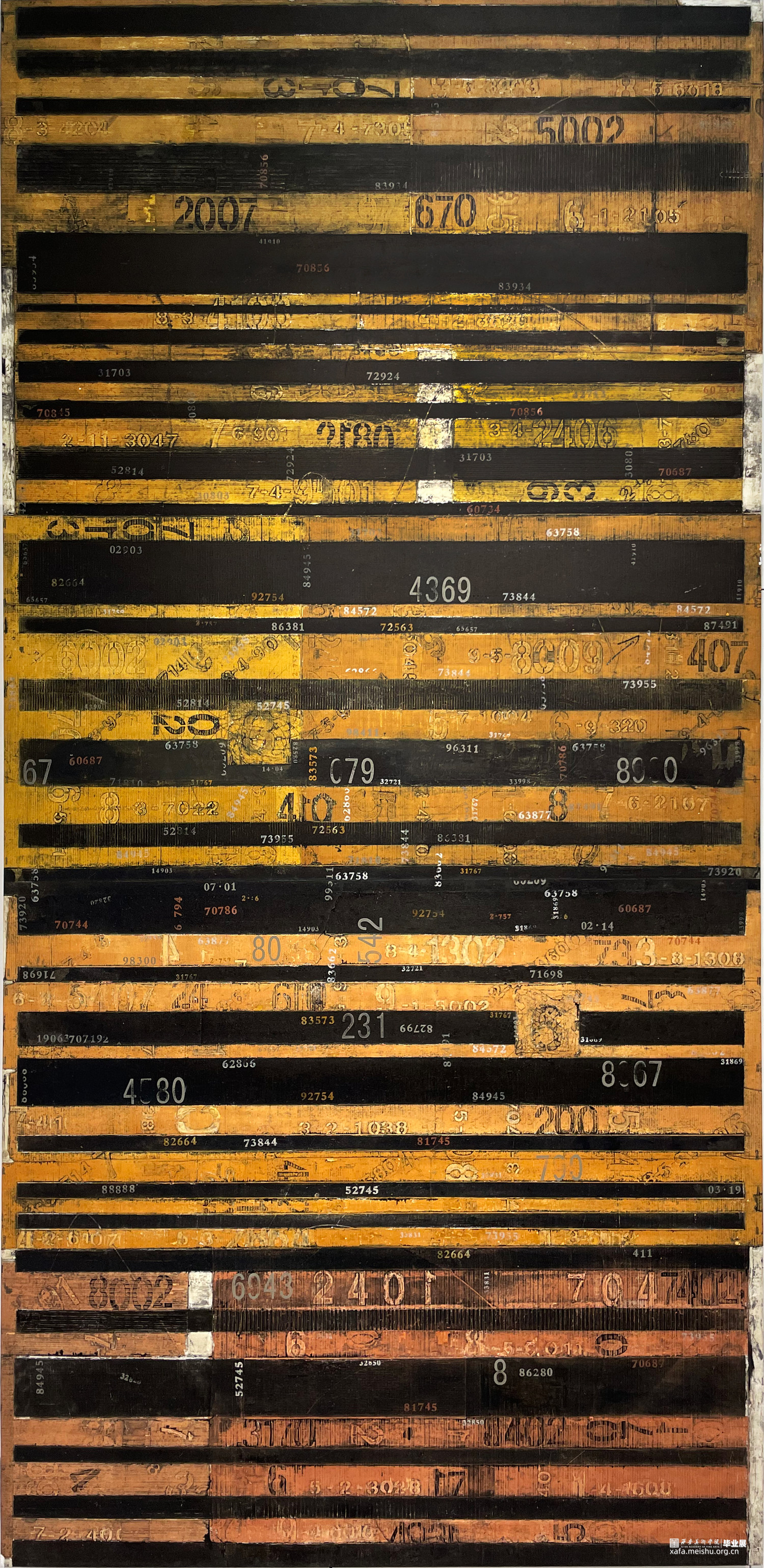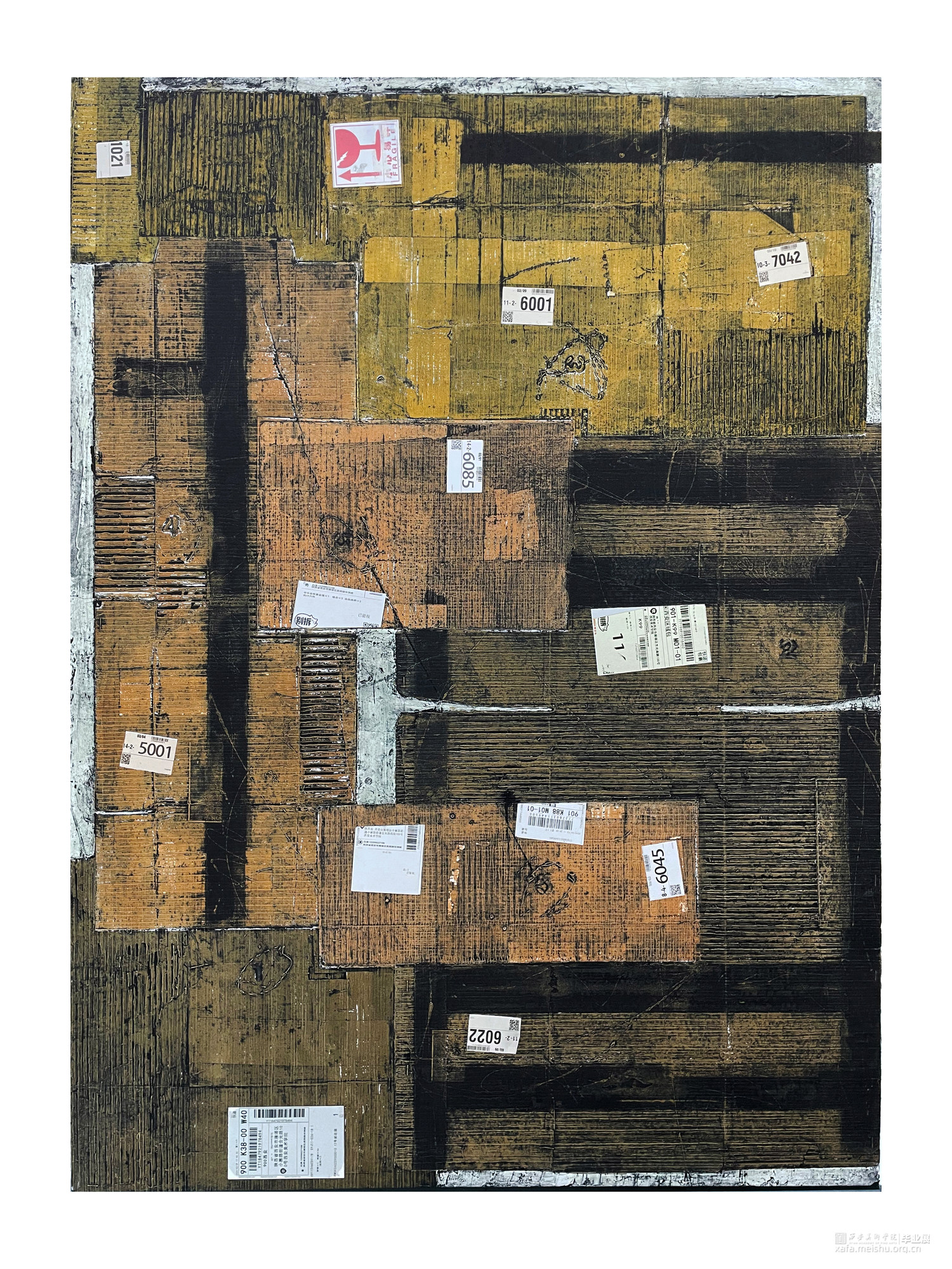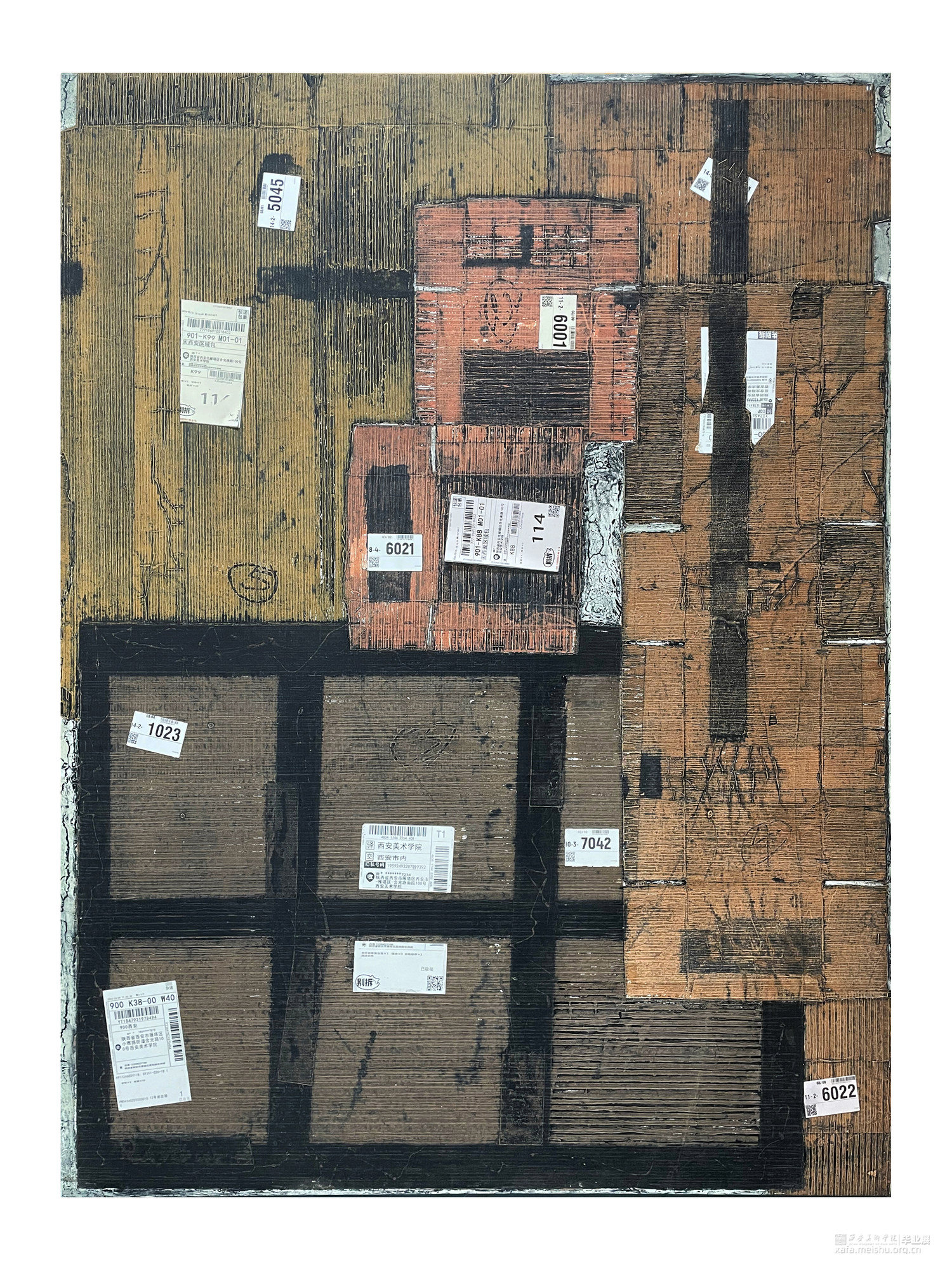 在我的作品中,我选择了现代生活中常见的承载物作为主要元素,并巧妙地结合了它们的身份信息和其他符号,以此来构建出一个独特的创作图景。这些材料不仅是商品流转的见证,更是社会变迁的缩影。首先映入眼帘的是瓦楞纸,这种在二十世纪后期工业生产中大放异彩的工业副产品,它的出现标志着一种快速消费的生活节奏。在这个物质欲望膨胀的时代,人们对于物质生活的追求达到了前所未有的高度,从高楼大厦到精密电子产品,无不体现着人们对奢华生活的向往。然而,当我们满足于这些即时获得的快感时,却忽视了那些隐藏在光鲜外表之下的精神需求——这种精神上的缺失往往是我们所面临的重大挑战。因此,通过使用瓦楞纸这一载体,我试图提醒观者,我们应当意识到物质背后真正重要的东西——那份被忽视的精神生活。