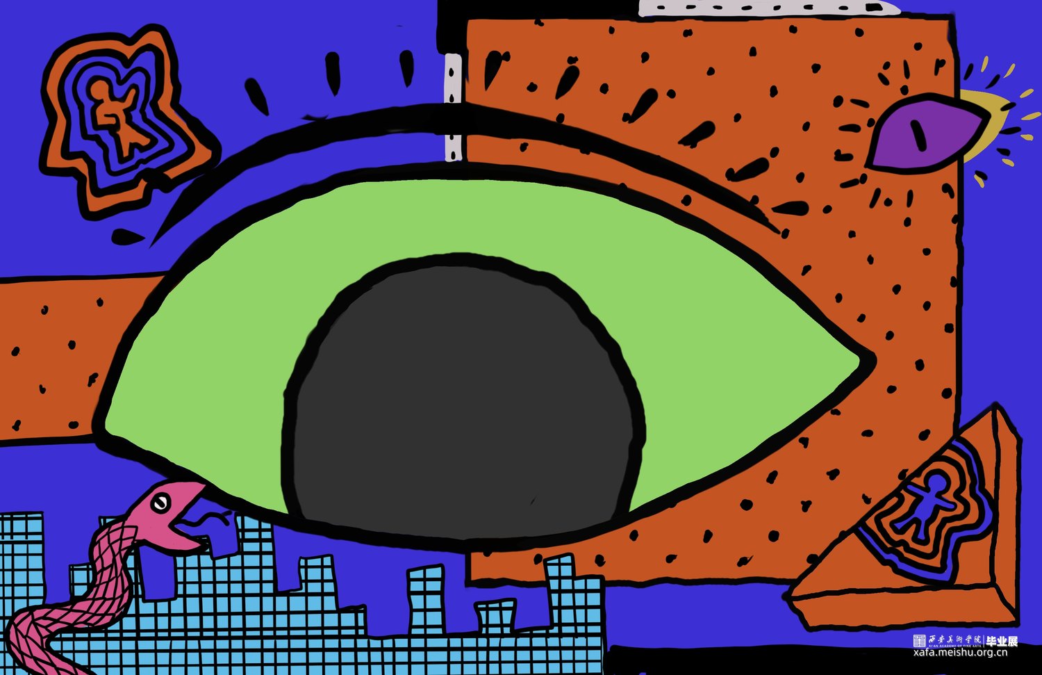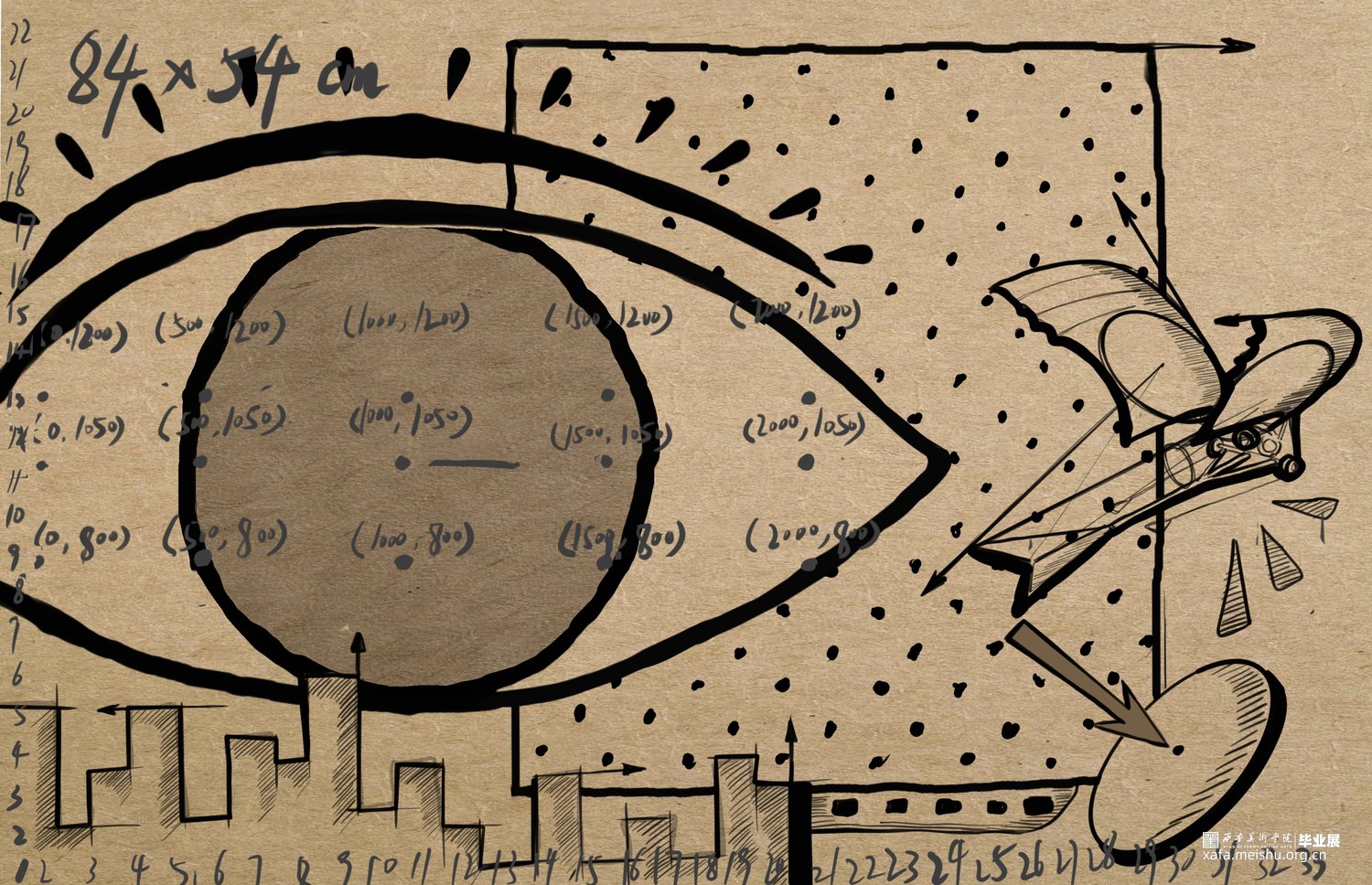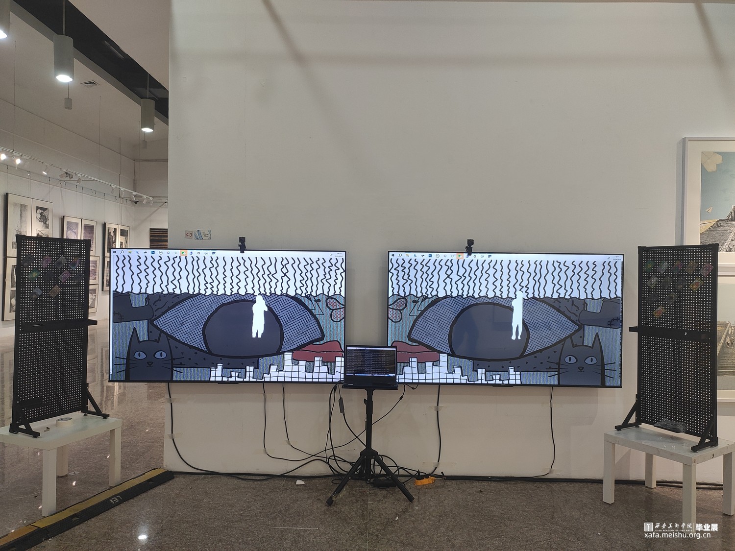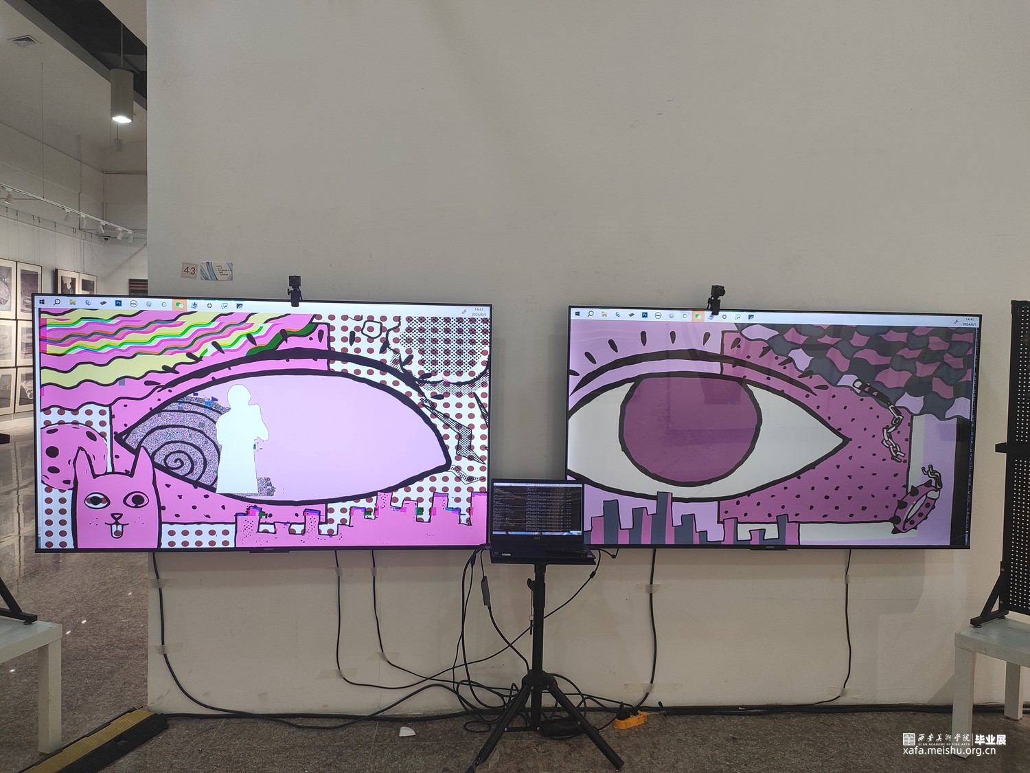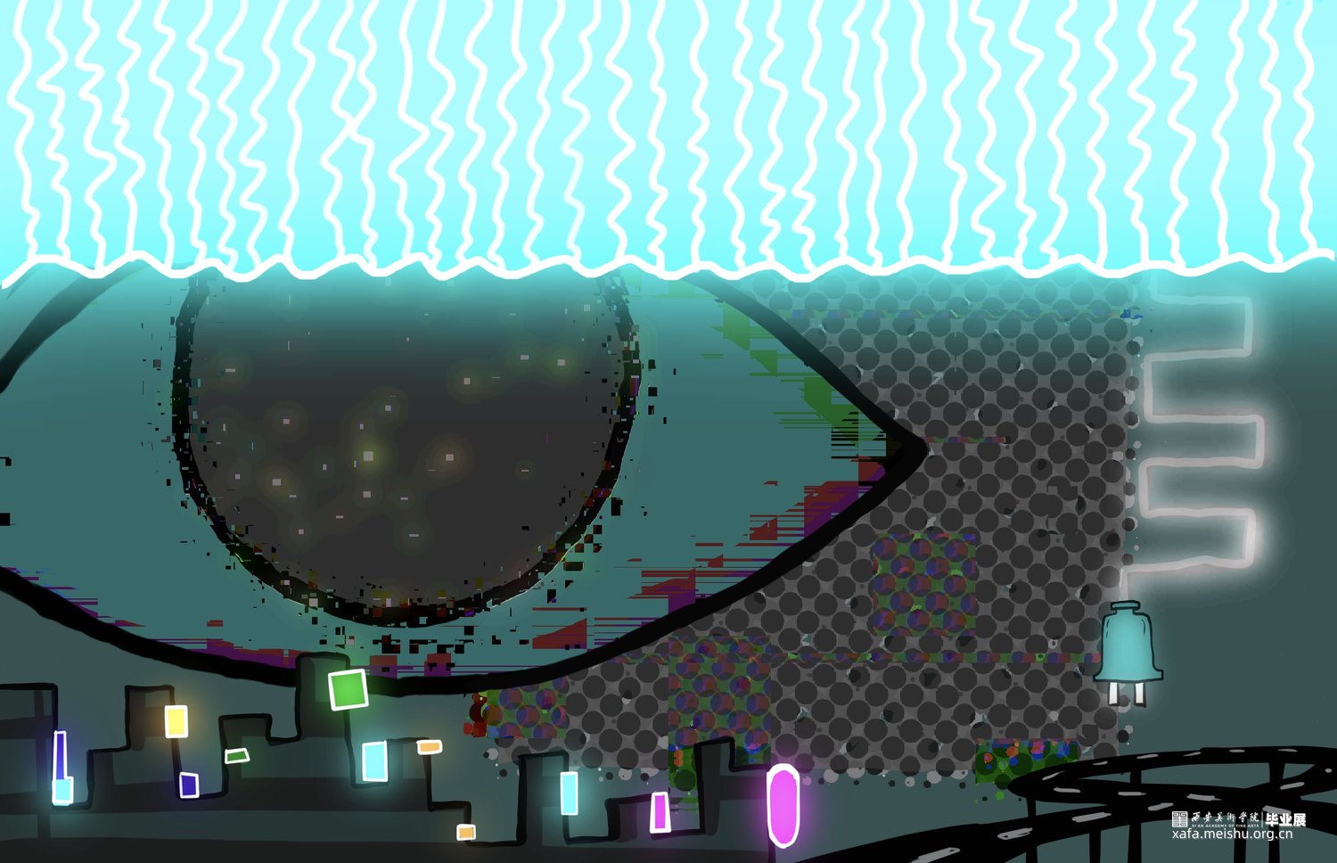人类下意识将自已作为世界主观地位的视角,而眼谱与观众对视,瞳孔中的实时人类剪影削减了人主观认为的主导位置,使观众平等思考,探索到底是谁在看谁?谁又是主体?高清摄像头和人脸识别技术来捕捉观众的面部特征,如身高、眼距和发型等信息形成数据库,这些数据不仅仅用于生成艺术作品,更是连接现实与数字艺术的桥梁。其核心是更深入的探讨了个体差异与视觉认知的艺术实验。