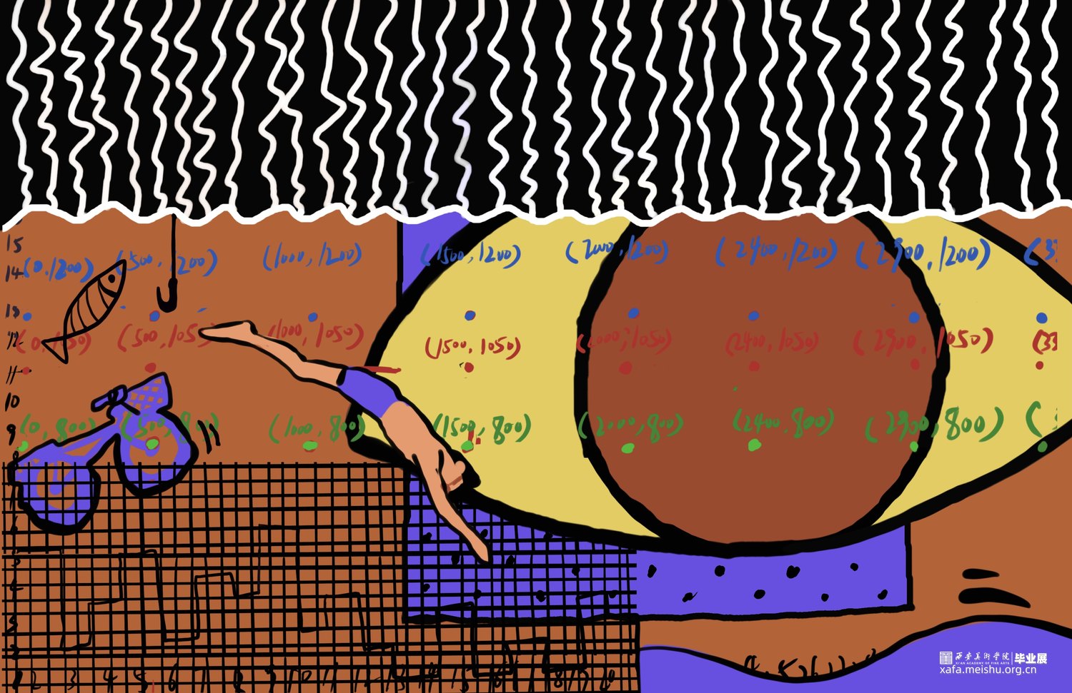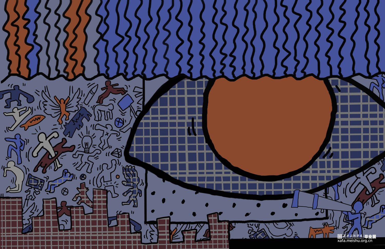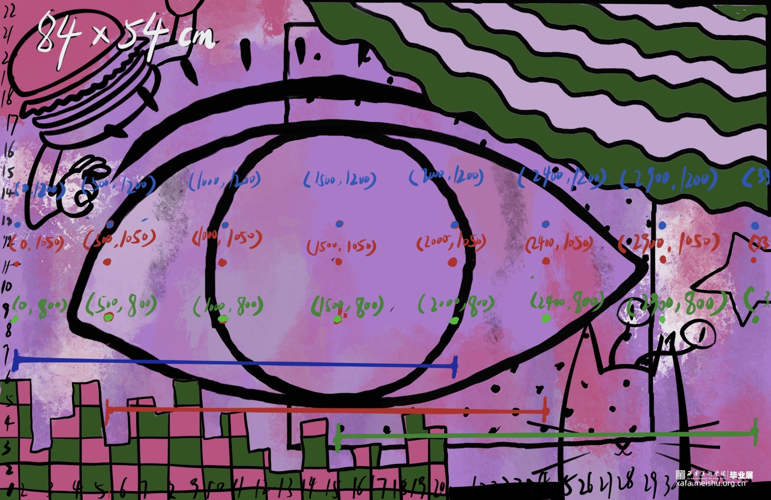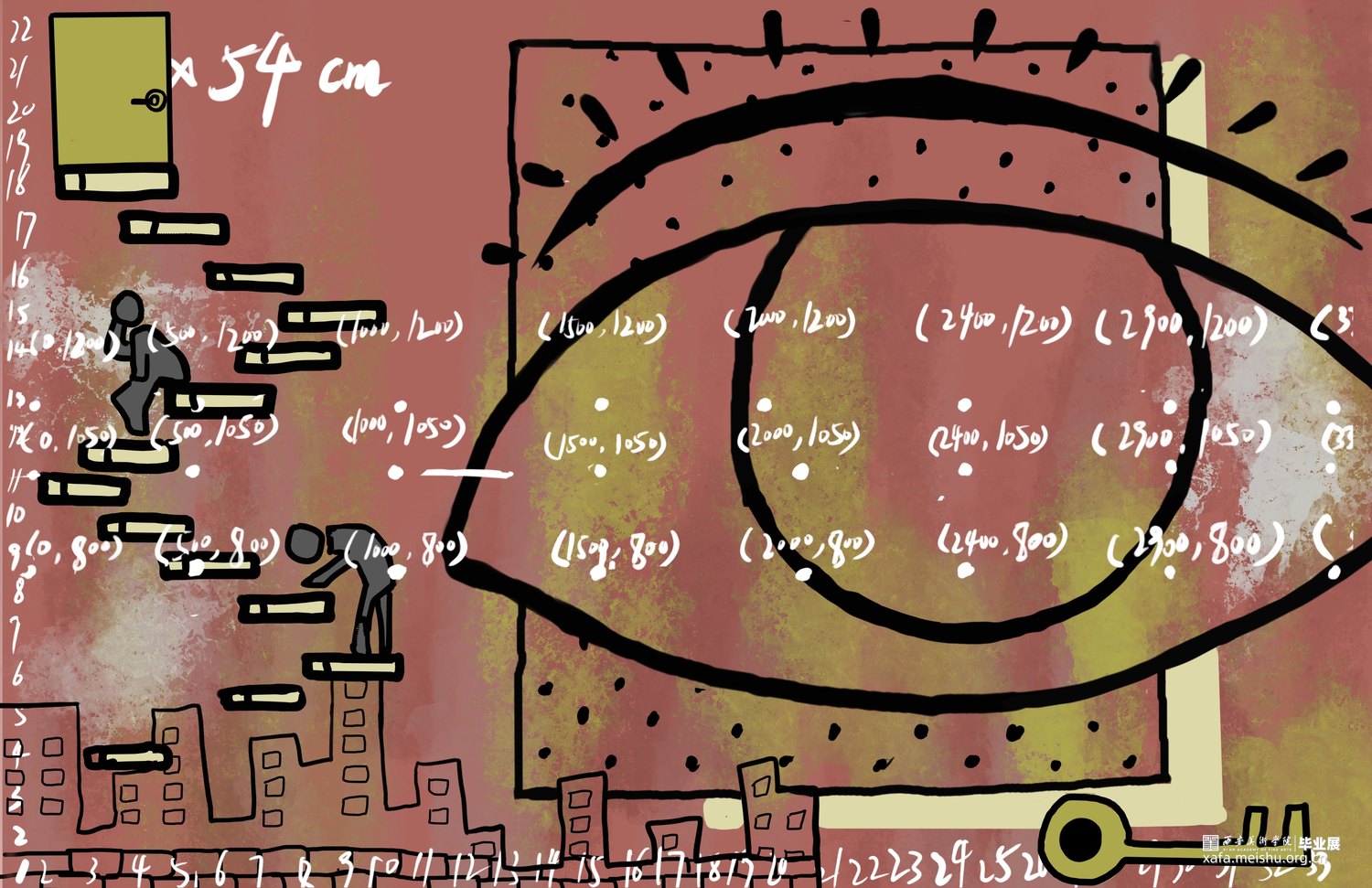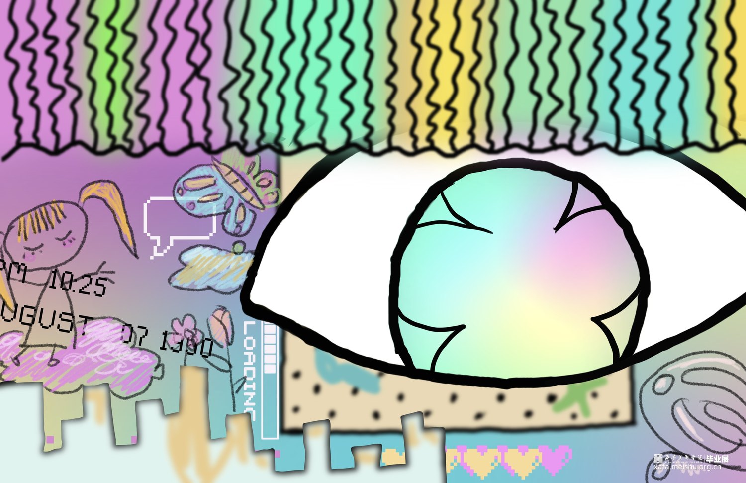 人类下意识将自已作为世界主观地位的视角,而眼谱与观众对视,瞳孔中的实时人类剪影削减了人主观认为的主导位置,使观众平等思考,探索到底是谁在看谁?谁又是主体?高清摄像头和人脸识别技术来捕捉观众的面部特征,如身高、眼距和发型等信息形成数据库,这些数据不仅仅用于生成艺术作品,更是连接现实与数字艺术的桥梁。其核心是更深入的探讨了个体差异与视觉认知的艺术实验。