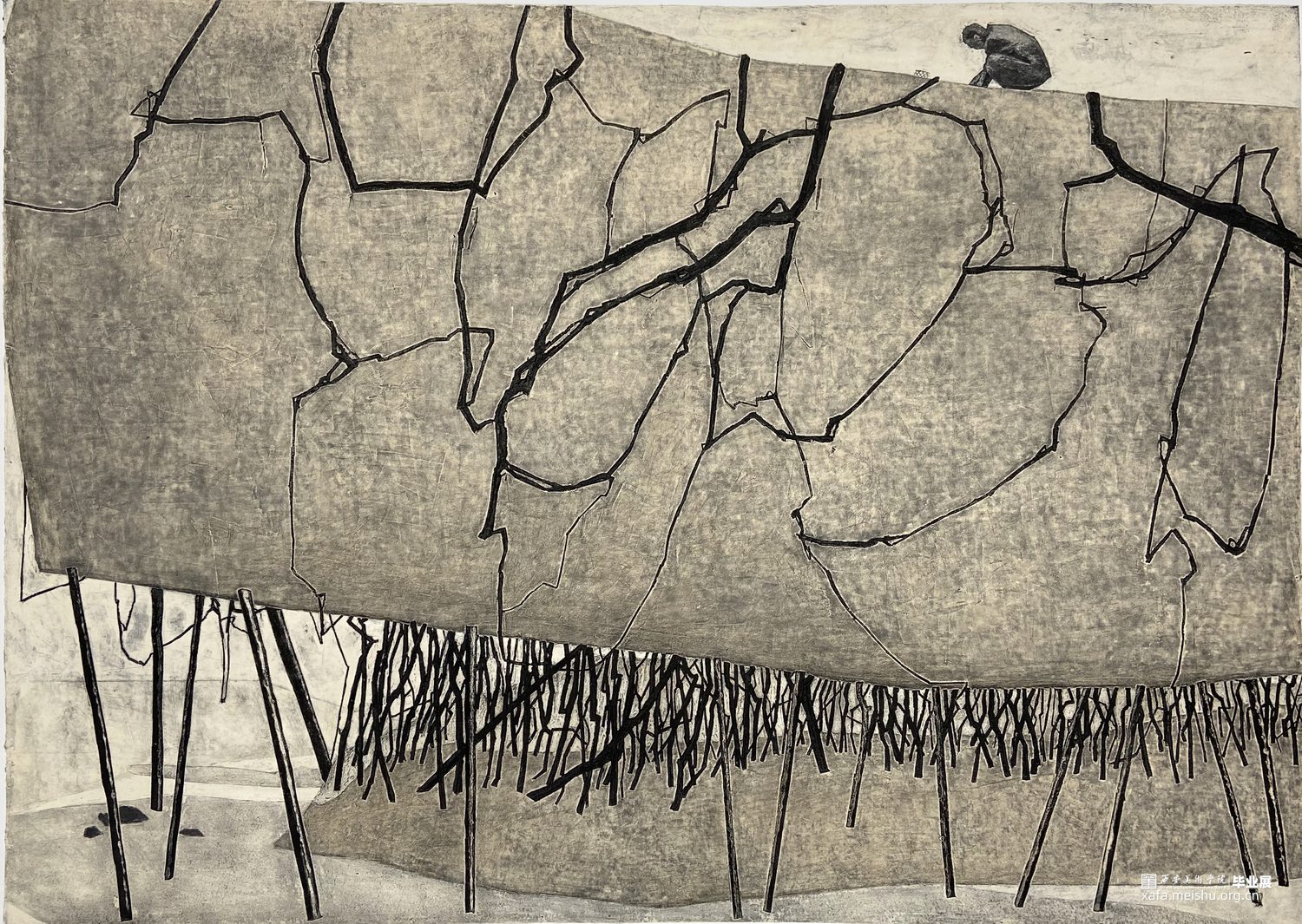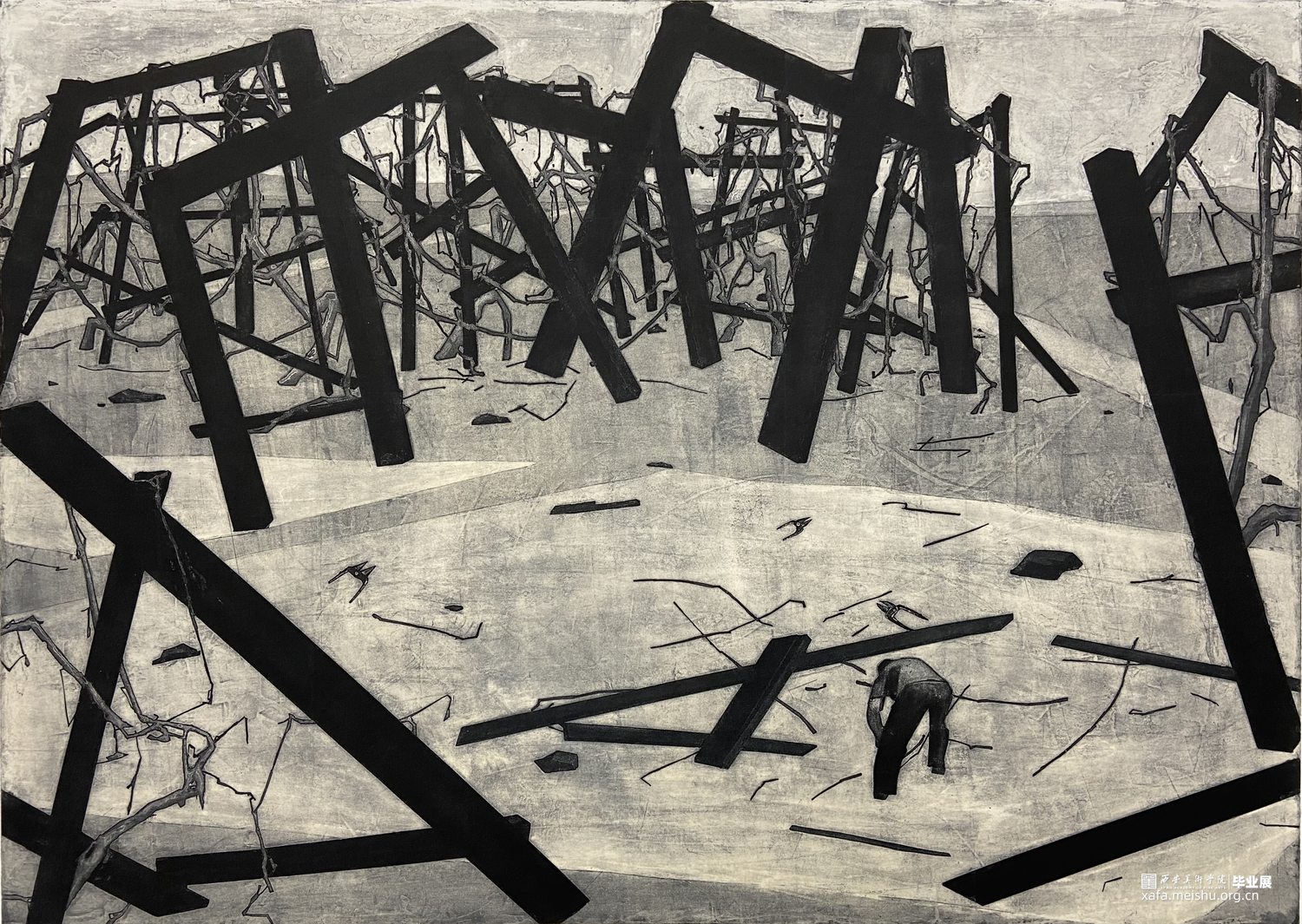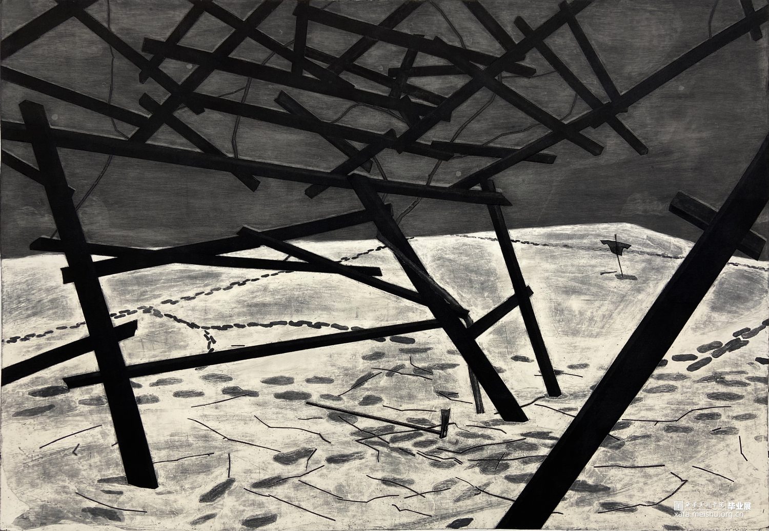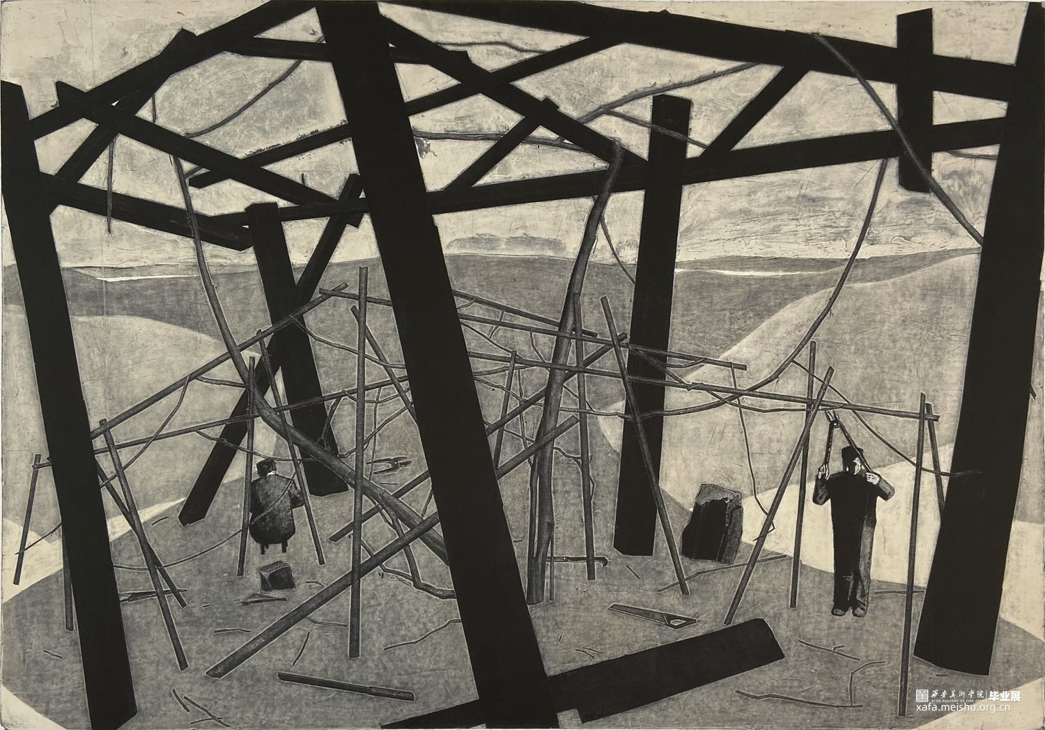 黑色的木支架和柔软杂乱、生机勃勃的藤蔓。