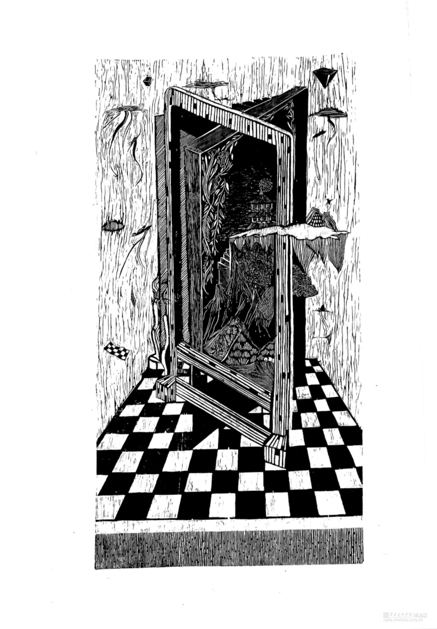 为更加体现绘画语言形式的创新上,《一池芳华印物华》系列作品为了展现出了独特的魅力。我地将木刻的硬朗线条与国画的柔和笔触相结合,使得画面既有木刻的明快与力量感,又不失国画的细腻与灵动之美。同时,我运用黑白对比的手法,营造出一种静谧而深邃的氛围。这种氛围不仅让观者在欣赏作品时能够感受到我在创作时内心的感悟,还希望能引领观者进入一种超越现实的境界,与作品产生深层次的情感共鸣。
