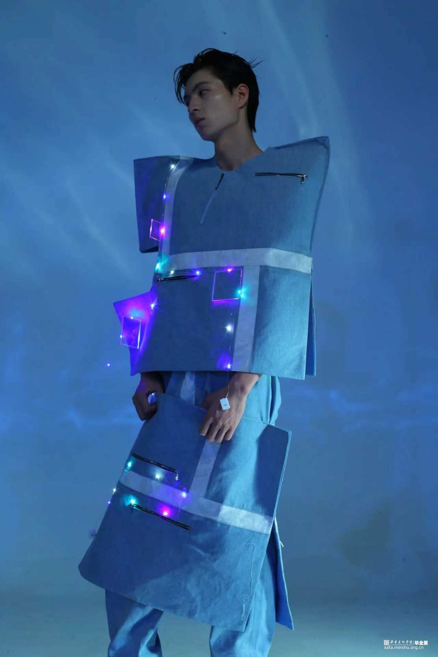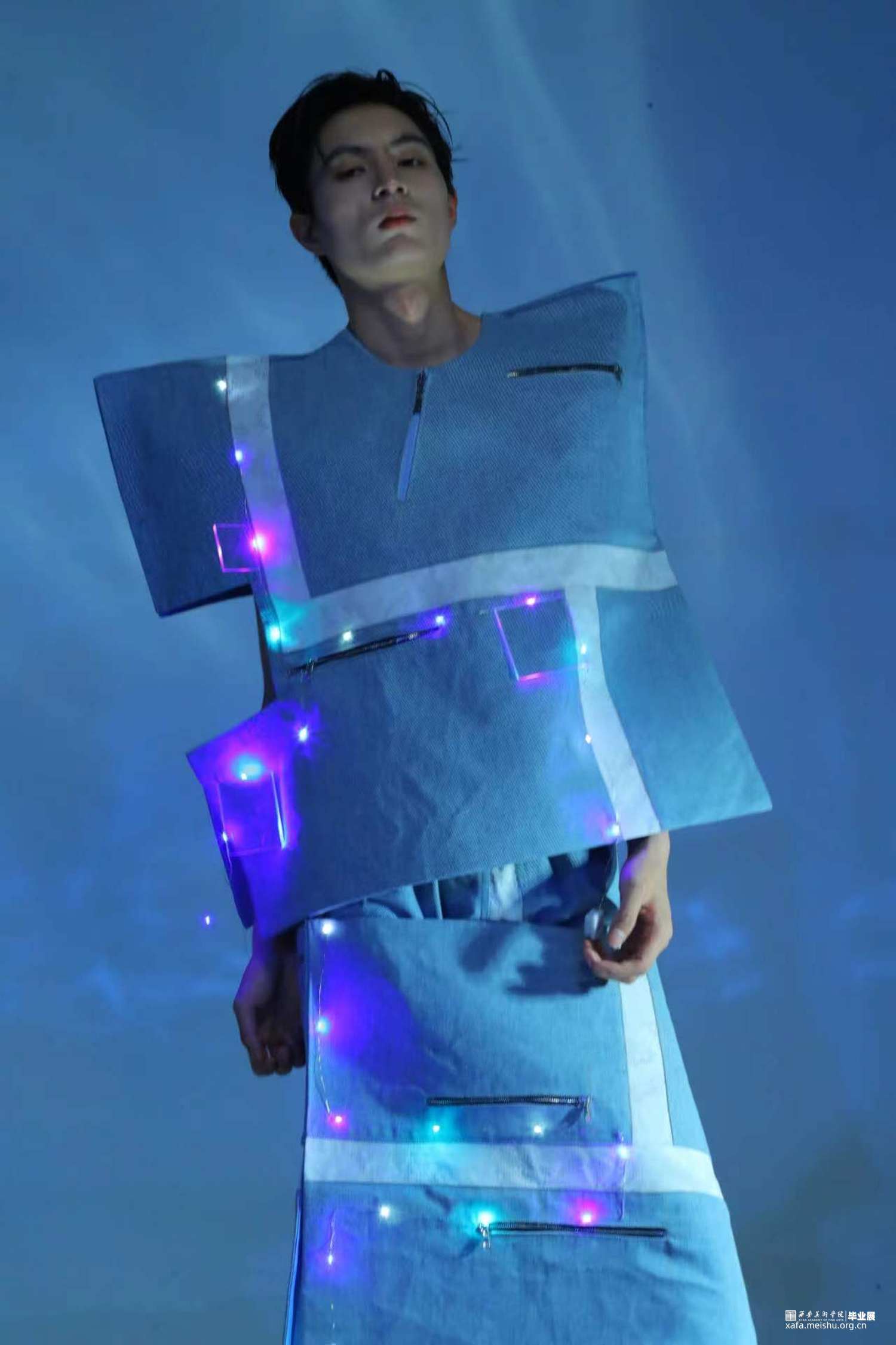 本毕业设计通过智能LED技术与服装设计的创新融合,成功实现了对“正在加载”这一概念的具象化表达。