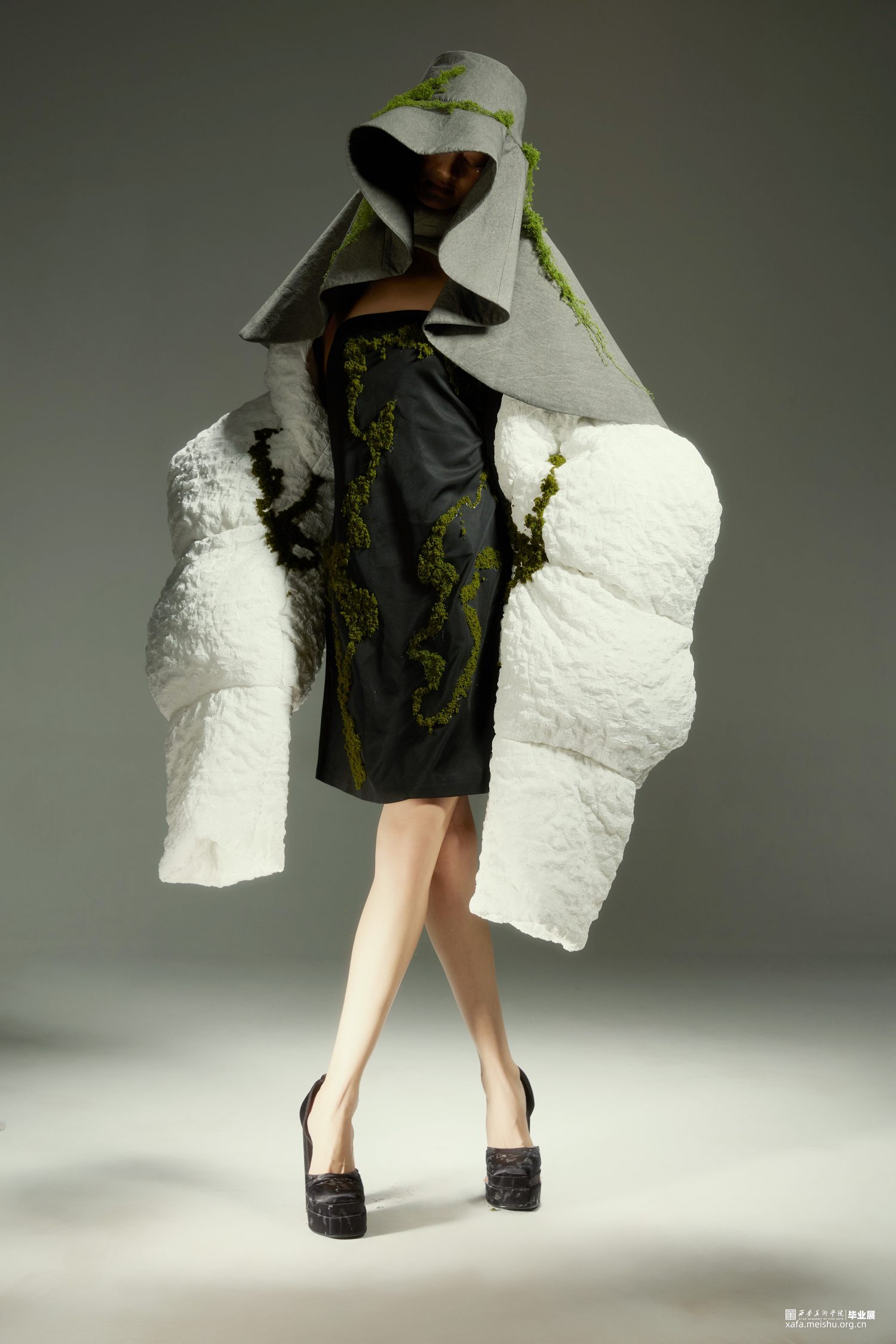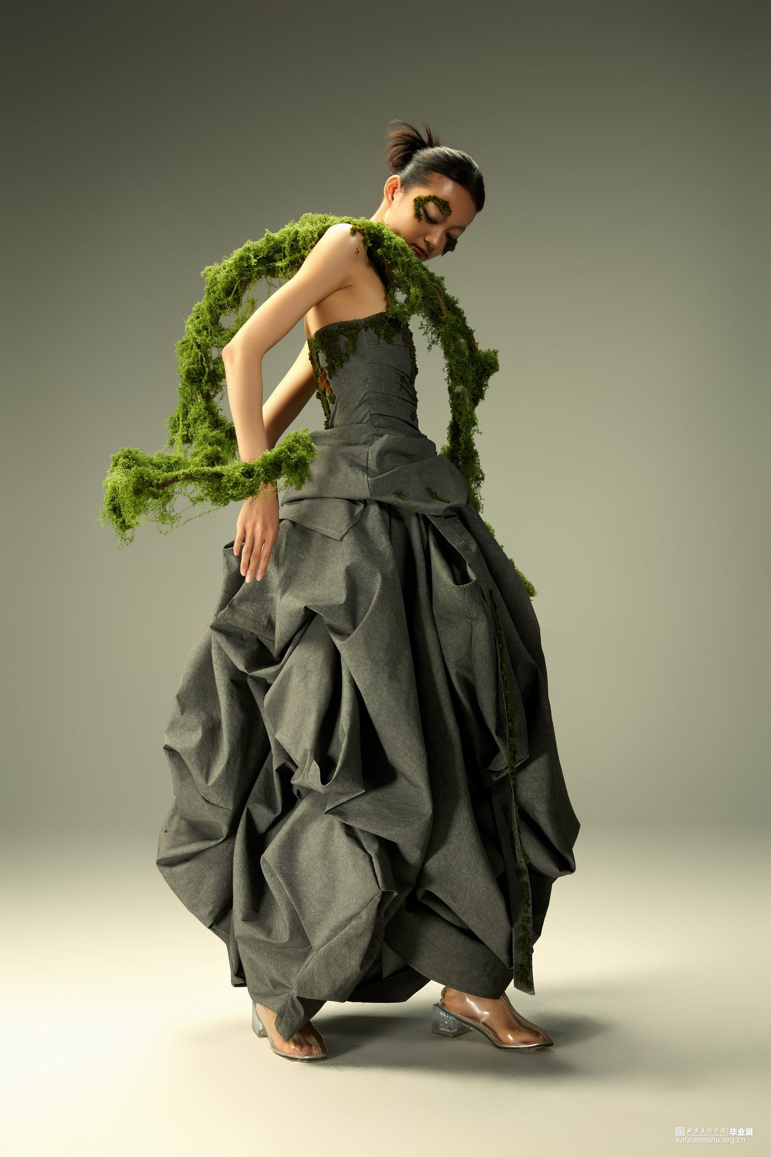 作品深入探索以绿色植物与服装材料相结合的可行性,以苔藓为切入点,综合考量苔藓独特的生态特性和其在可持续发展方面的潜力,提出一种创新的植物服装设计方案。通过详细分析苔藓的生长环境、生命周期及生态功能,结合现代技术与设计理念,探索如何将苔藓与传统服装材料相融合,实现环保、可持续的服装生产。同时,本研究将进行实验验证,评估所提方案的可行性、耐用性和舒适性,为环保服装设计领域带来新的思路和方法。