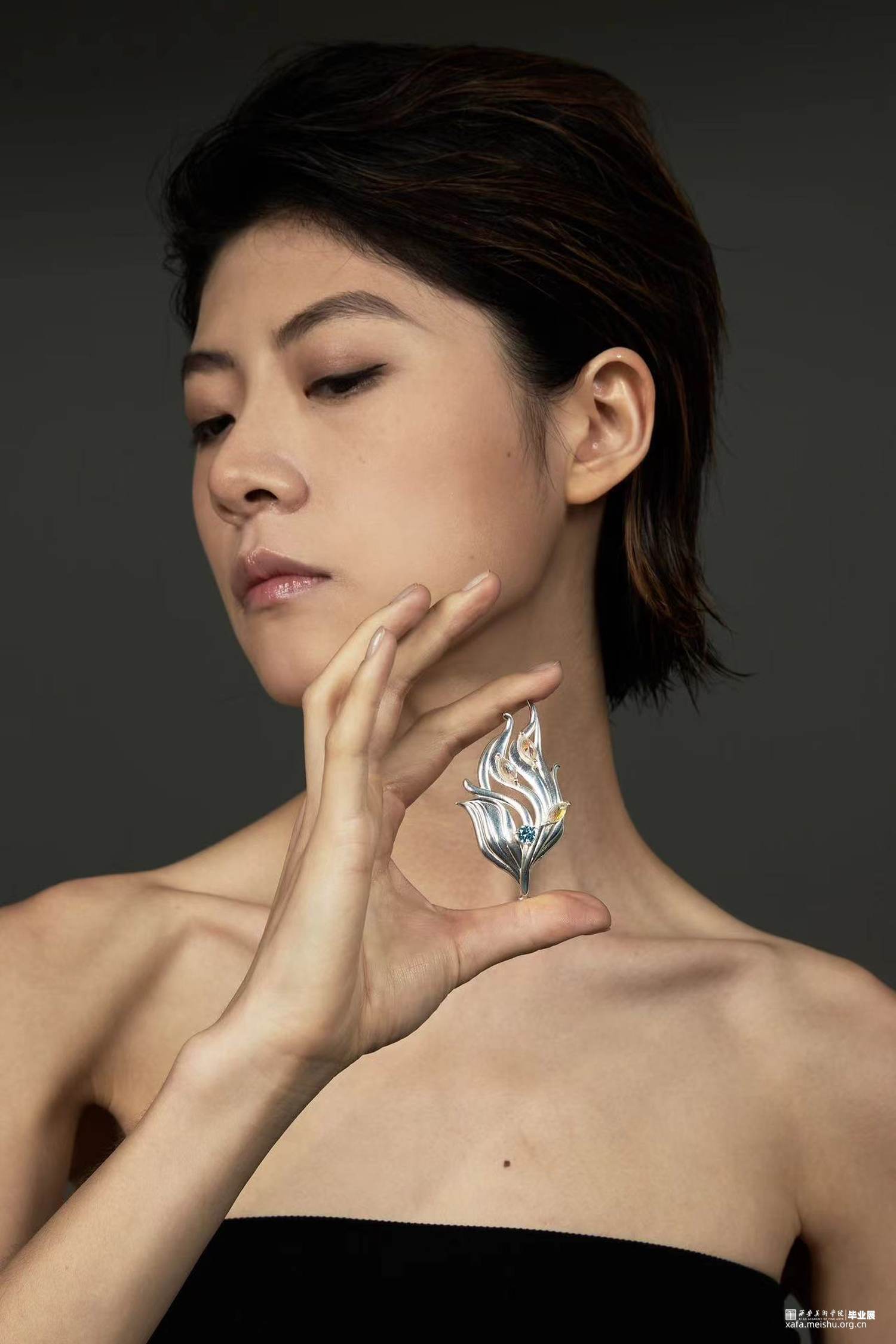 在工艺方面,此次创作运用了银胎珐琅的传统技法,还采用了铜上镀银、银等金属材料进行创作,同时采用了镶嵌宝石手法中的爪镶、包镶等方法进行点缀,以珐琅的形式描绘出了海洋的绚丽色彩,与海洋生物活灵活现的律动。