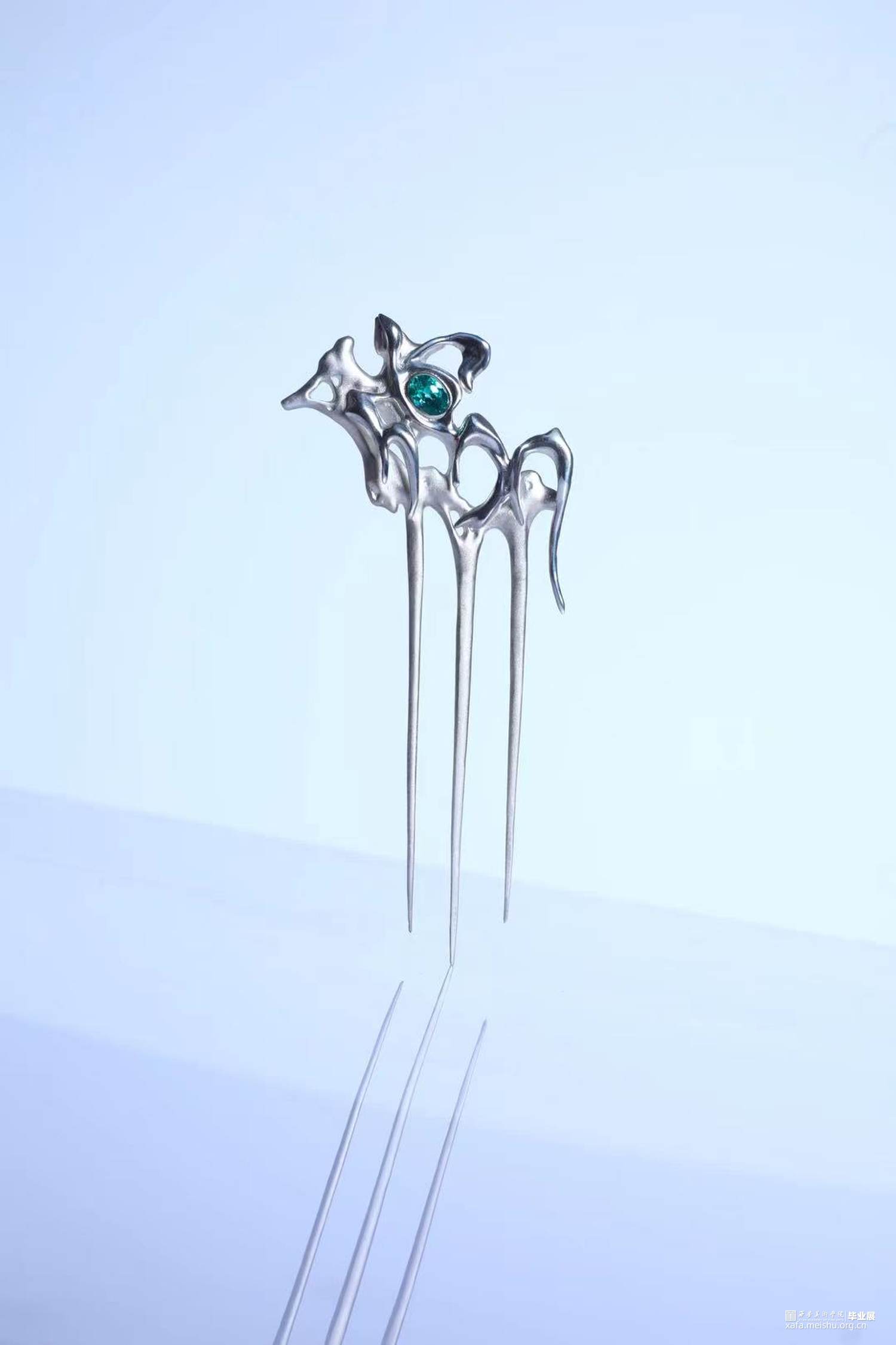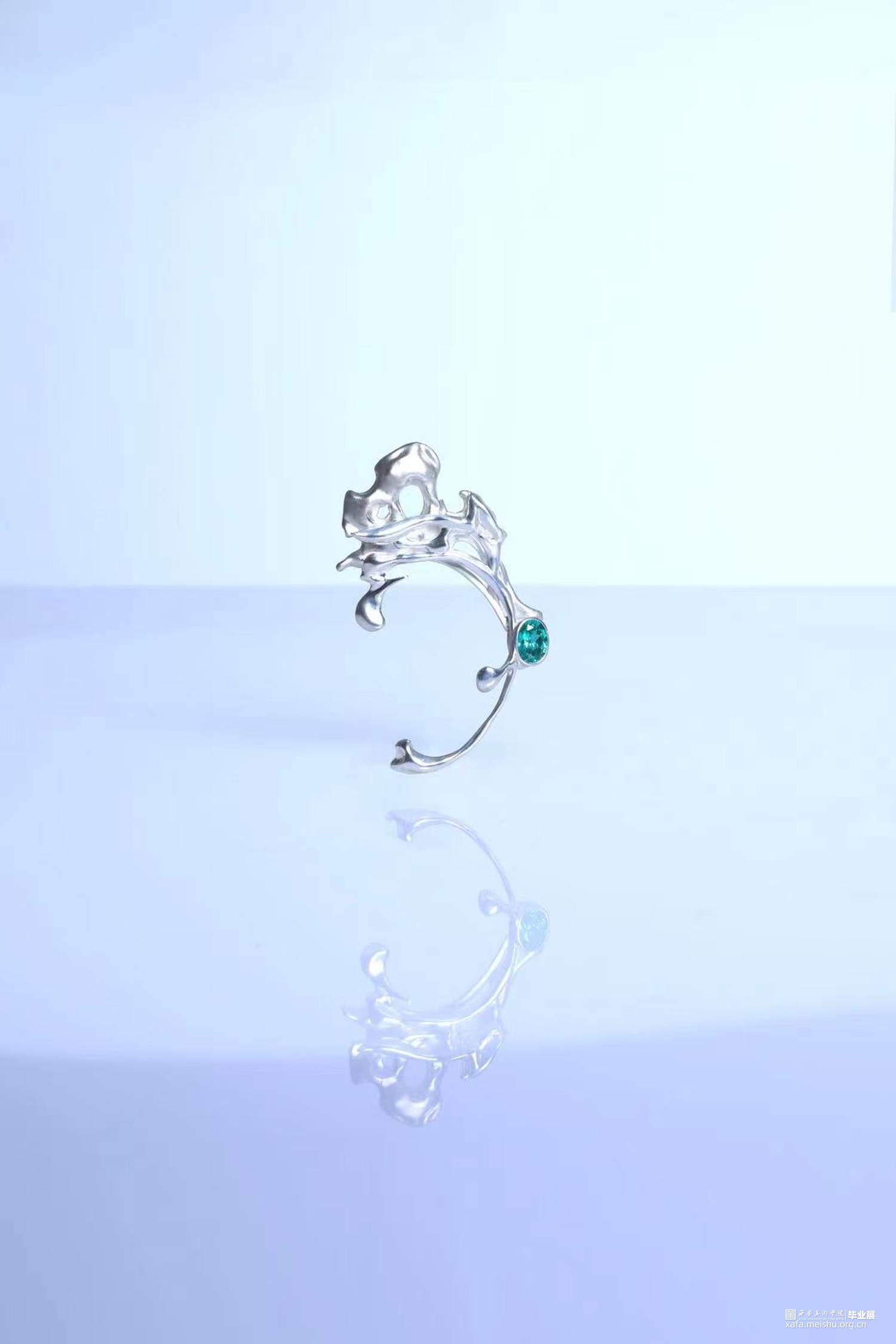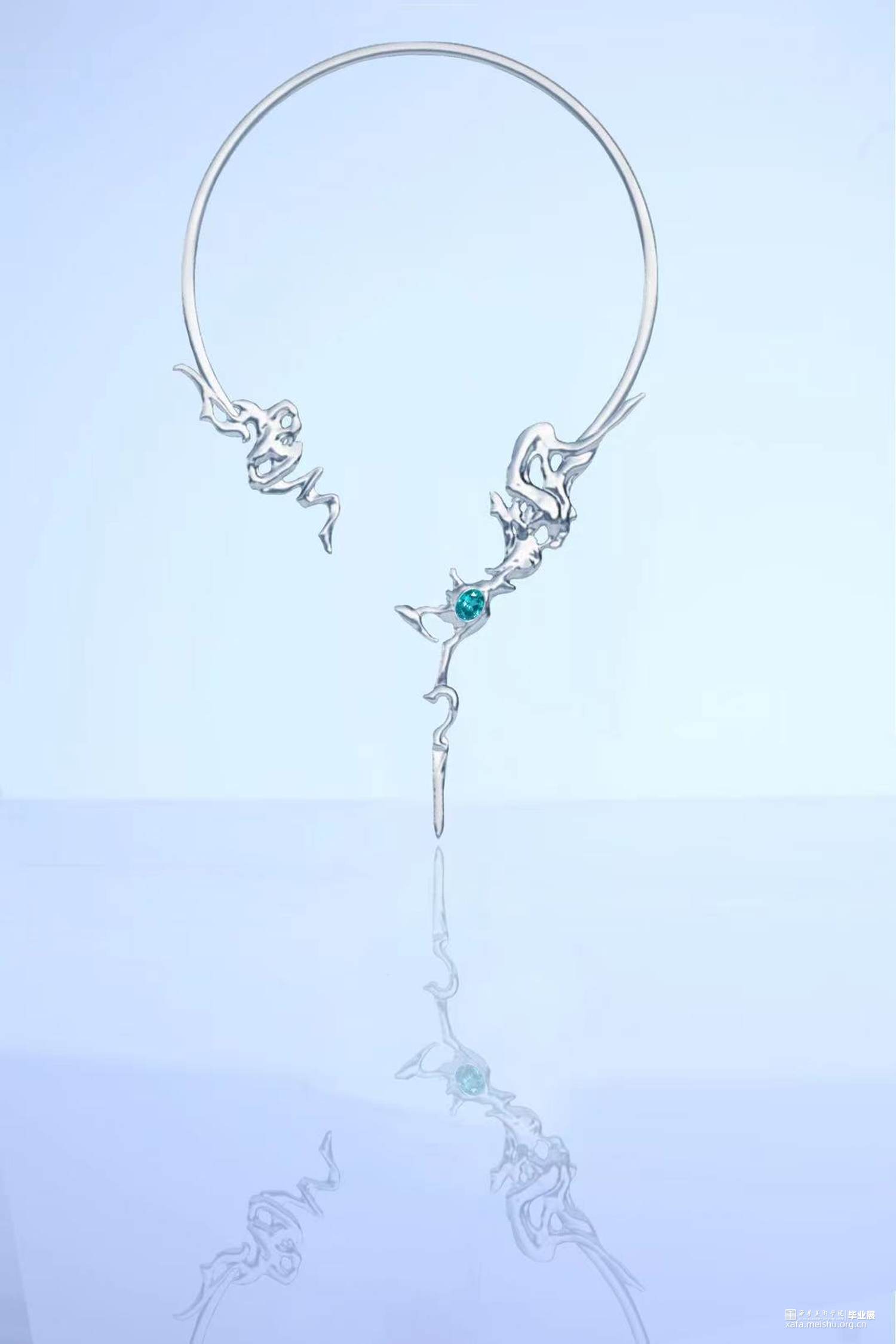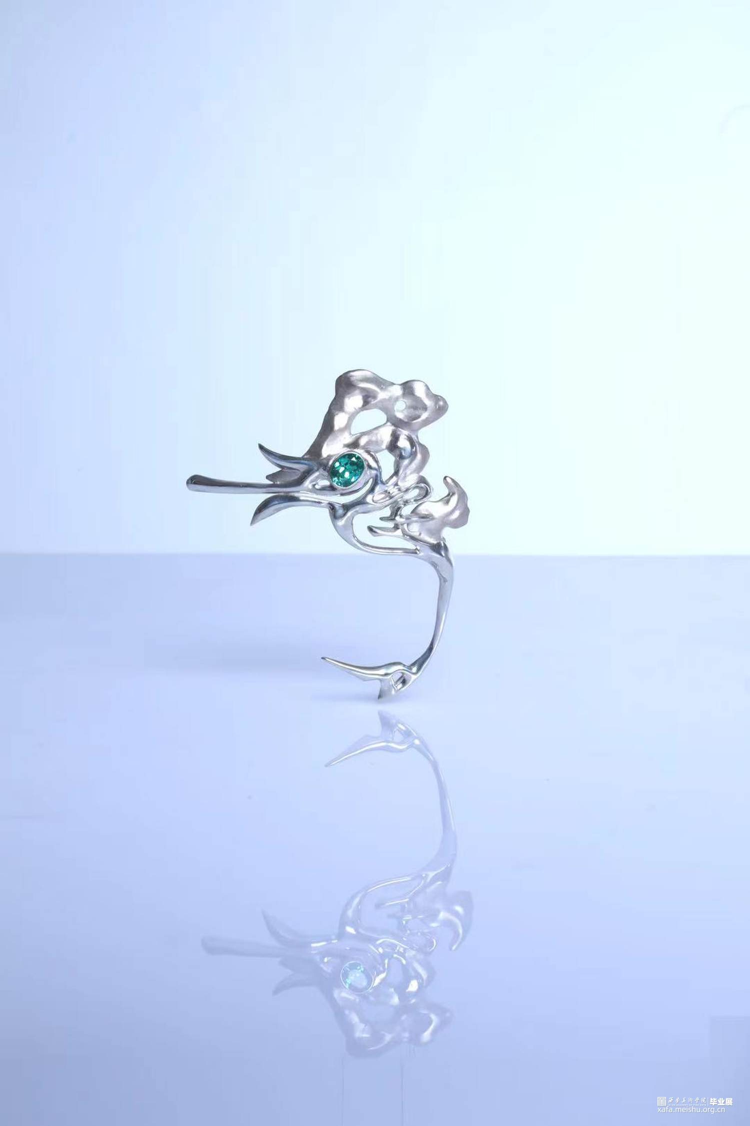 首饰设计巧妙地结合了书法的线条特点与太湖石的形态美感。通过曲线的流畅和直线的挺拔,塑造出书法韵味,同时借鉴太湖石的形态,注重空间布局和层次感,使其在视觉上更具立体感和动态美。材质精选了玉石与金属的组合,即体现了传统文化的厚重感,也巧妙地展现了当代首饰的时尚魅力。