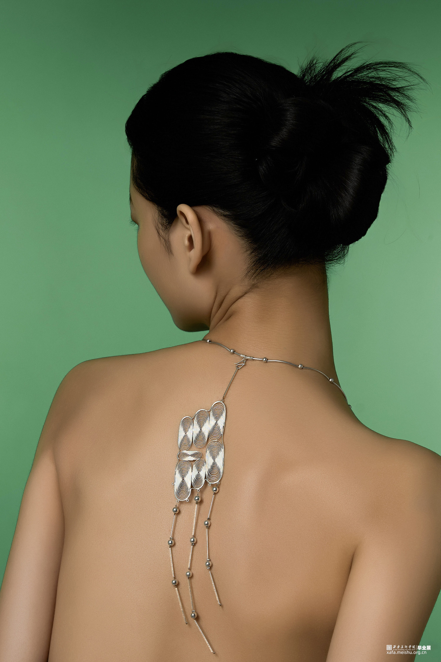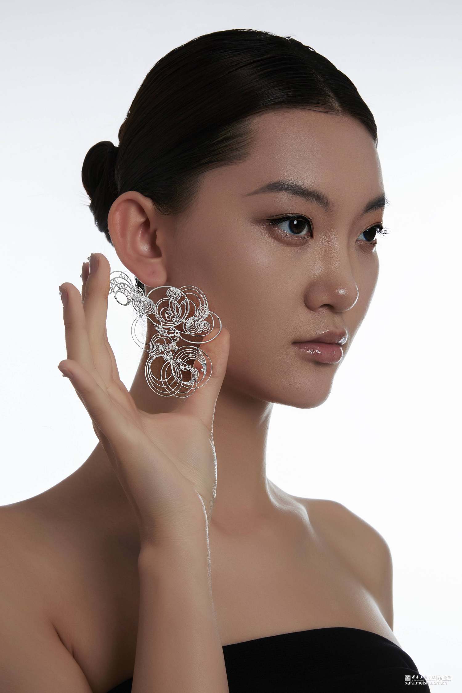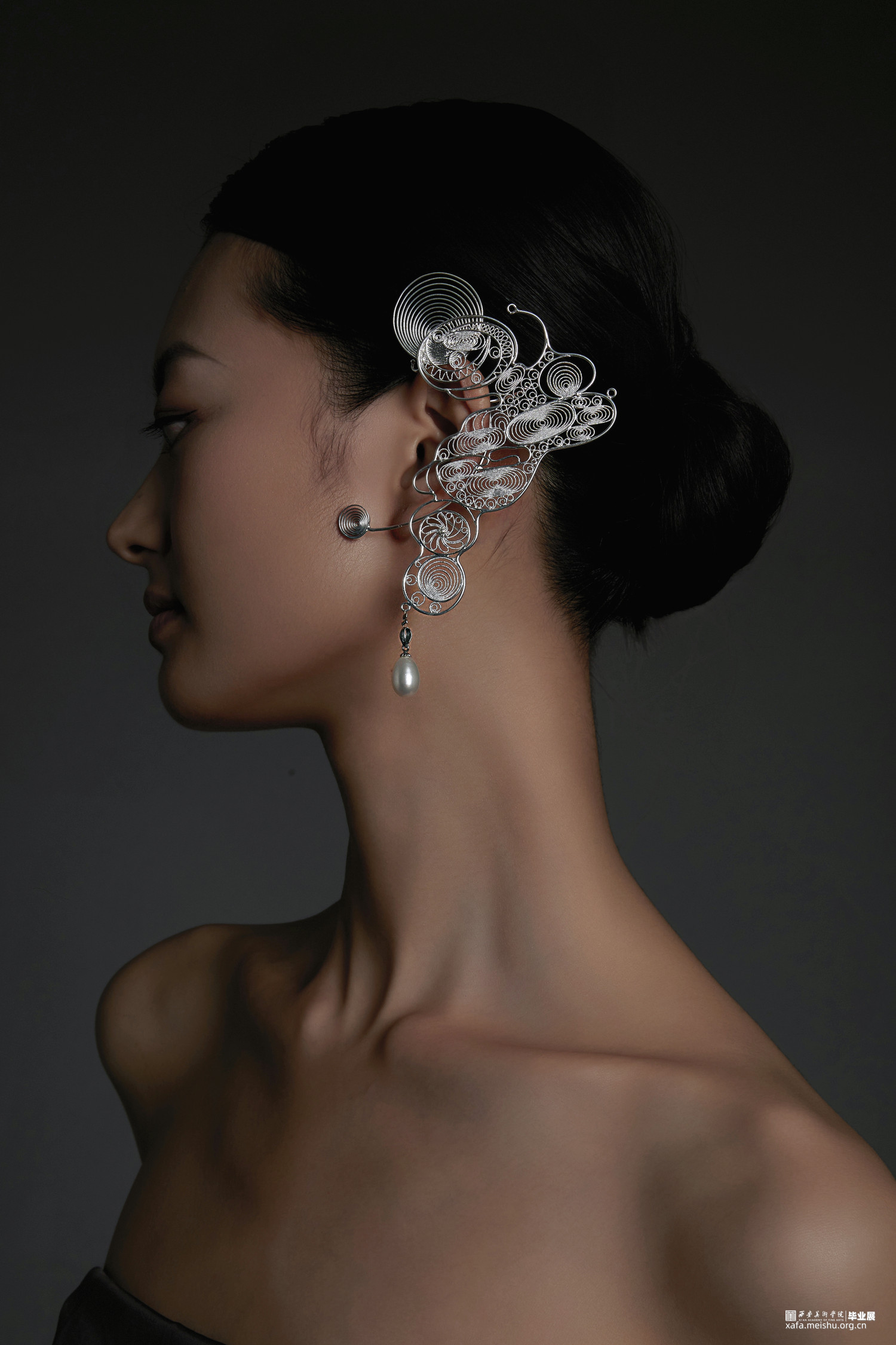 本件作品运用传统花丝工艺制作。与当代首饰的流行审美和趋势相结合,将雨落在水里产生的细微独特的波纹融入到本件首饰设计中,感知圈圈涟漪,环环相扣的美感。