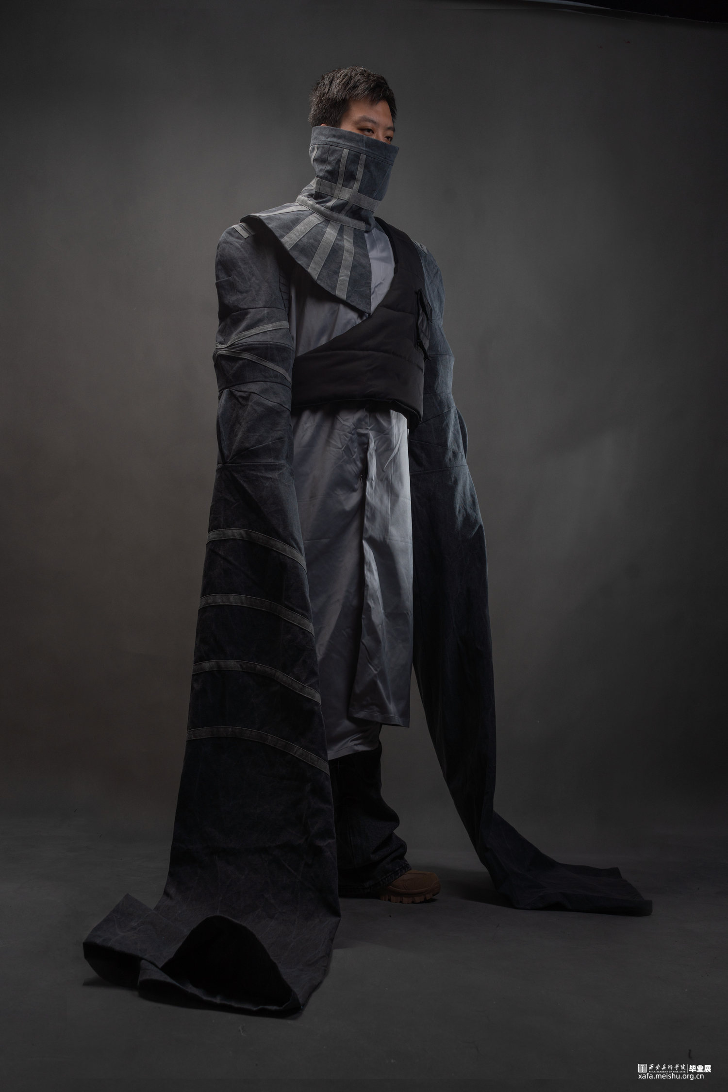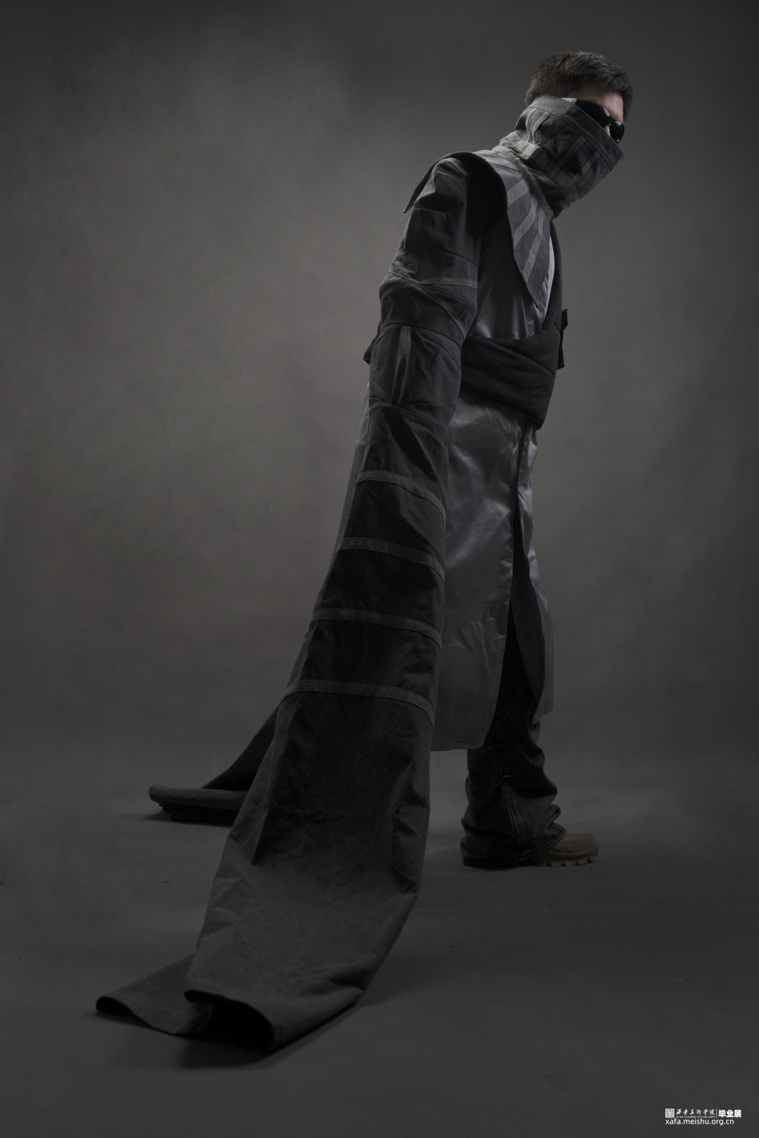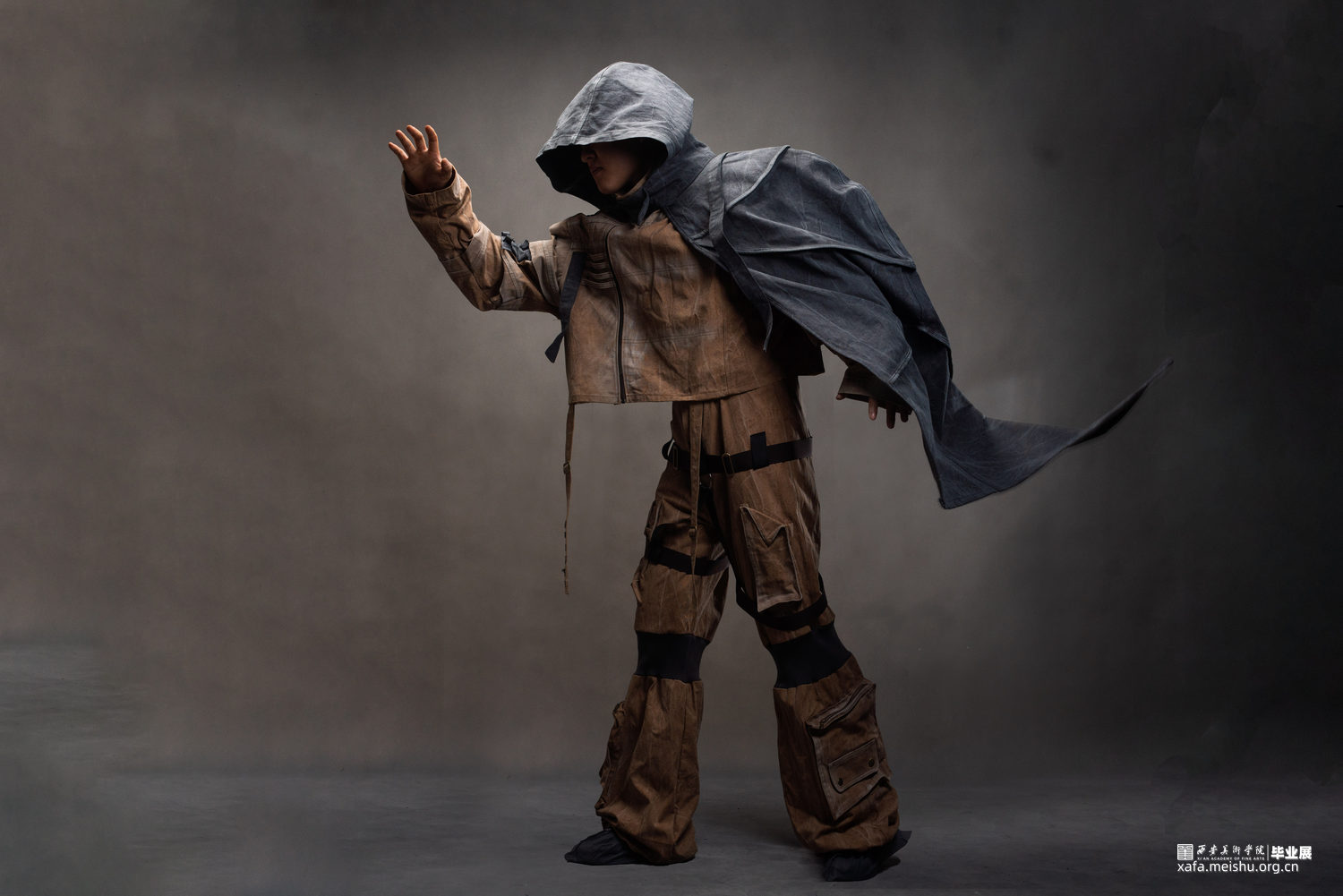 在毕业创作的过程中,本人围绕对羽绒面料的改造,融入机能风,让服装在末日条件下有更多的作用,运用聚酯纤维和做旧牛仔的拼接,大廓形和宽大的风格,多个拉链组合和口袋的多样变型,机能的装置来表达服装的创新设计,通过作品传达出末日生存下人们的服装结构与材质的变化。