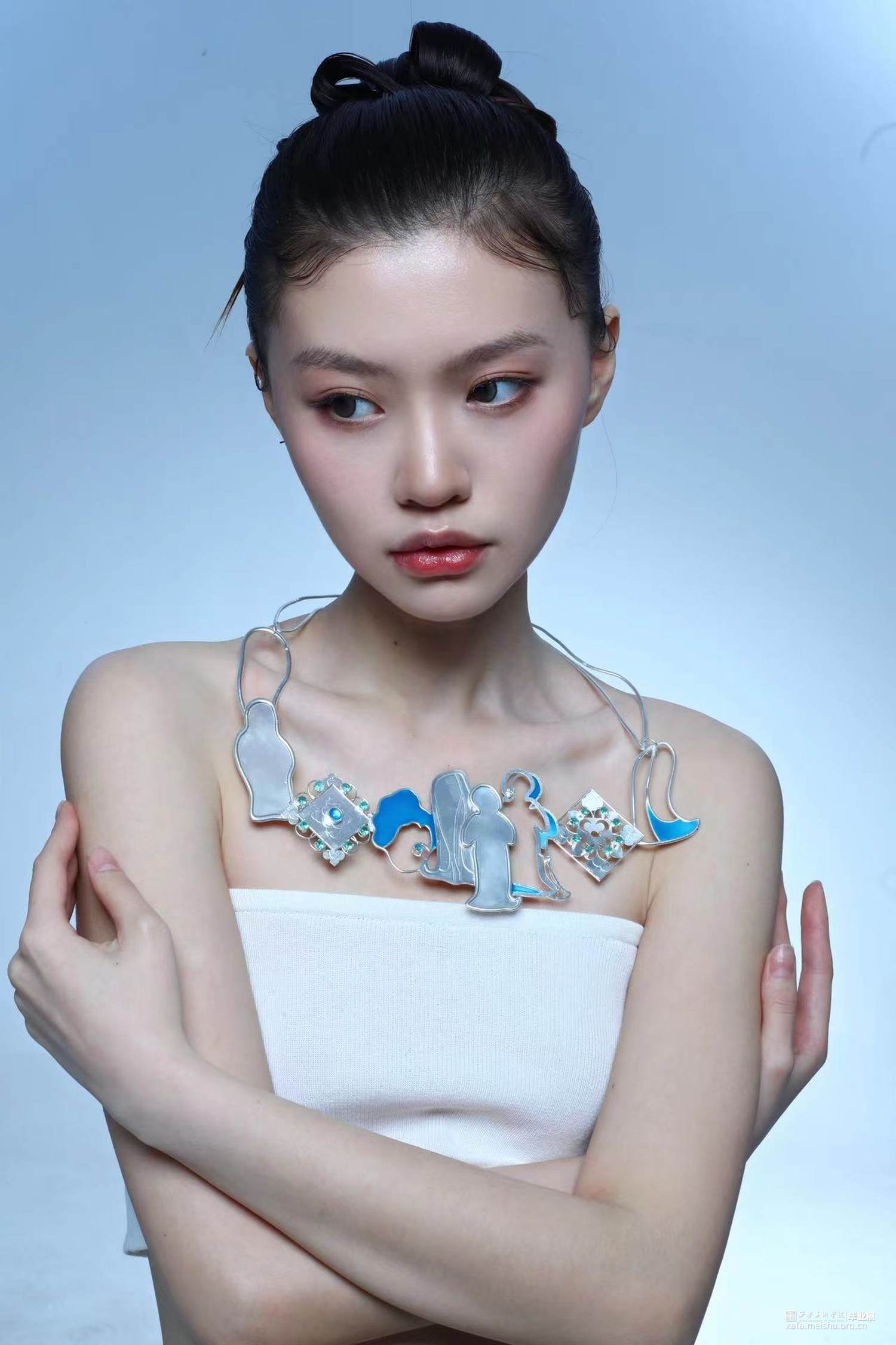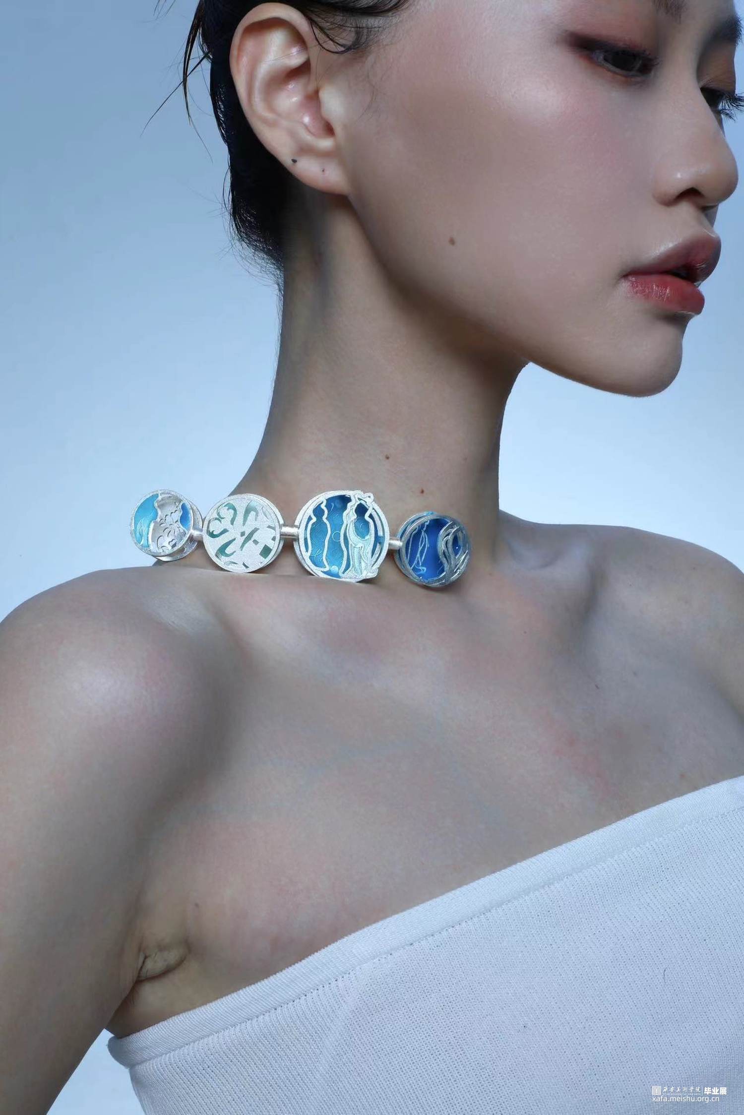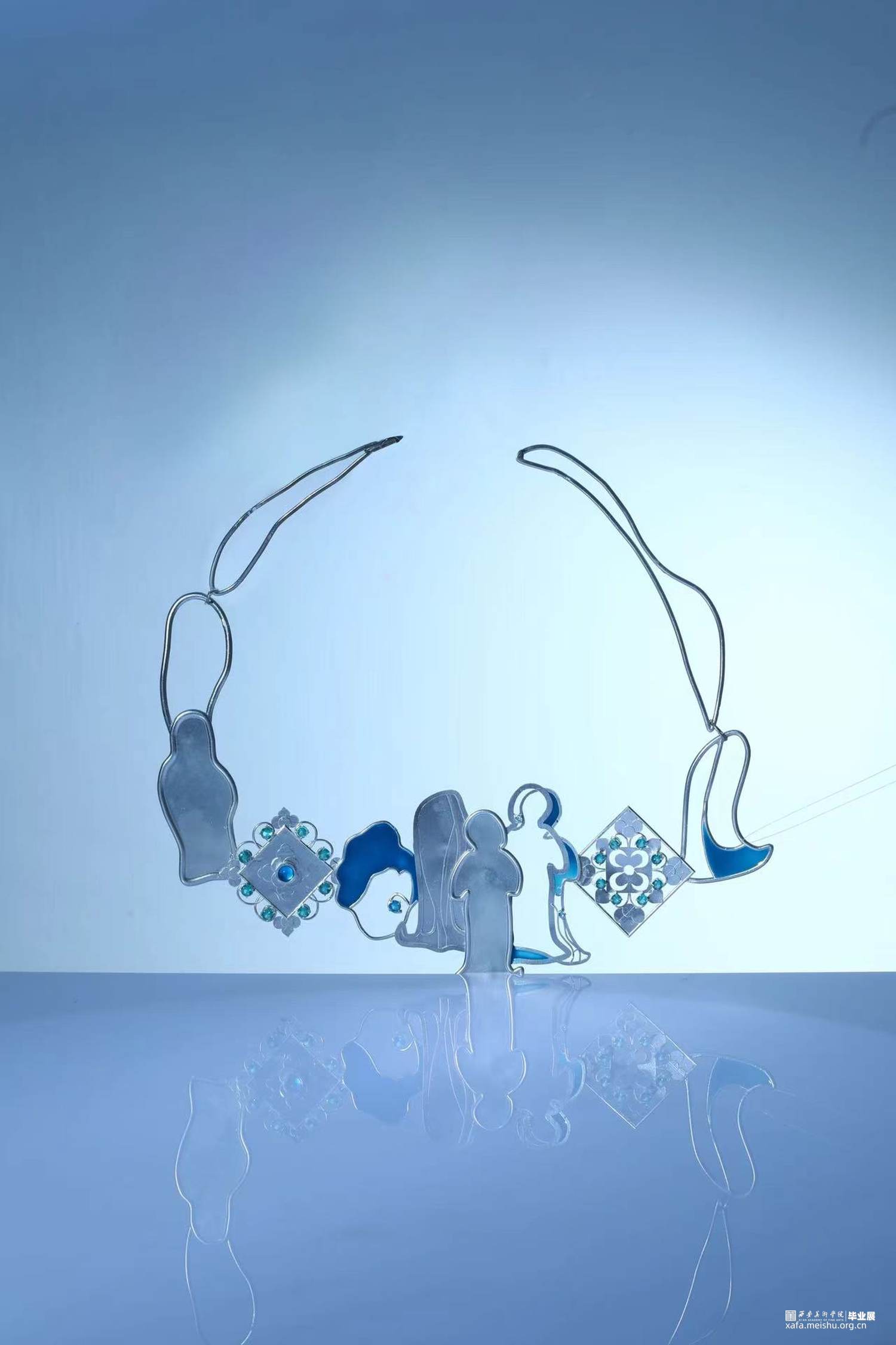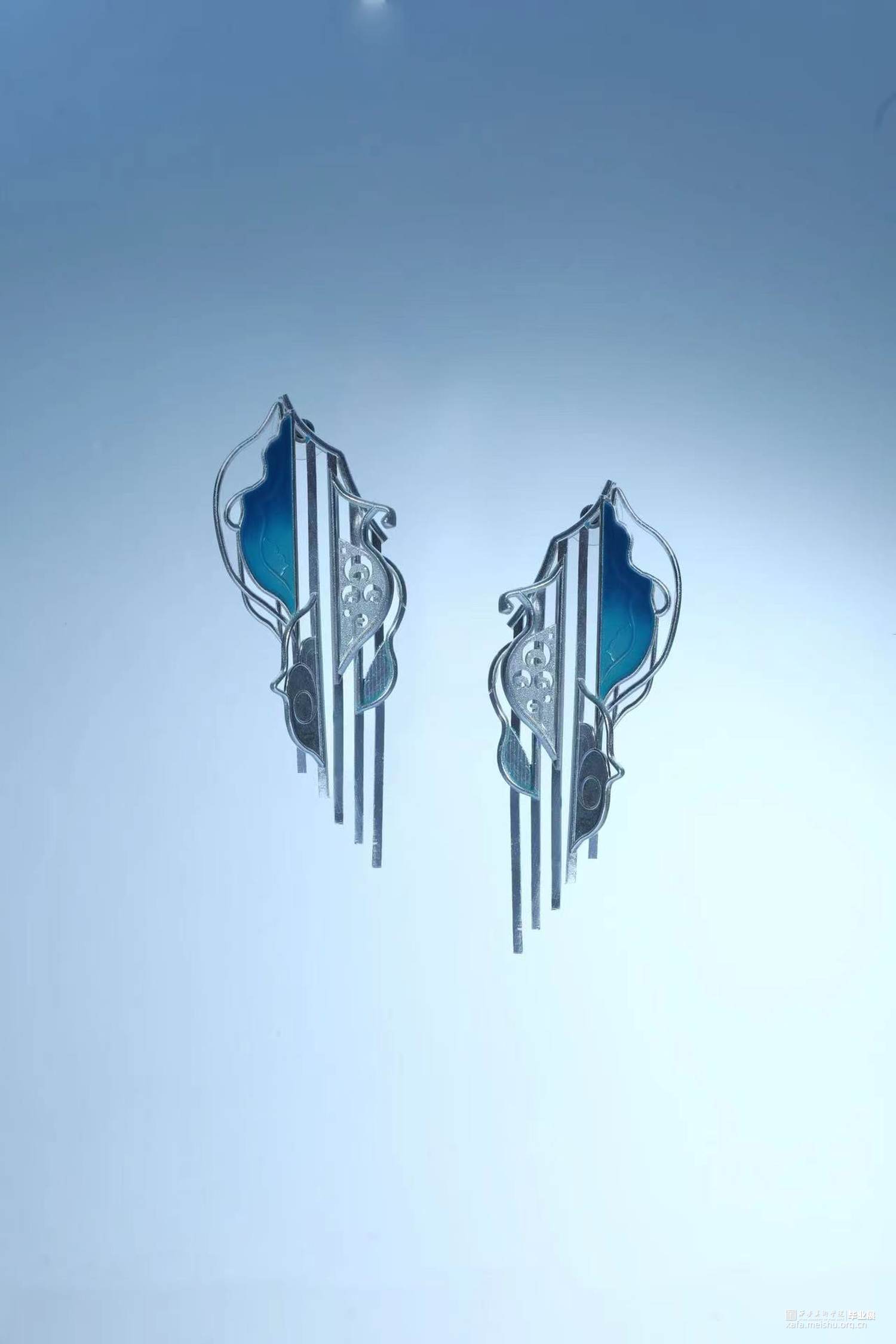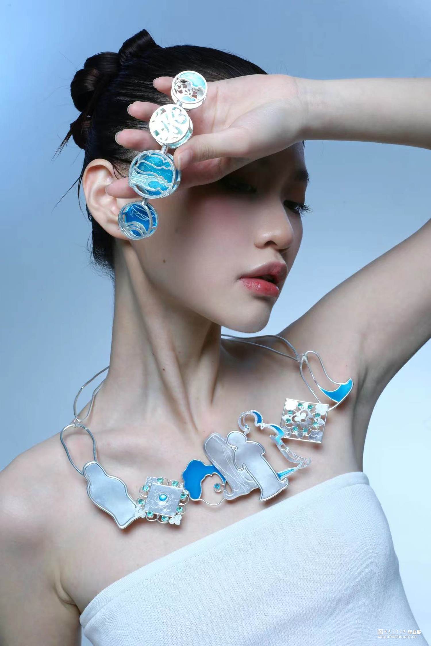 作品风格清雅大方,色彩则以银色,蓝色为主。