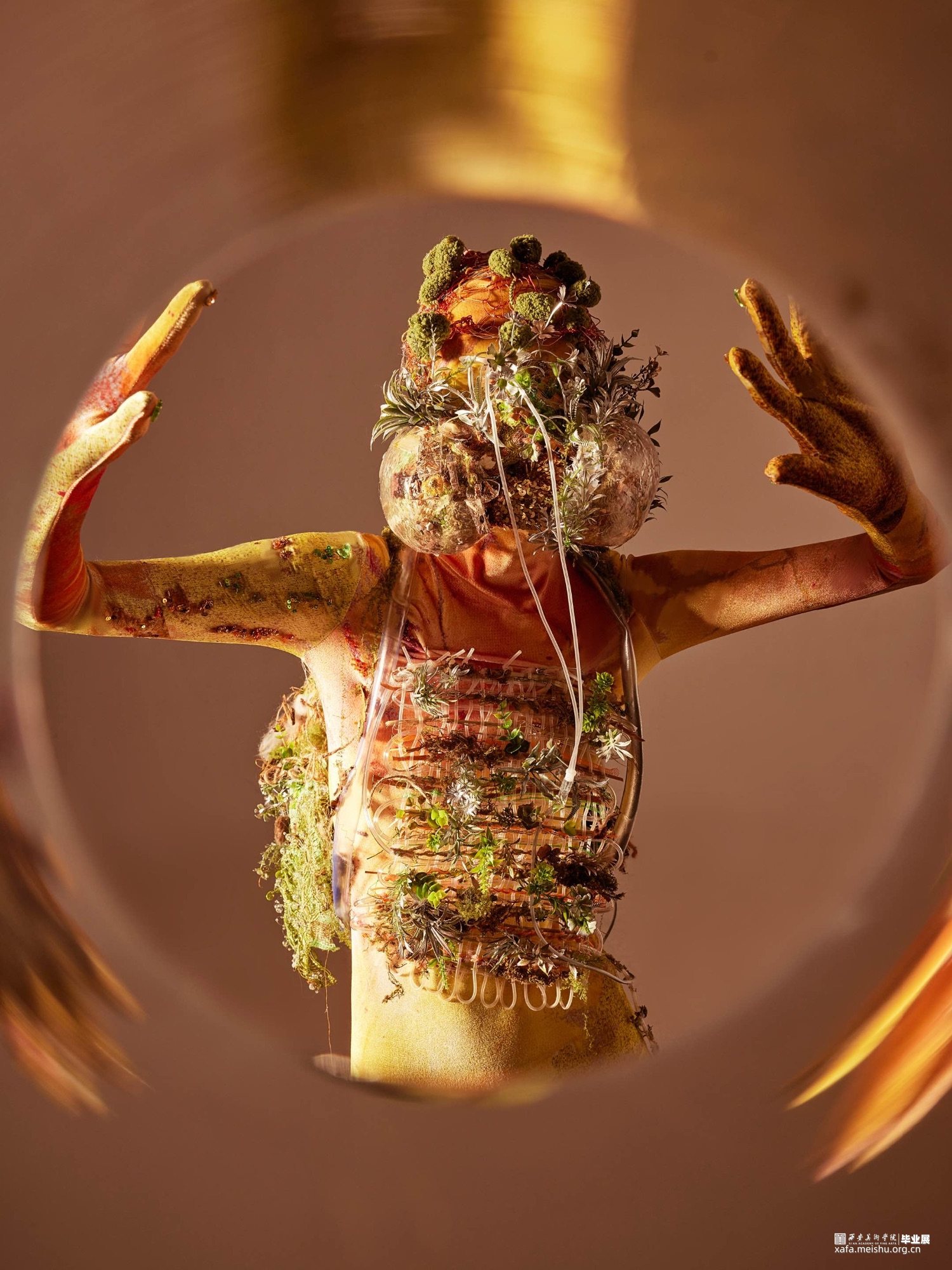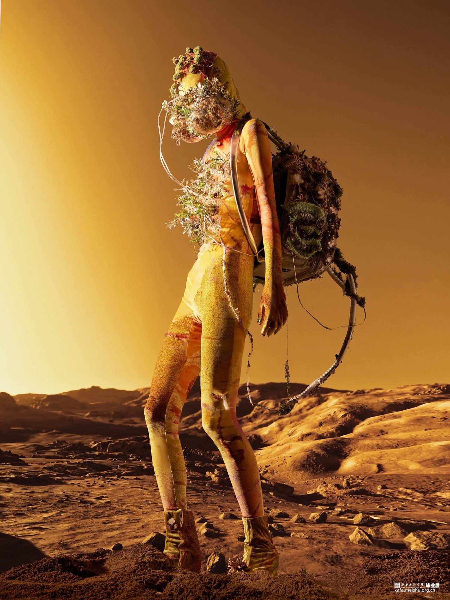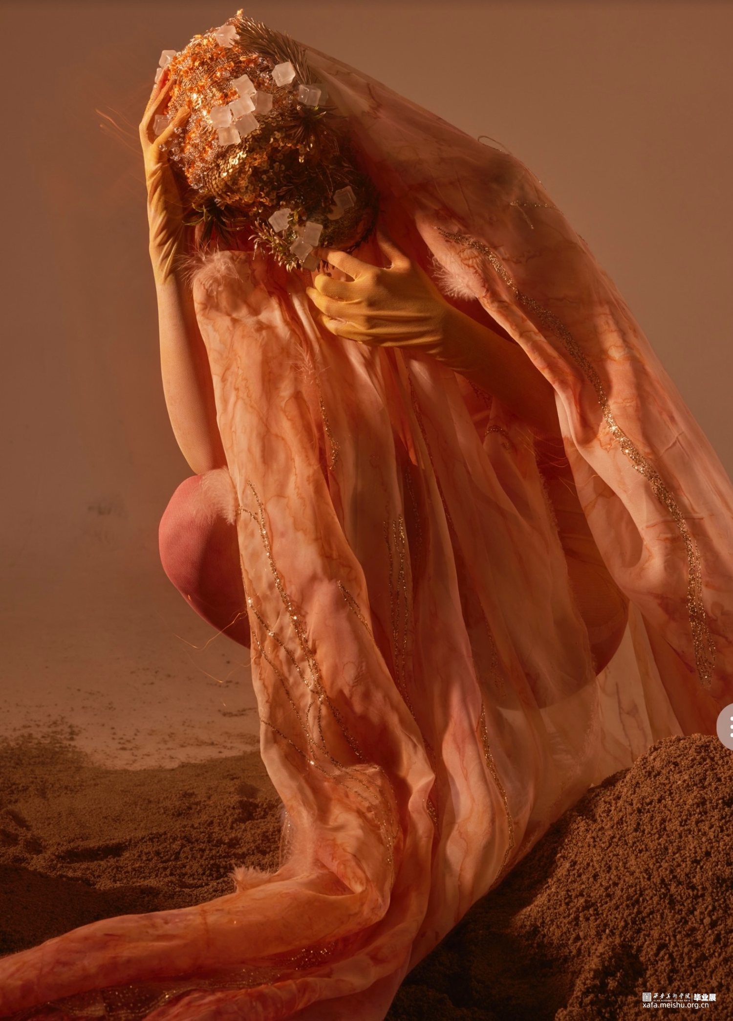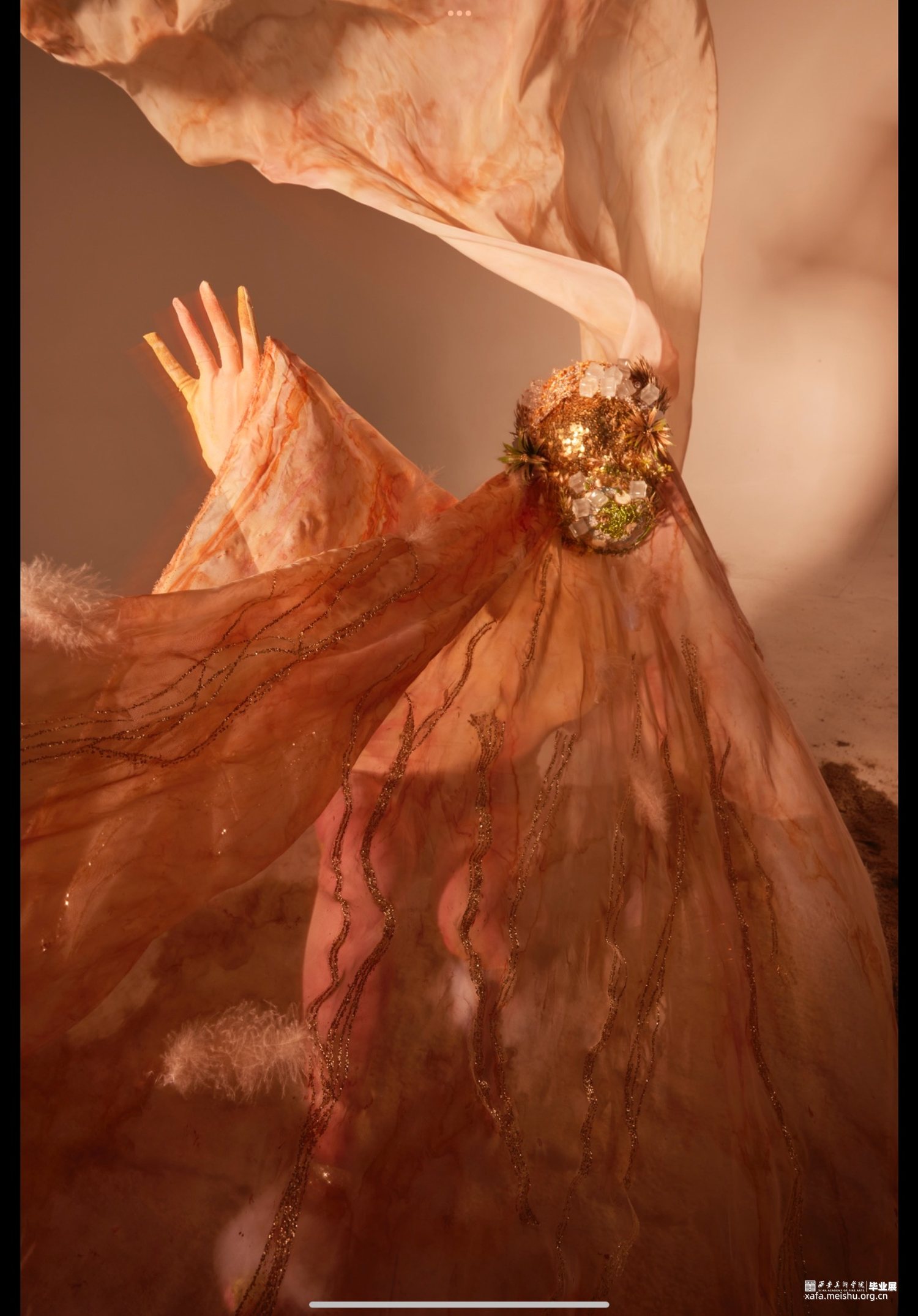 受到可持续环保理念的影响是我的创造灵感,我以荒废沙漠为灵感进行创作、使用印面料和复合材料完成最后创做。