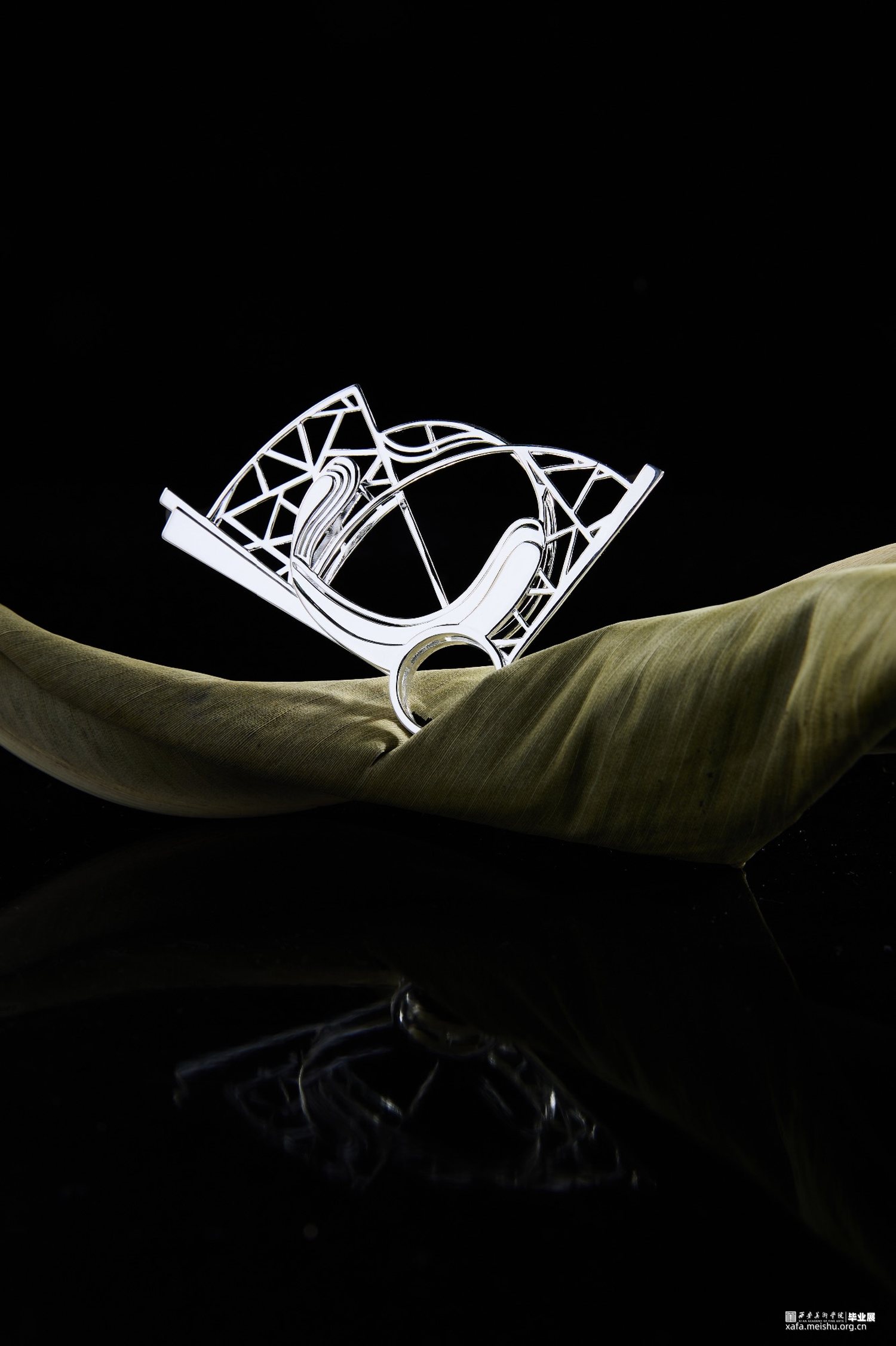 《游园惊梦》系列作品,灵感源自明代汤显祖的《牡丹亭》。作品以银质勾勒出春日园林的生机与杜丽娘的游园惊梦之情。通过形状与纹样的解构重组,展现古典韵味与现代珠宝首饰的完美融合,令人仿佛置身于那亦真亦幻的爱情故事中。