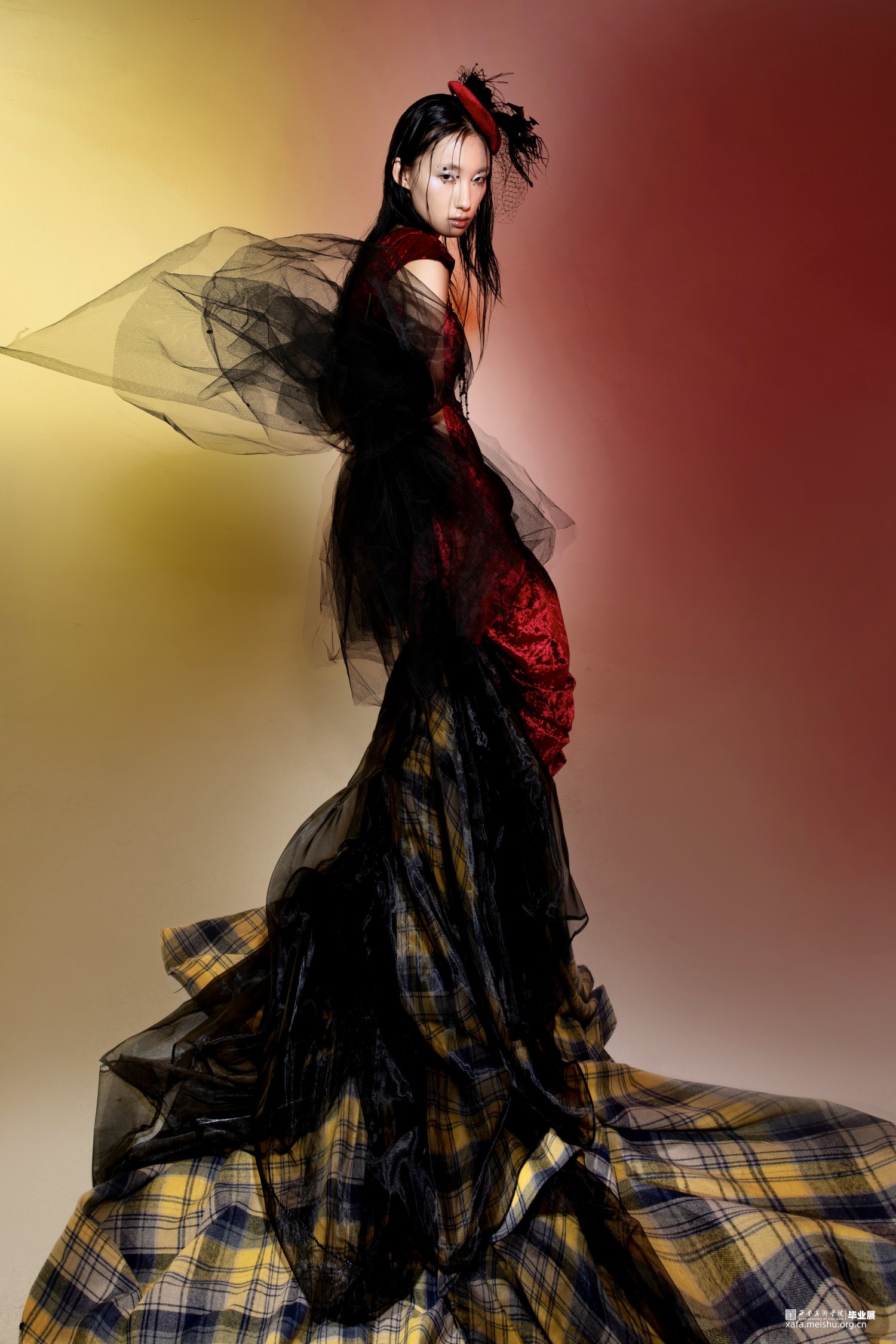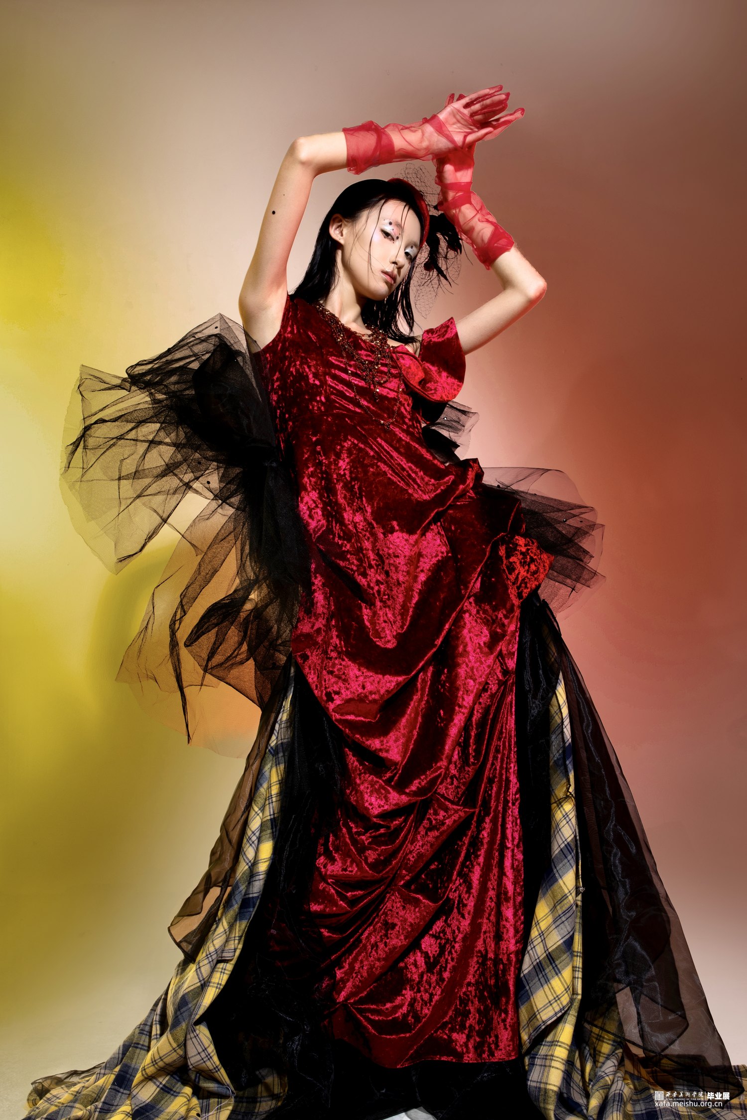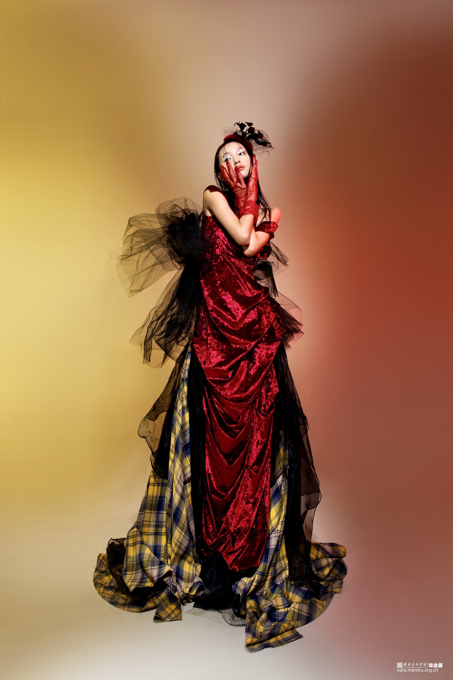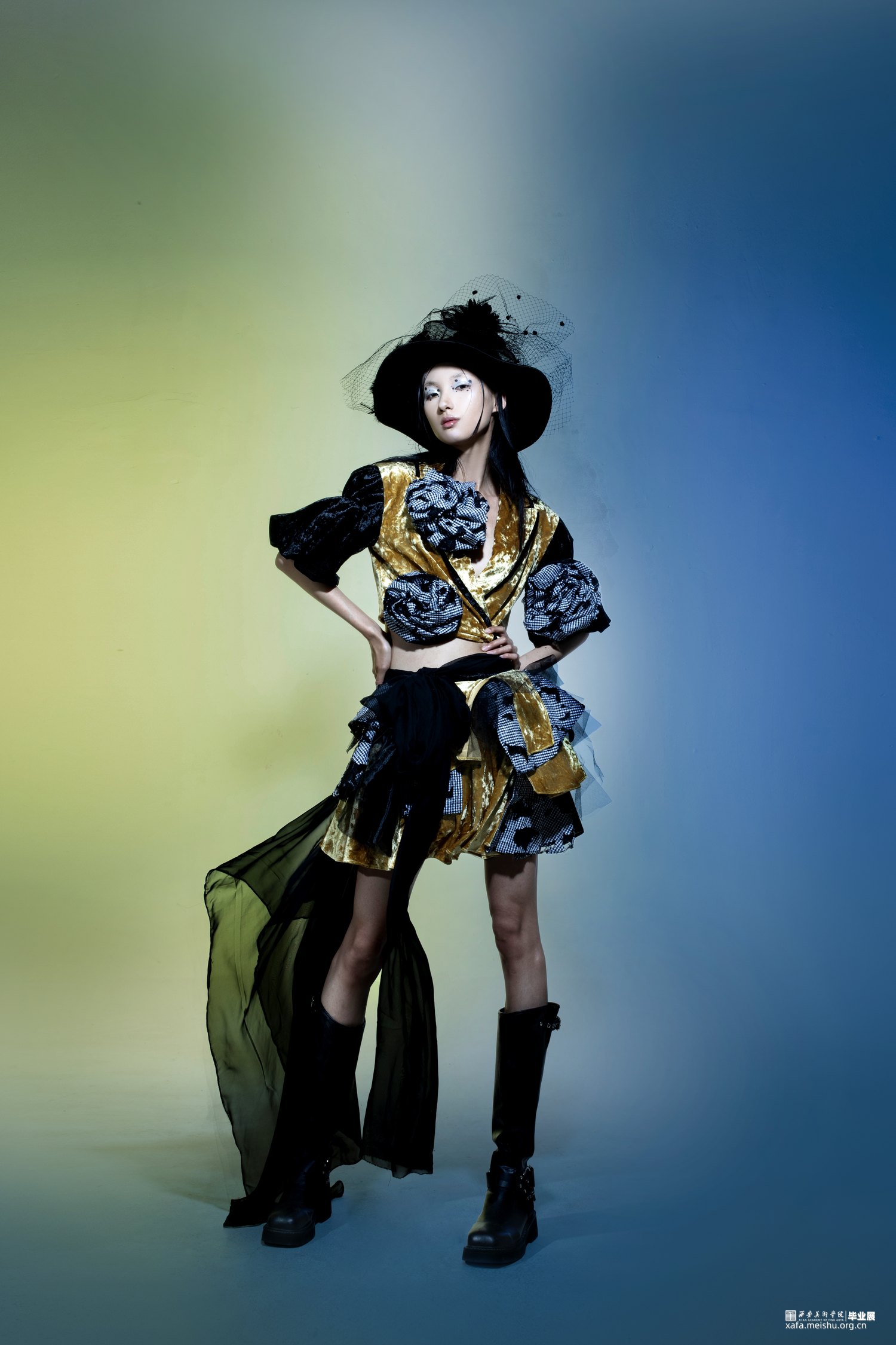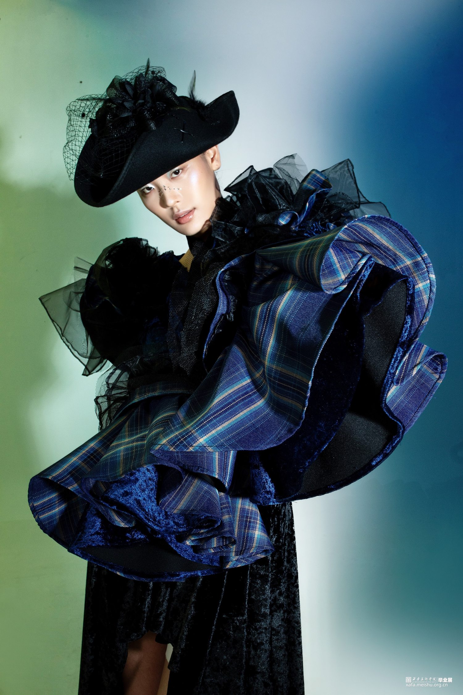设计作品《梦中与海盗航行》以复古、后朋克、海盗为创新关键词,用堆积层叠的方法融合应用,结合当代国际流行的设计理念,用独特的手法表现维京海盗叠穿衣服的特性,用丝绒面料呈现复古元素,并用西装中具有代表性的廓形加以创新,后朋克与复古相结合,结构上的繁复堆叠体现体量感,对相关的设计运用起到一定参考价值。