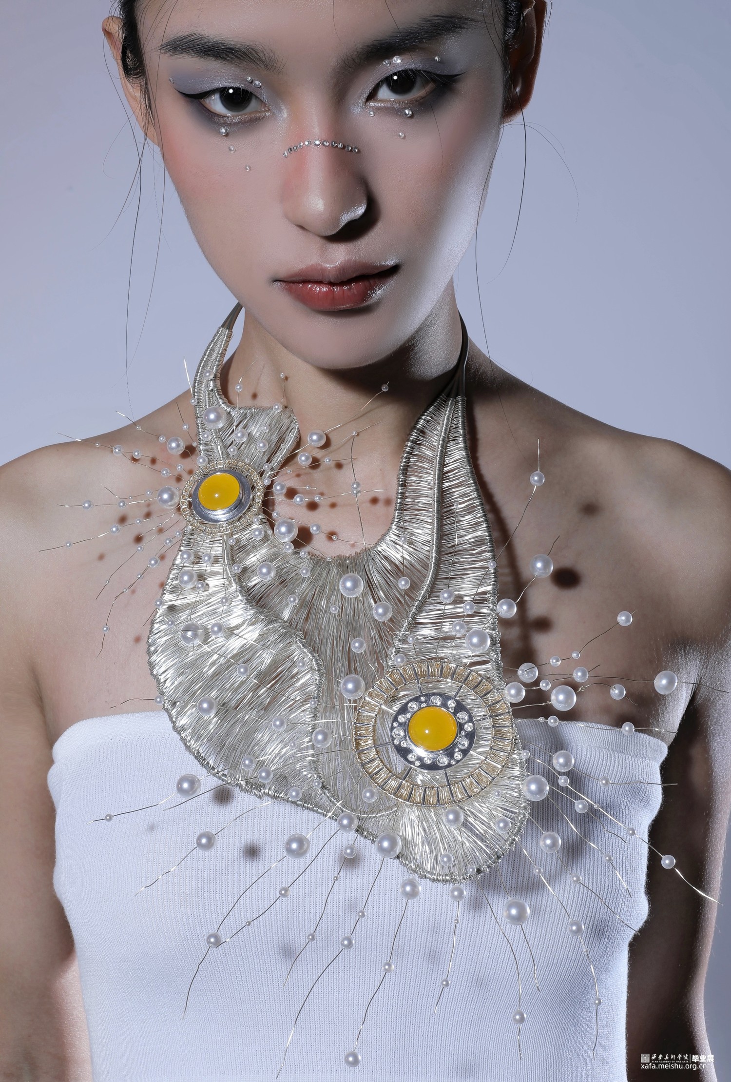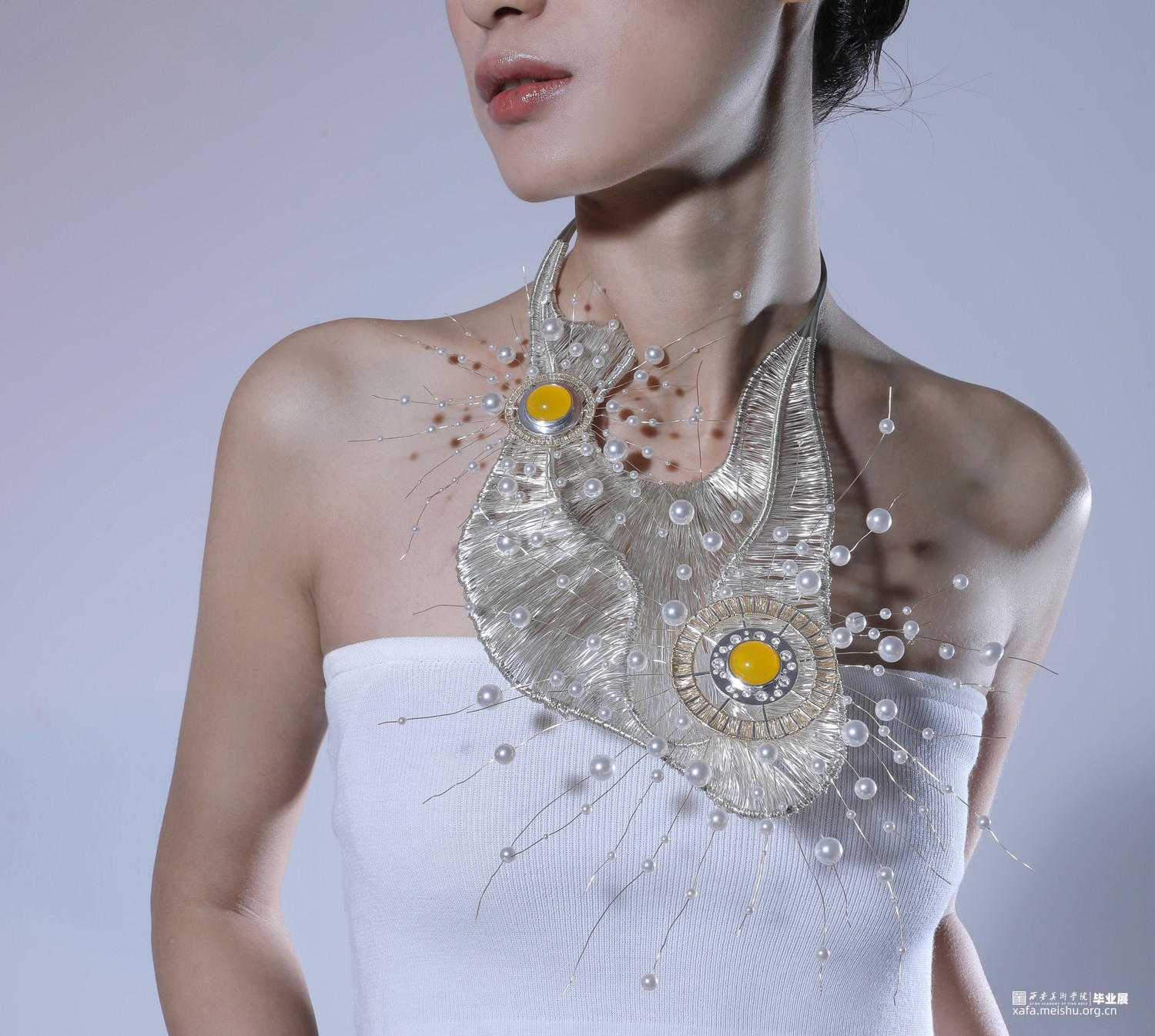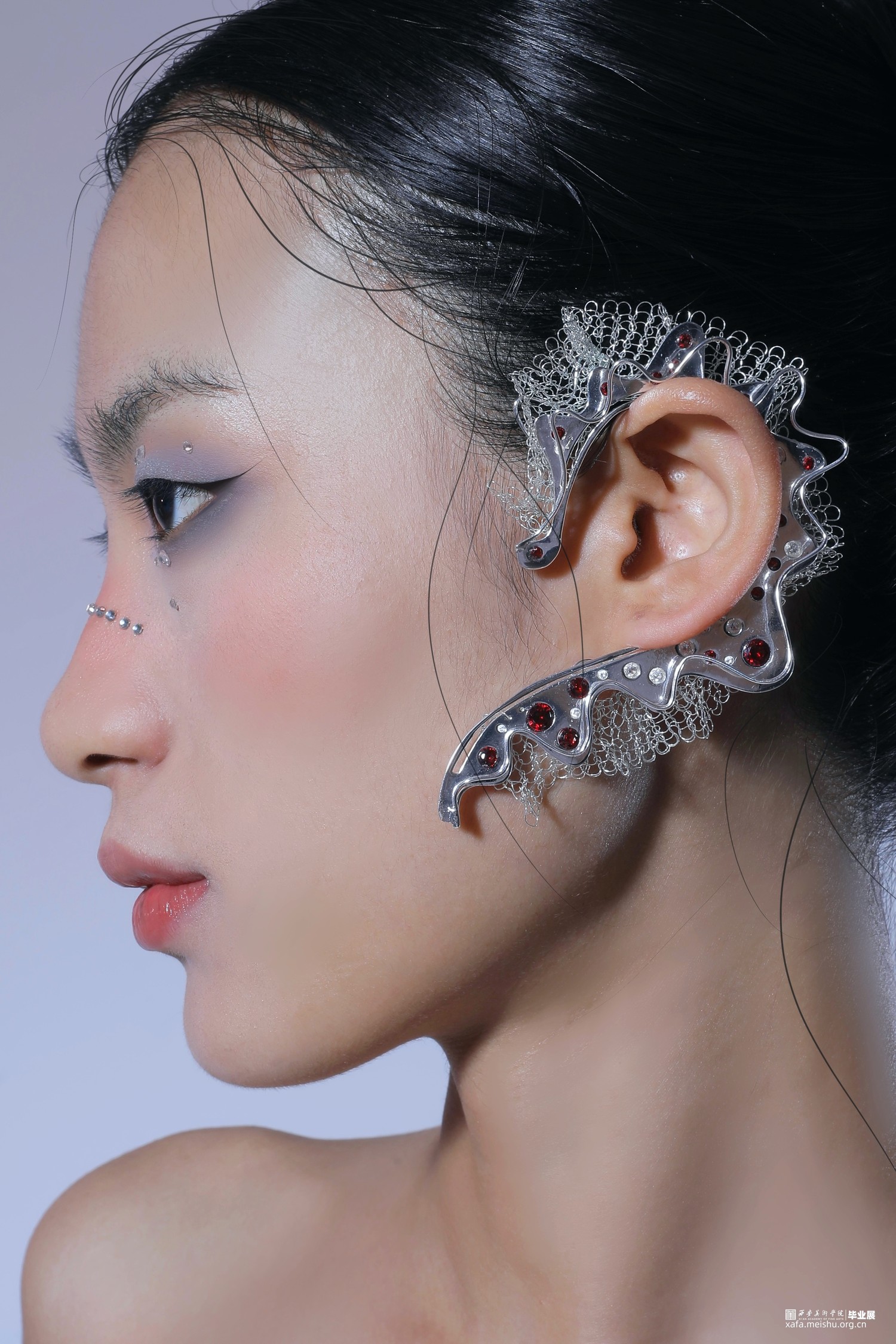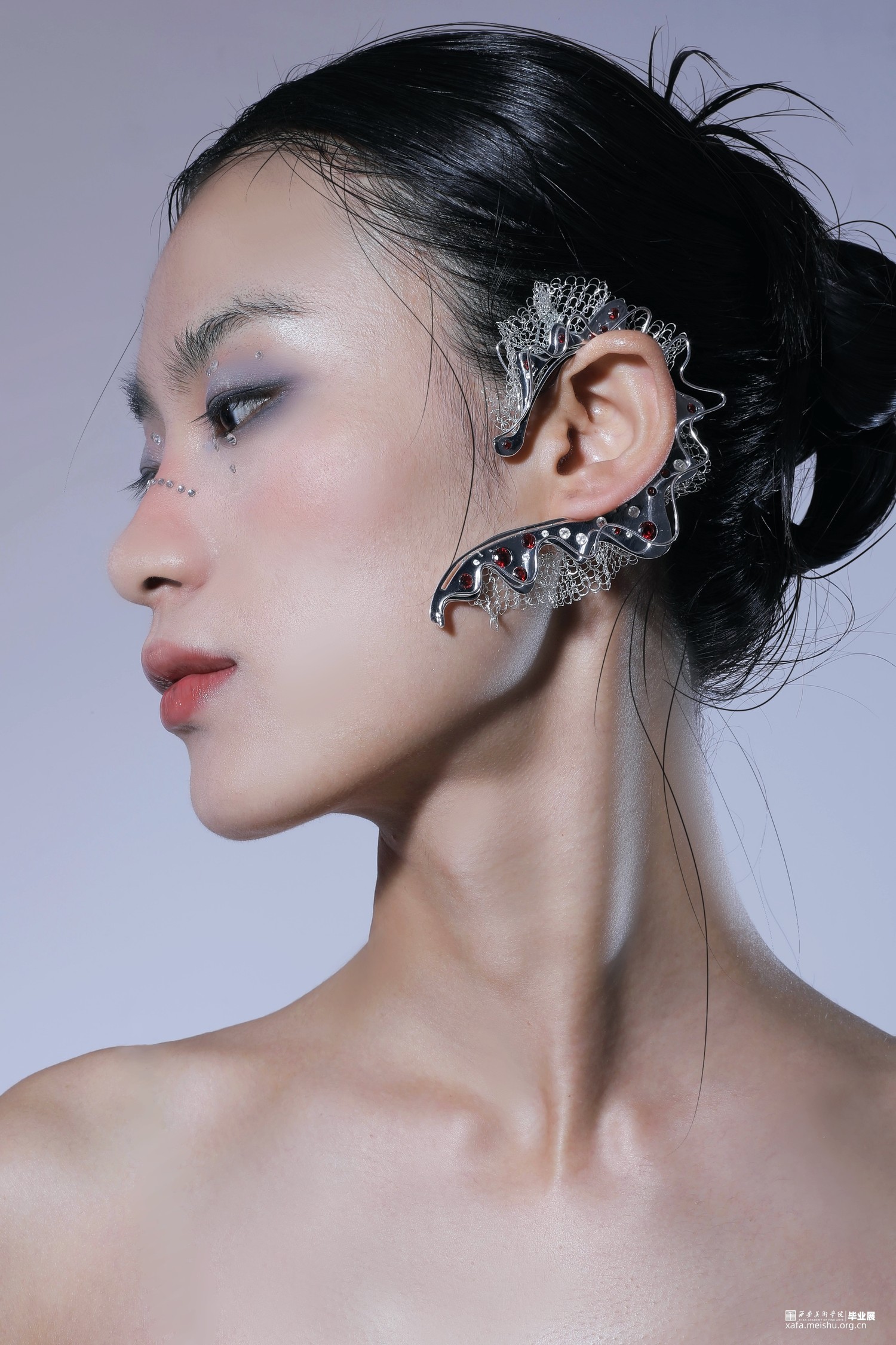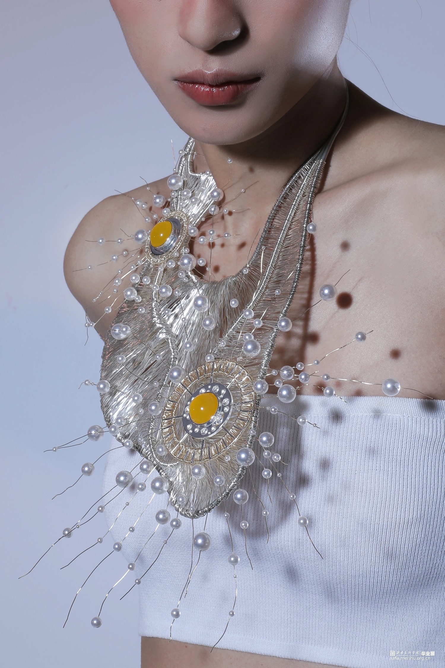 借鉴手工编织、古法藤编的工艺方法,通过参考传统编织知识,结合现当代编织艺术家的编织艺术品引发灵感,在创作过程中以细胞作为主要切入点,进行发散联想,深入探寻如何用钩针编织方法去体现细胞的各异形态。用当代首饰的思维思想与传统的编制方法进行新的结合,呈现出不同的形式造型,给人们对于传统编织不同的视觉呈现。