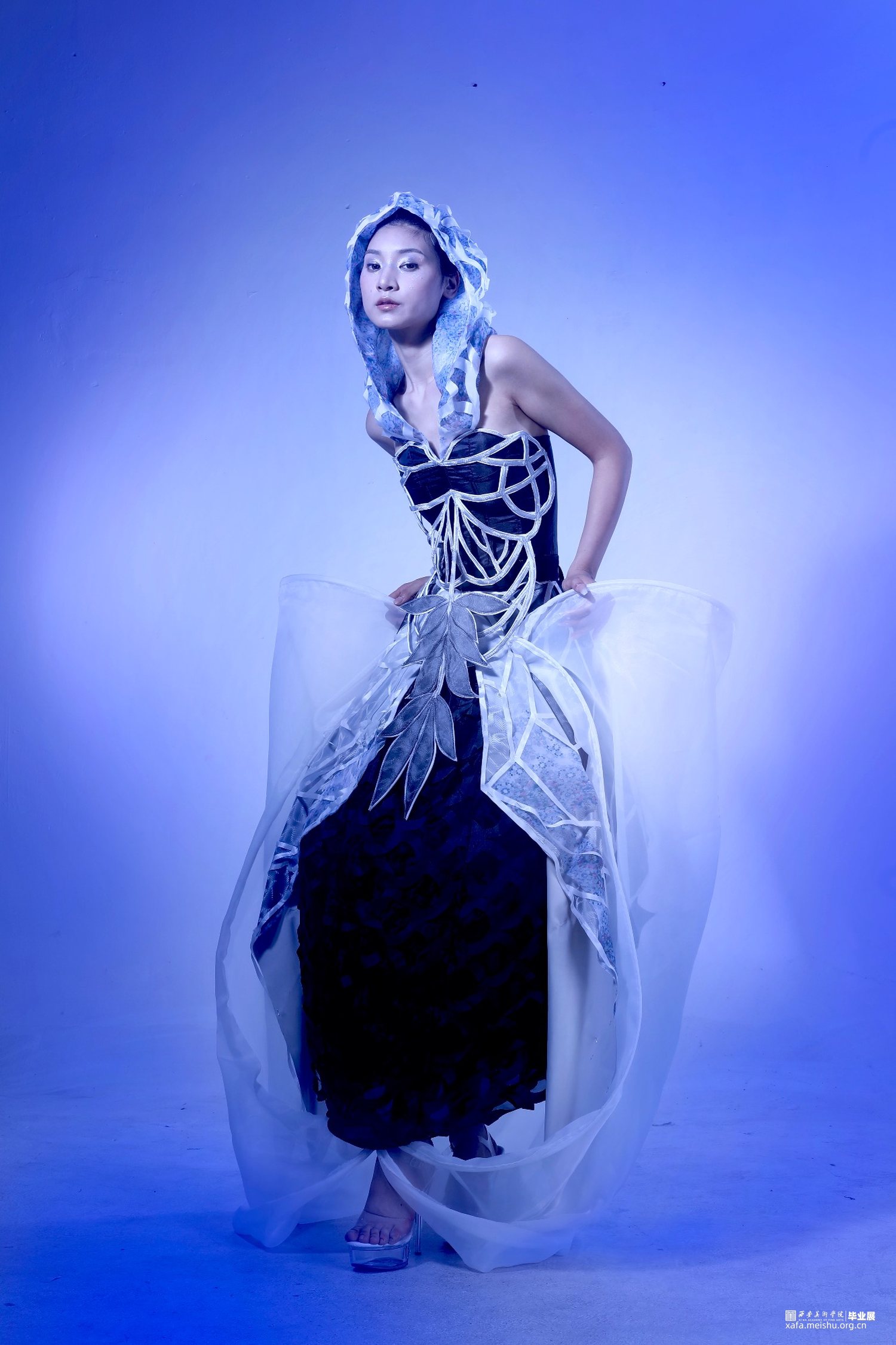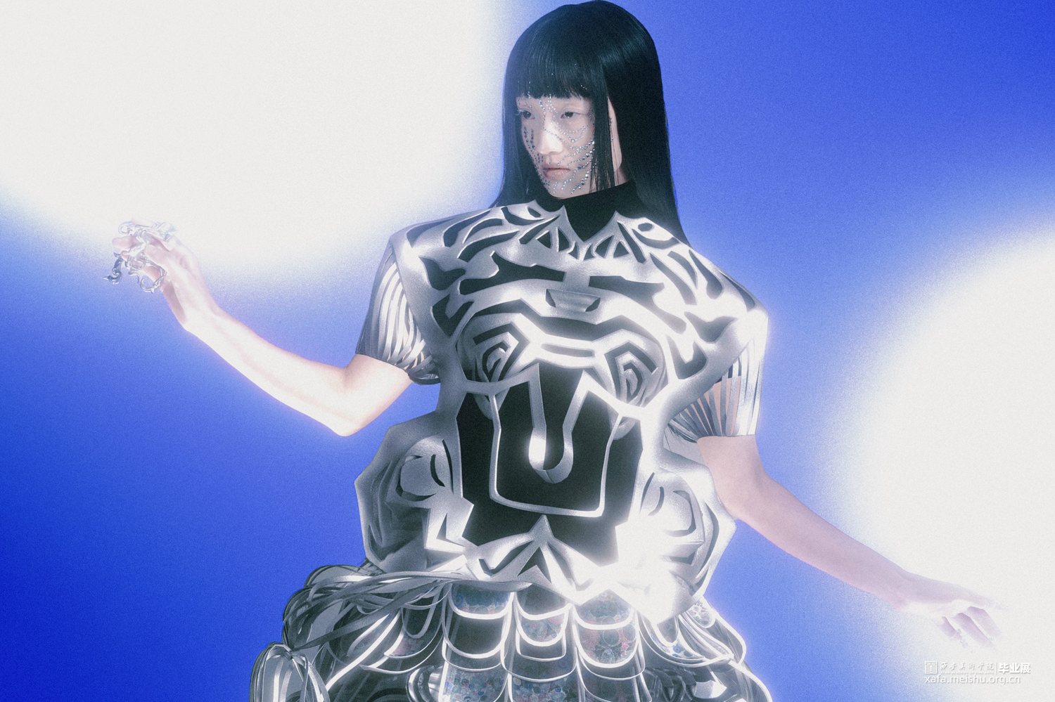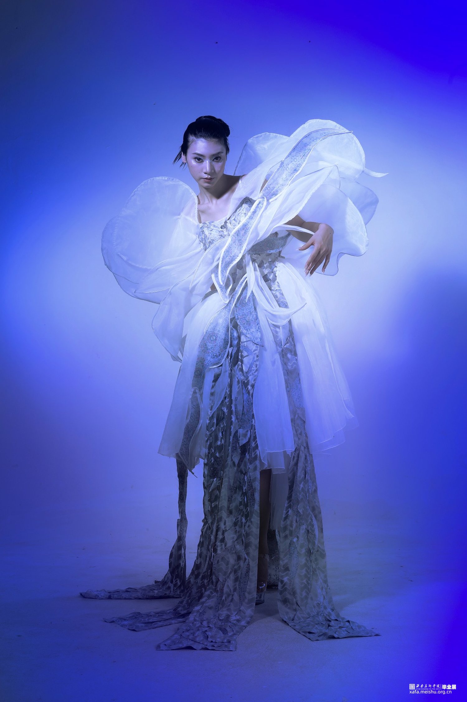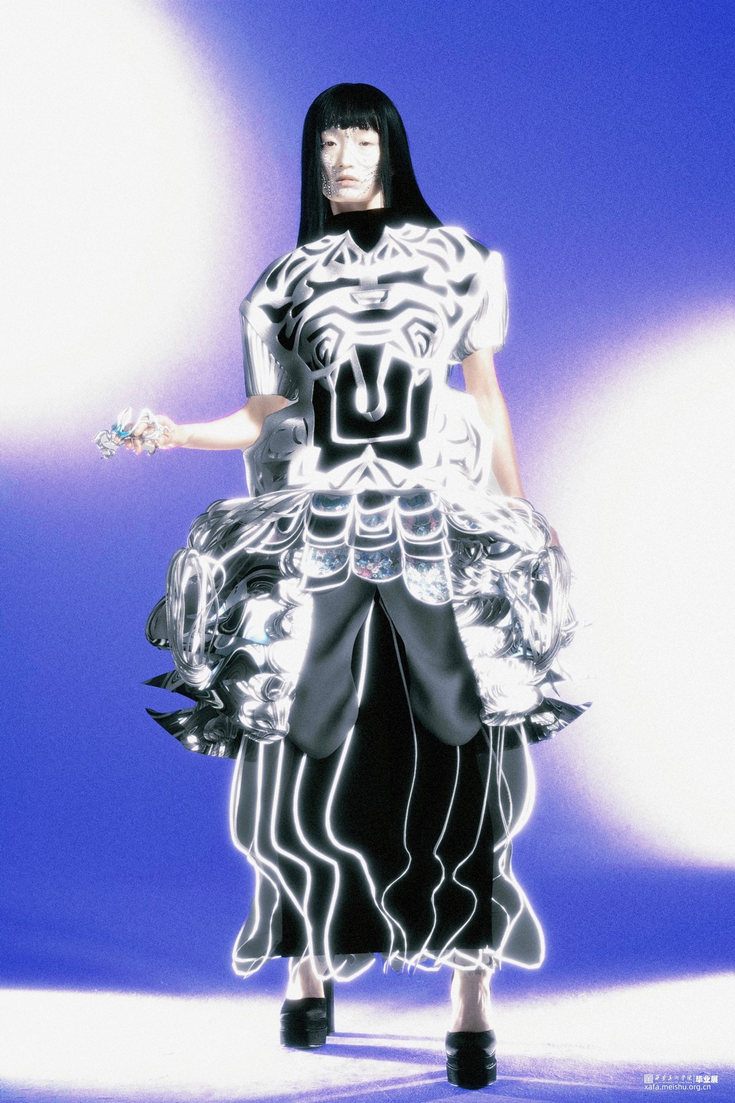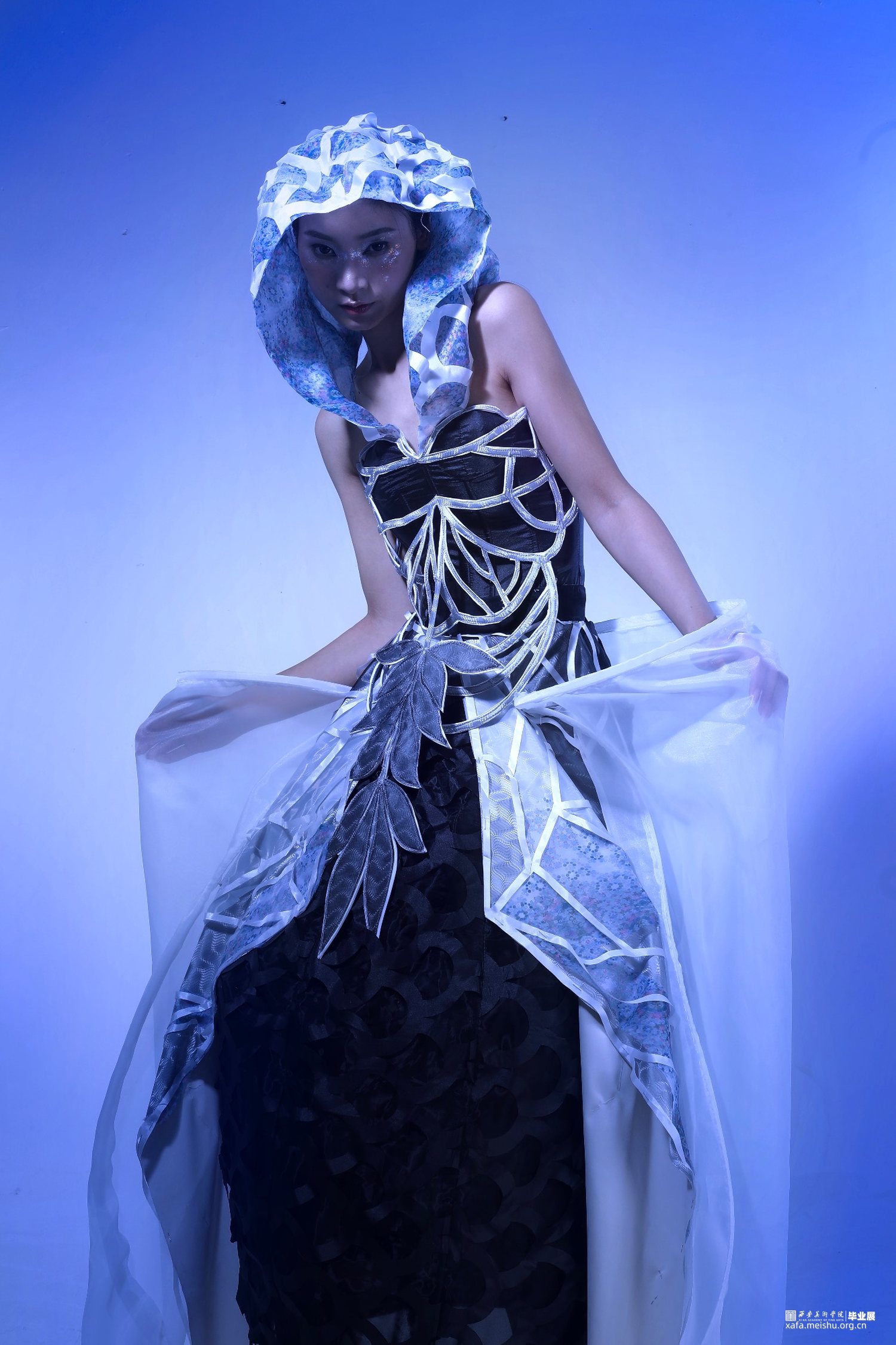 项目汲取巴洛克天花板艺术与硅藻的美学灵感,结合立体构成实验,进行面料与服装设计。 最终作品展示了折叠人类的形态,提供了多维度生存转变与适应的新视⻆,