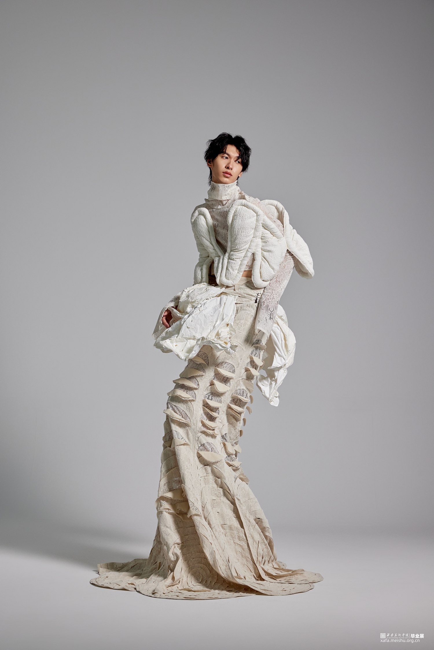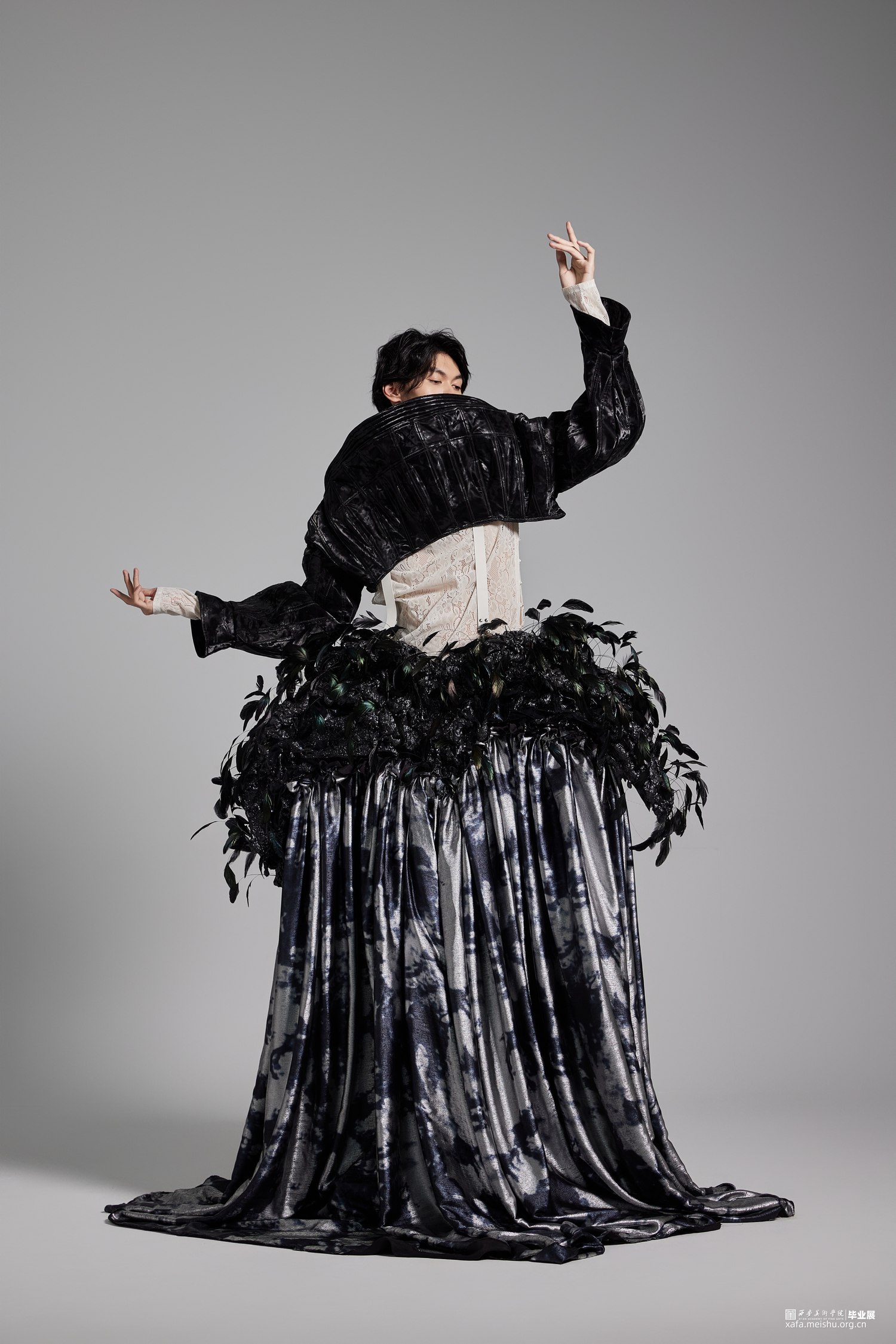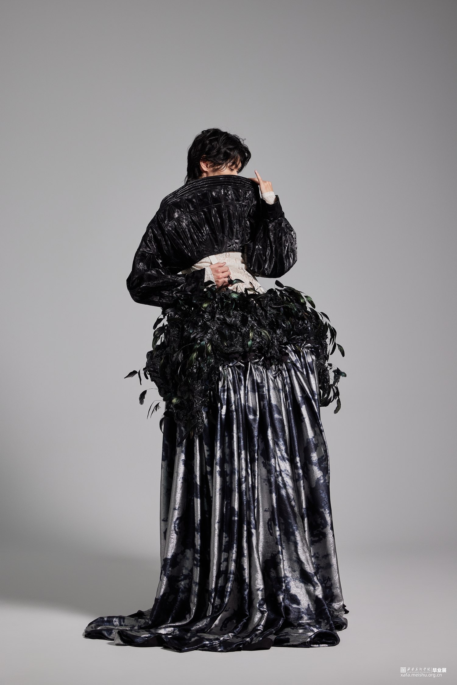 《非二元流动性》灵感来源于《第二性》,它从生物学、精神分析和历史唯物主义对女性观点出发进行剖析。从而引发作者对“性别塑造”的思考,尝试通过“非二元流动性”分析社会构建中的流动性和包容性。引申出在非二元情况下的自我疗愈。以艺术疗愈在非二元流动性男装中的情感化体现及其应用为研究对象,讨论了艺术治疗在服装设计中的展现形式。为拥有“非二元性”群体提供了更符合个体需求的服装设计。