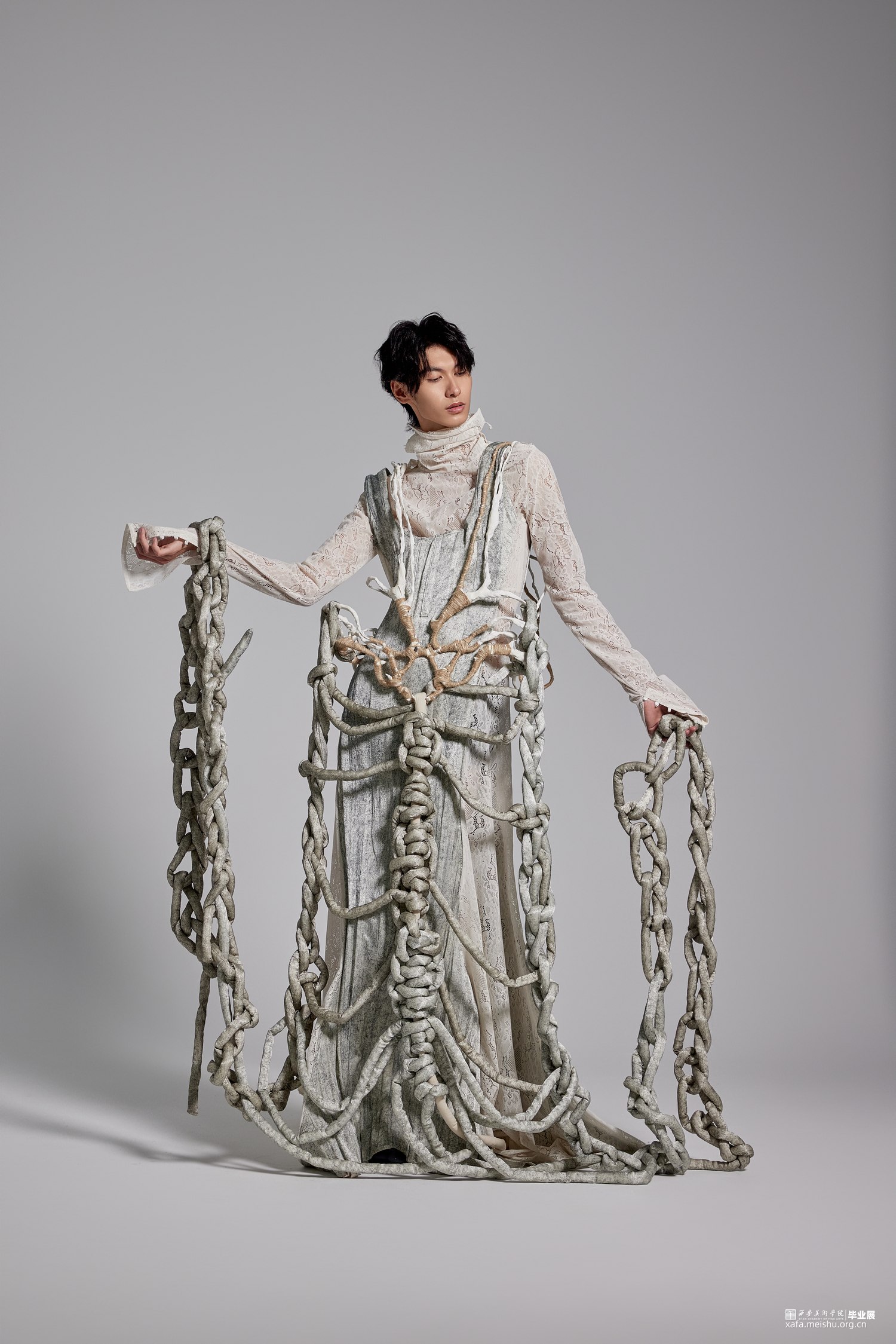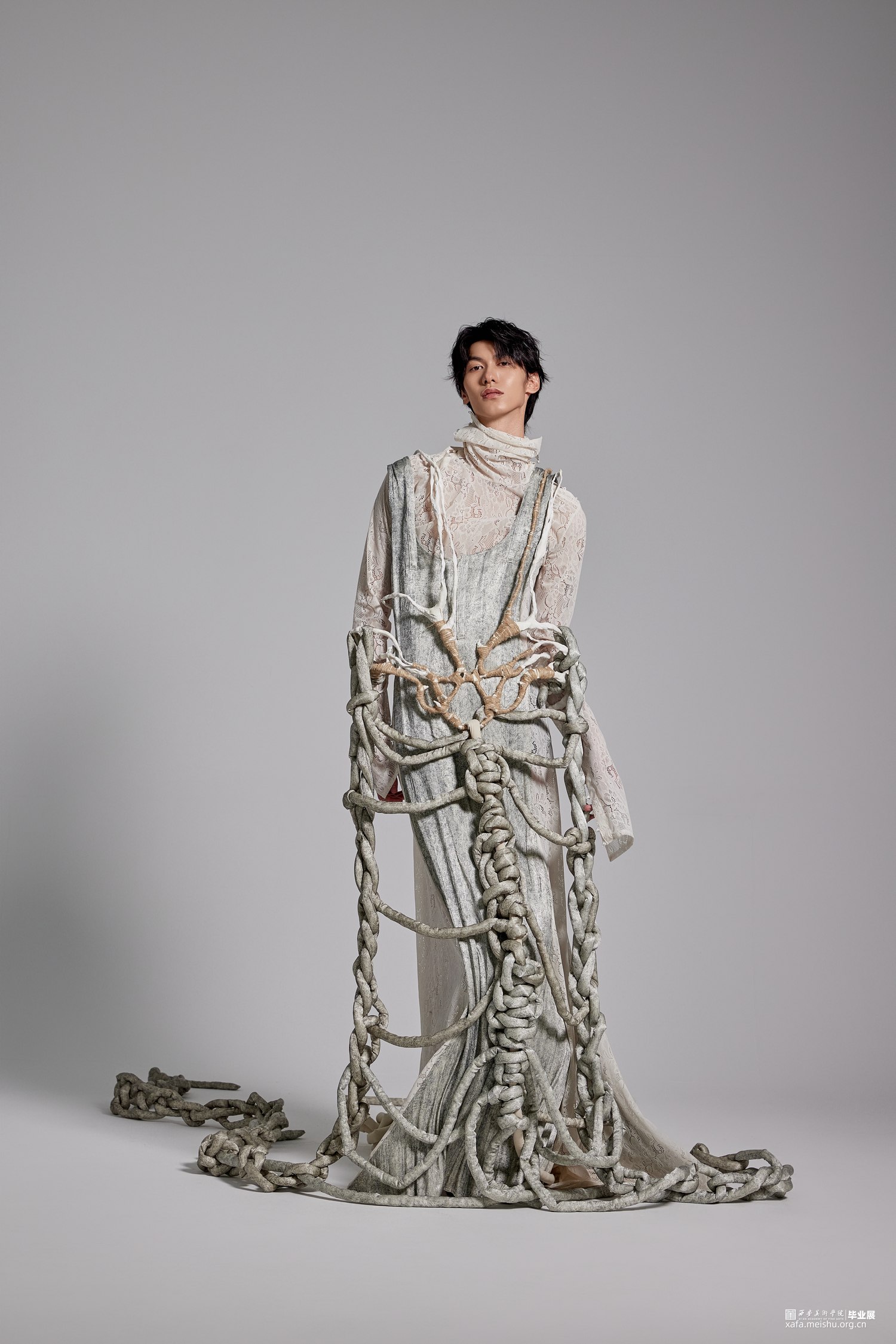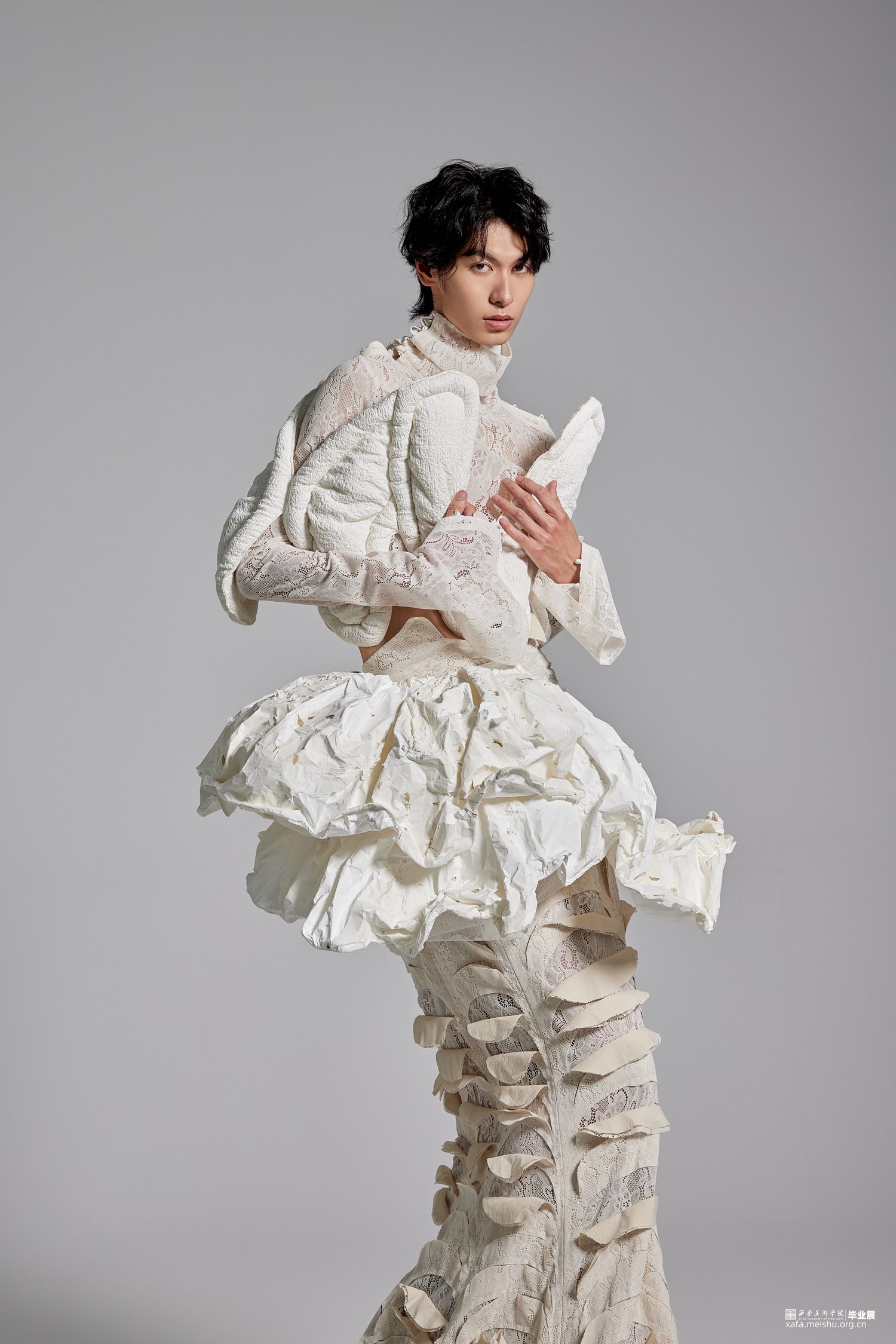 《非二元流动性》灵感来源于《第二性》,它从生物学、精神分析和历史唯物主义对女性观点出发进行剖析。从而引发作者对“性别塑造”的思考,尝试通过“非二元流动性”分析社会构建中的流动性和包容性。引申出在非二元情况下的自我疗愈。以艺术疗愈在非二元流动性男装中的情感化体现及其应用为研究对象,讨论了艺术治疗在服装设计中的展现形式。为拥有“非二元性”群体提供了更符合个体需求的服装设计。