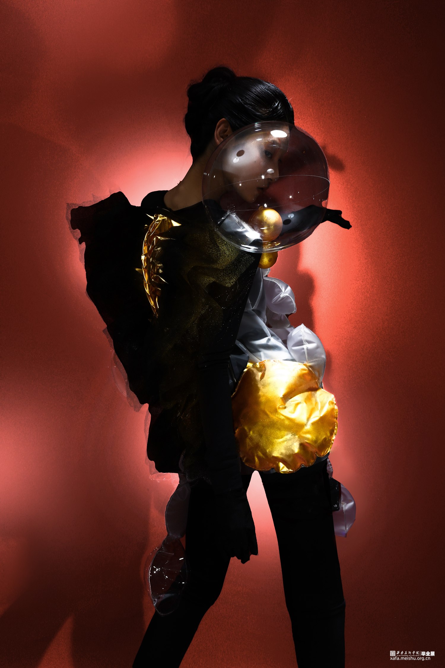 作品通过机动装置展现了自我探索与内心成长的过程,机动装置的加入,旨在为每件作品增添动感与互动性,进一步展示了自我探索过程中的挣扎与成长。设计中使用了黑色和金色作为主要配色,黑色代表外界的批评及其他,而金色则象征真实璀璨的自我。