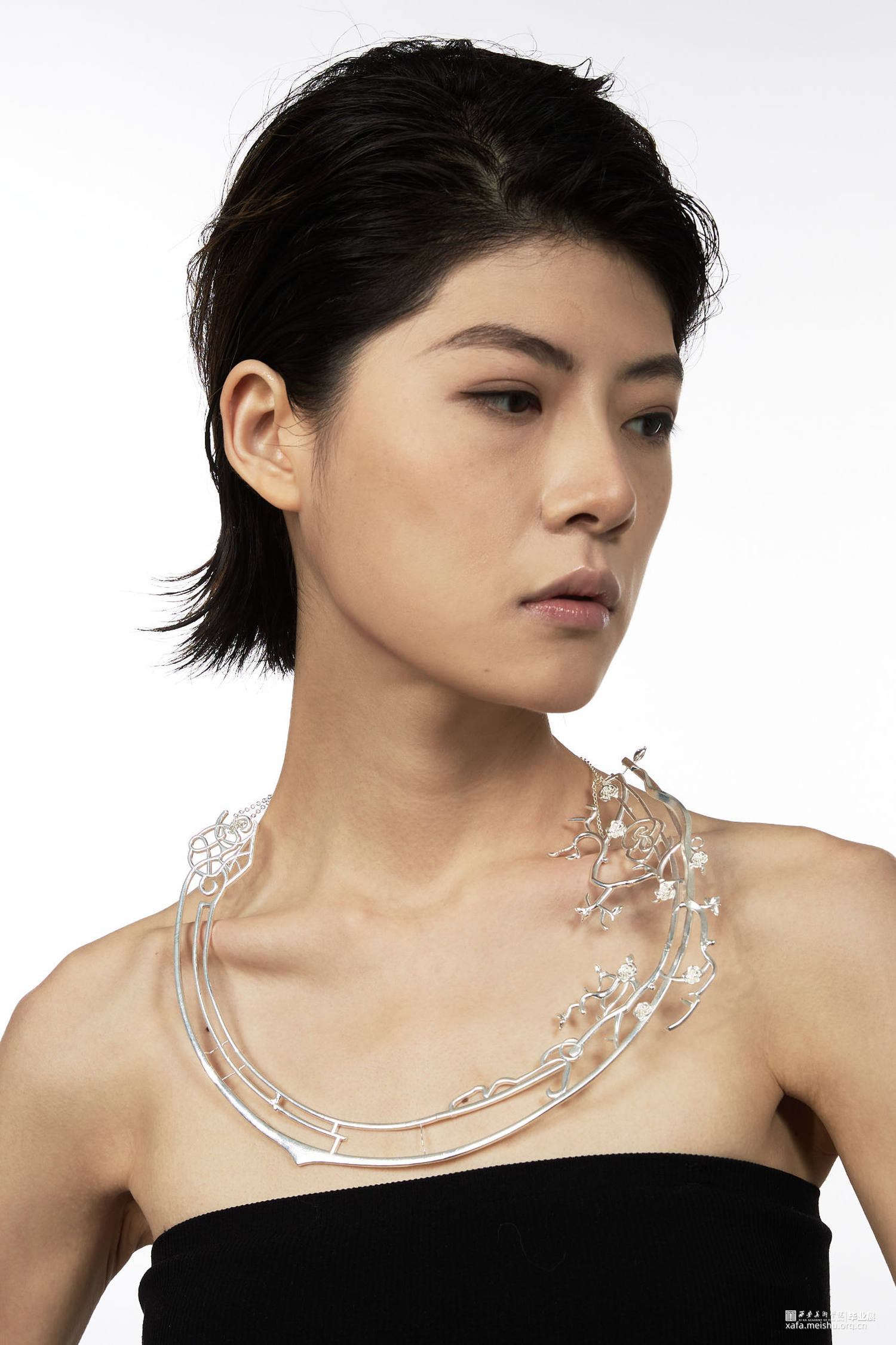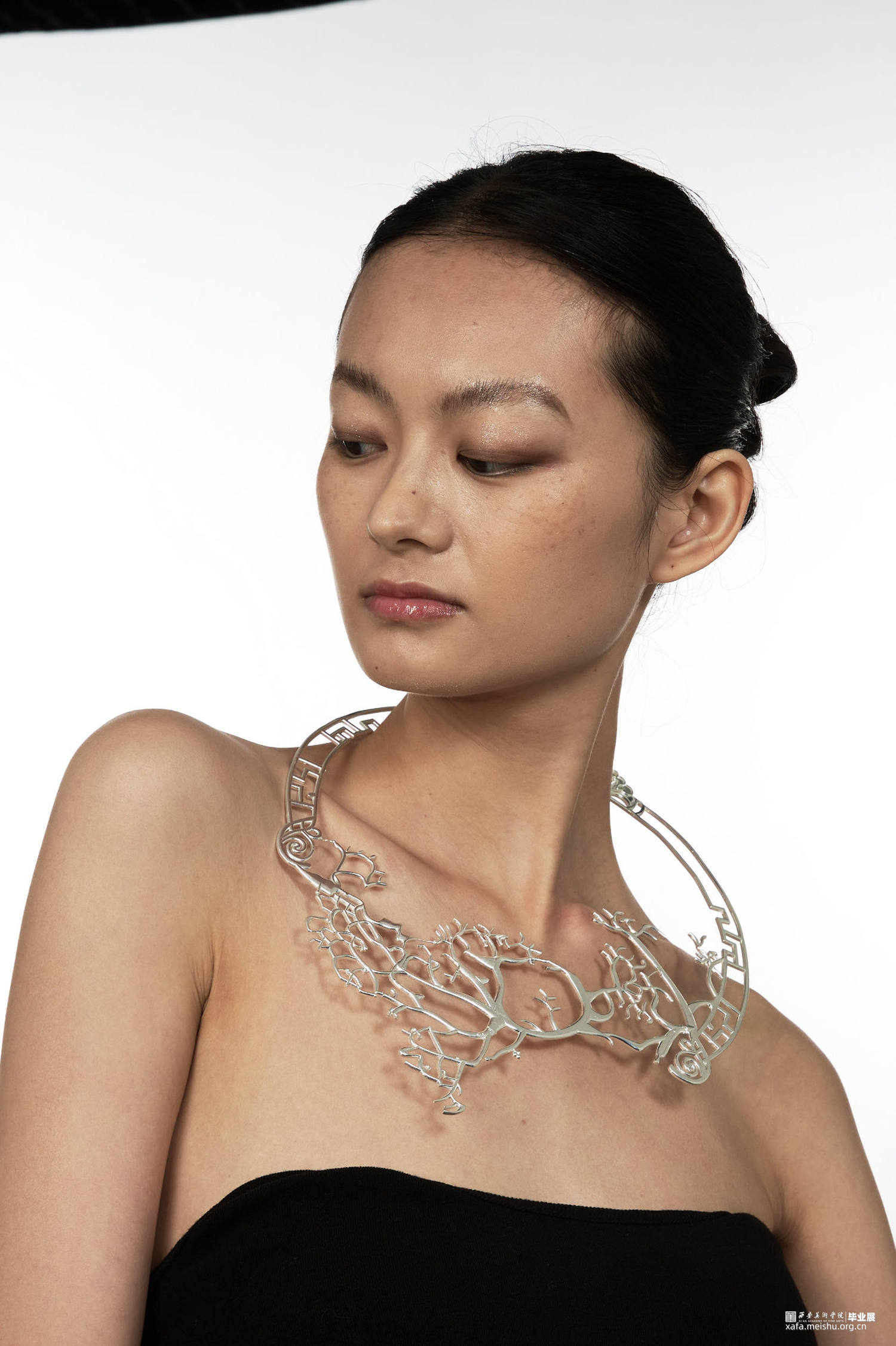中国人注重山水养人的生活意境,在天人合一的境界里润泽身心。《境》系列提取苏州园林中留园的窗棂、假山景致,经过当代化审美调和与设计,用项圈、耳环等首饰进行古典美的当代化呈现。