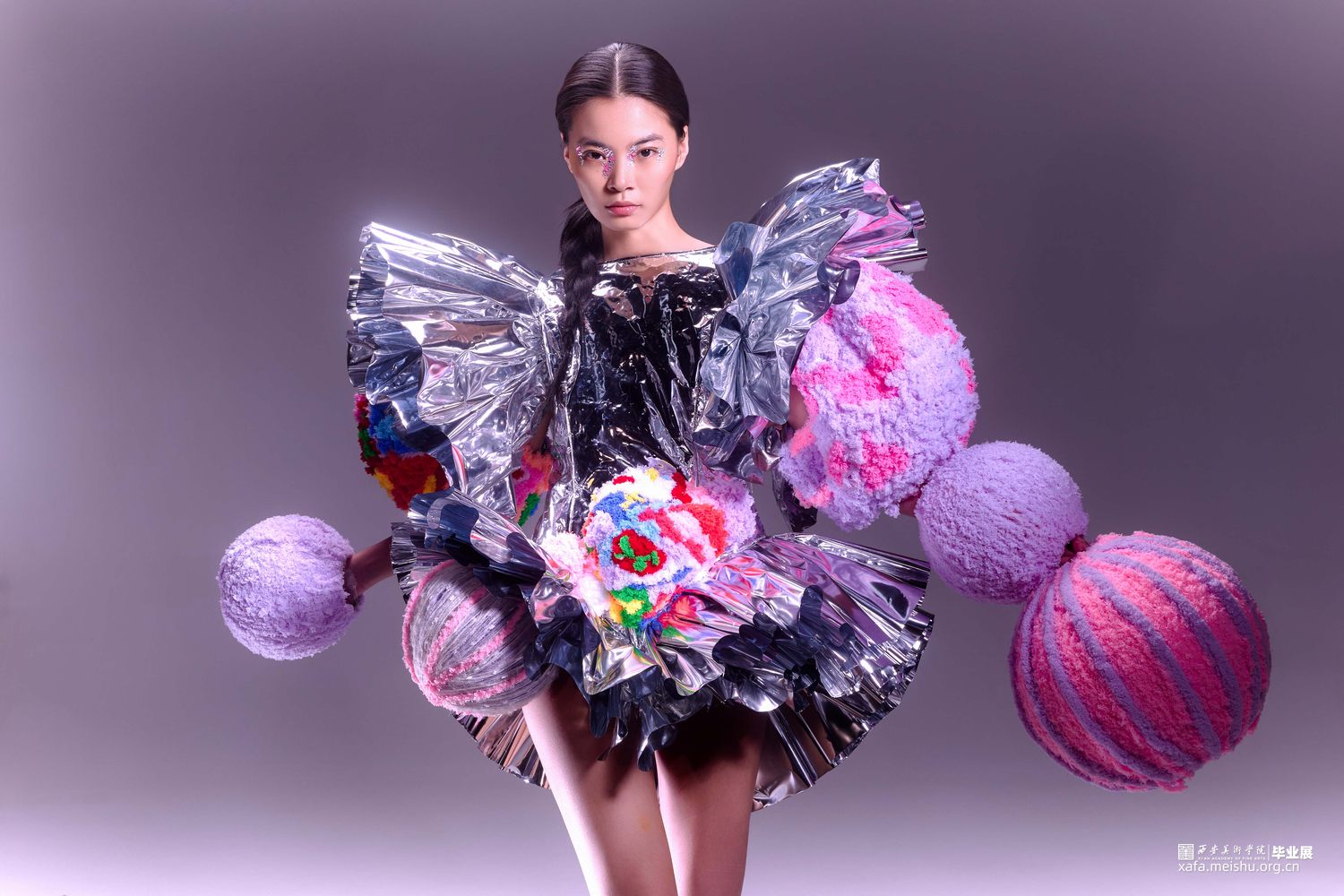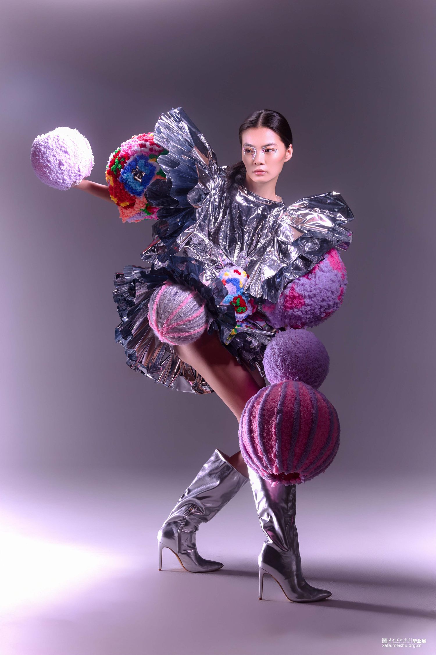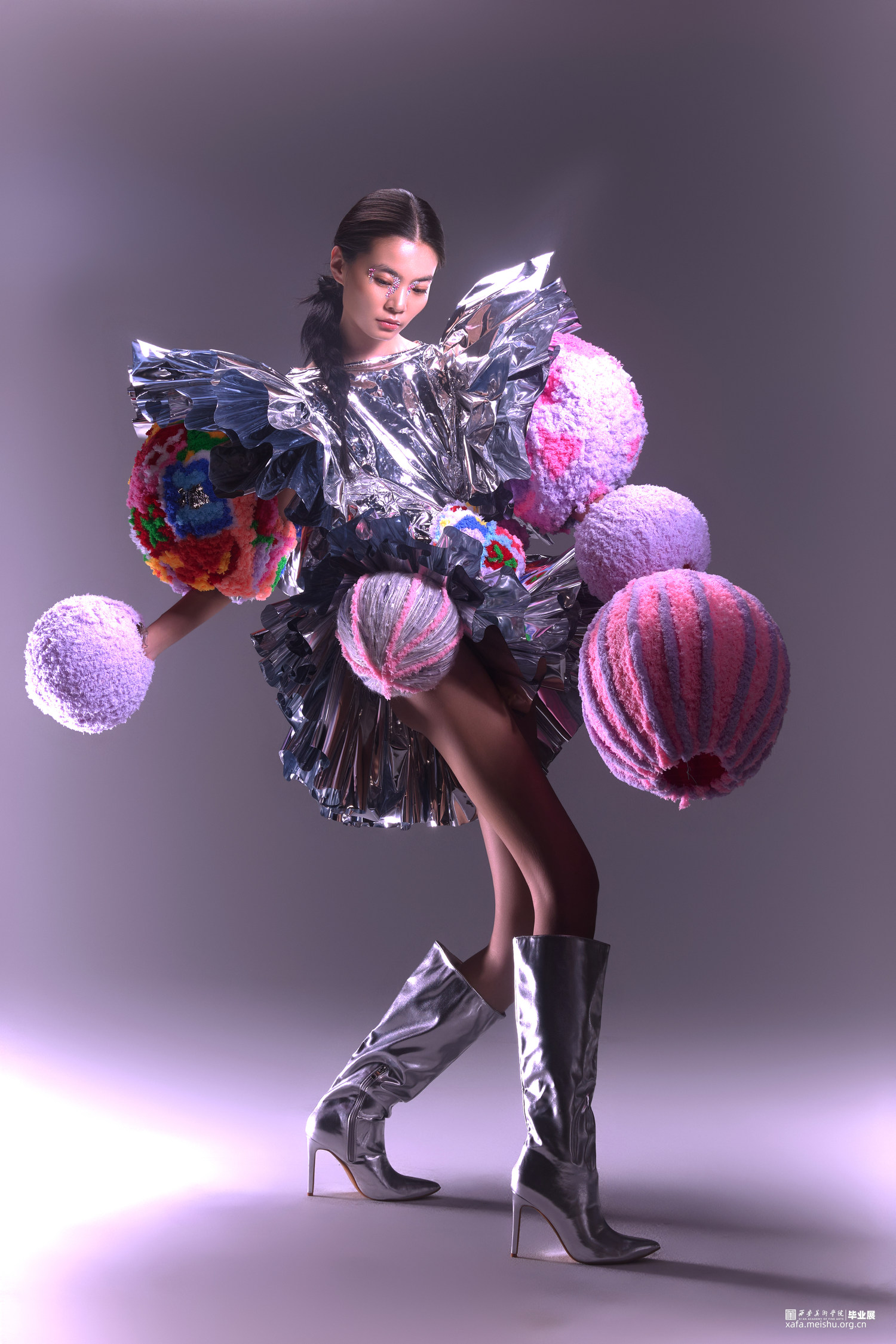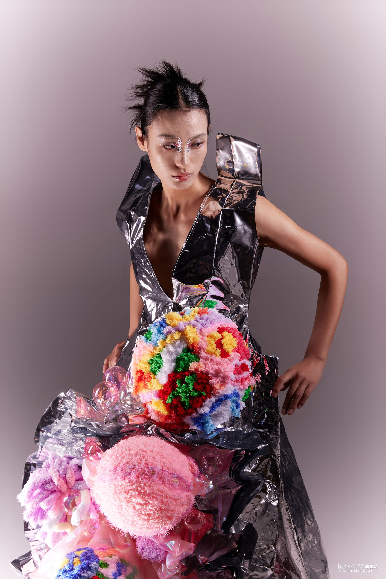 该作品以概念化的“膨胀”现象作具象化提取,用立体填充工艺作为主要表现方式,以填充改变服装廓形的形式来凸显出此种现象。