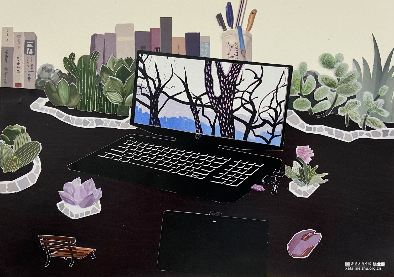 本作品运用了拼贴的手法将城市的元素融入家居,呈现疫情期间作者的居家生活方式。