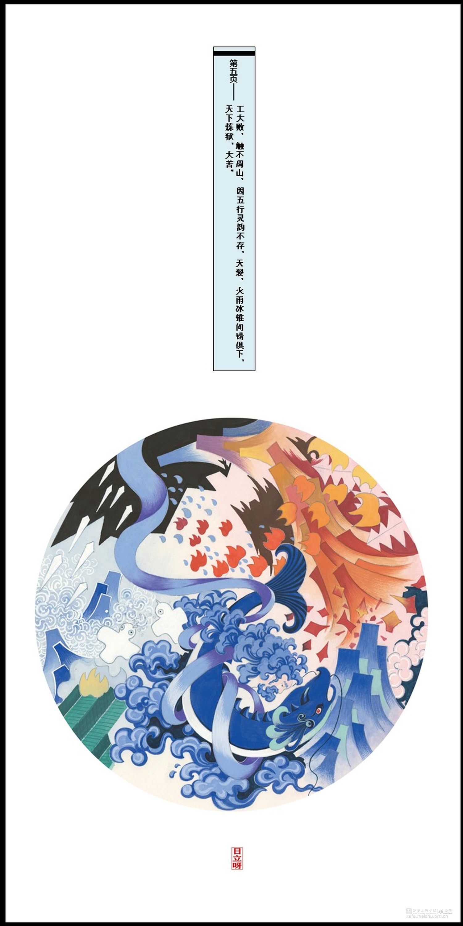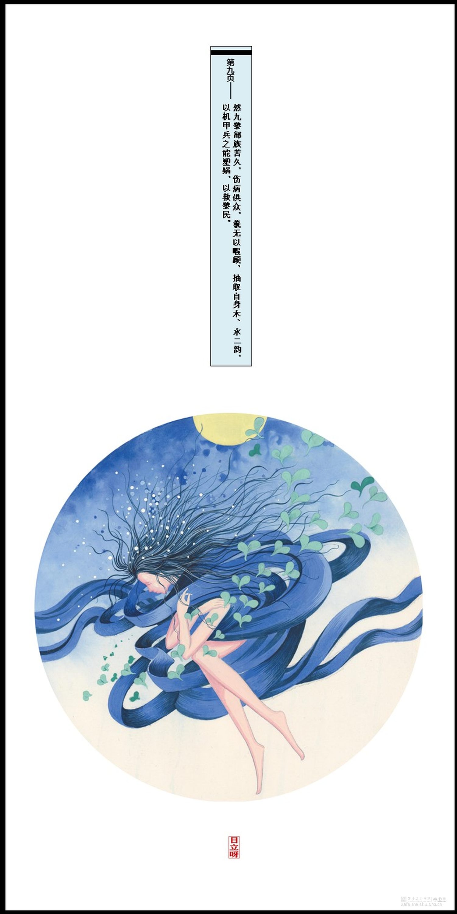本作品以传统手绘为创作手法,以中国古典神话女娲补天为创作蓝本,重构出一曲为天下安而勇于牺牲自我的大爱之歌。