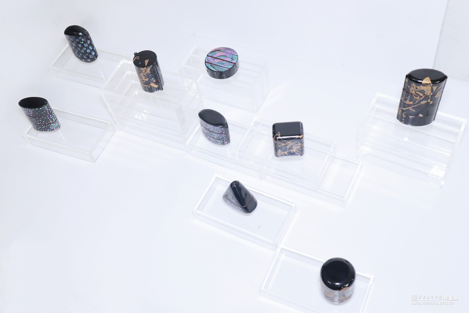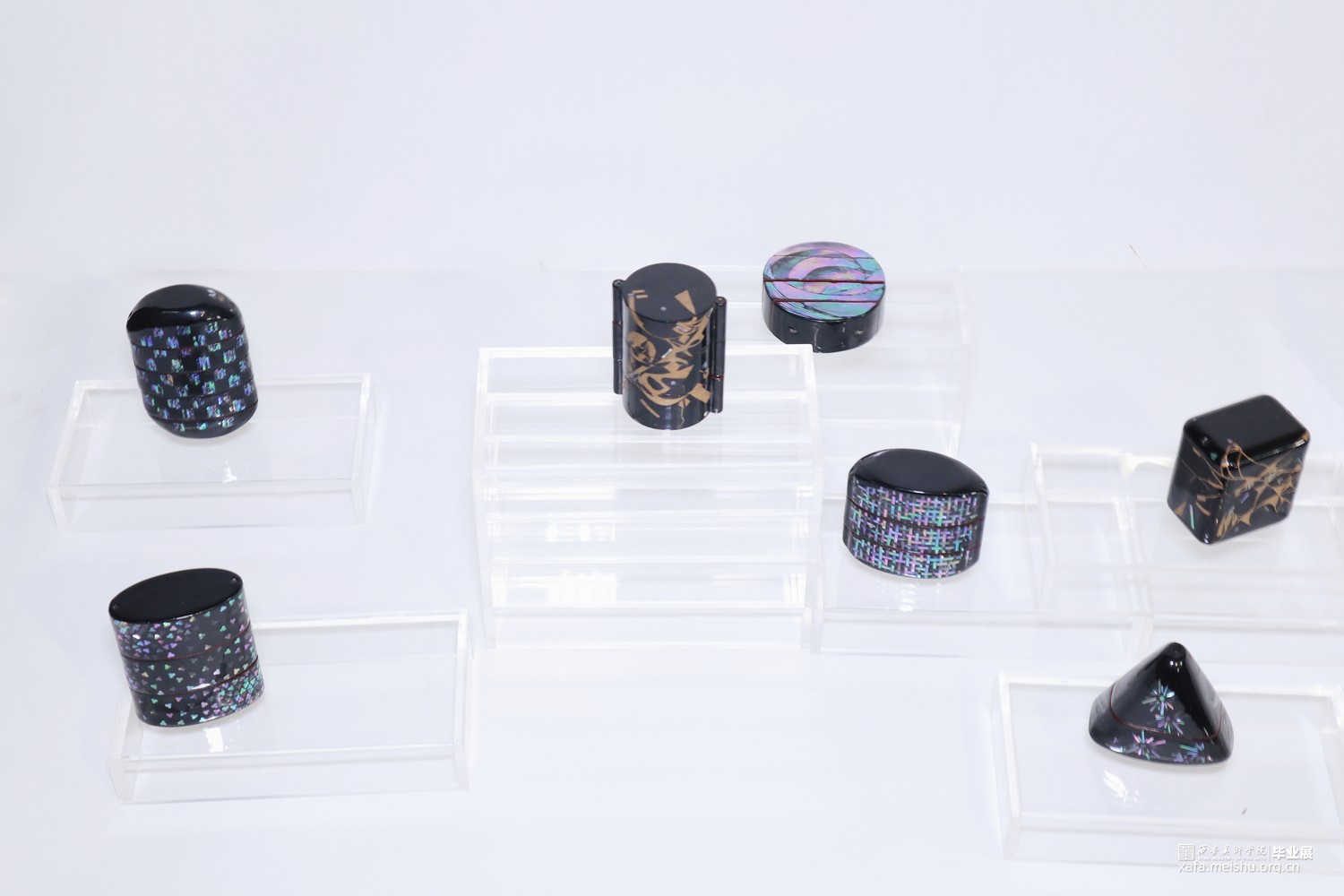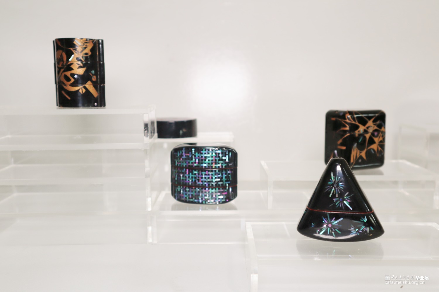 印笼是一种小型盒式漆器,最初来源于中国,并在明清时期被传入日本。盒身分成几格,内盛小型印章、药片、药粉等。 作品云梦泽影结合了现代审美趋势和技术手段进行创新设计,表面波光粼粼的景象仿佛无数颗宝石在水面上闪耀,给人一种宁静、和谐的感觉,其深沉、幽静的特质暗示着一种超越现实的境界,让人向往而又难以触及。在现代,可以通过无界的材料、工艺和设计理念,对印笼进行融合与创新,使其更加符合现代人的审美需求,为非遗手工艺的传承与发展提供更多的可能性。