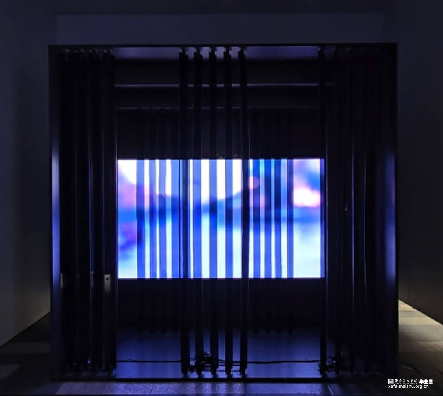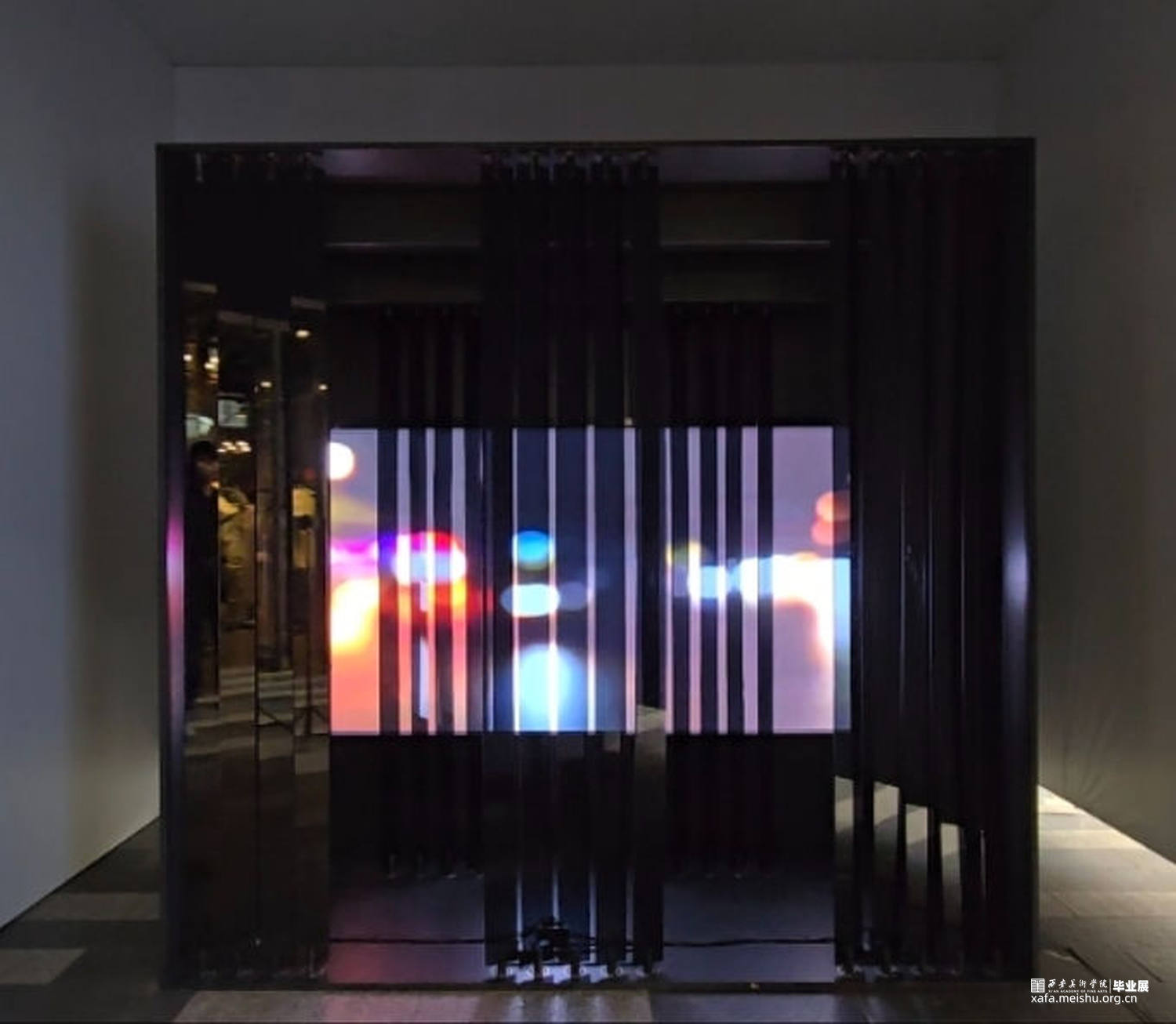 从自身的高度近视视角出发,用日常生活片段的影像,来展现出一天内近视视线中的各种不同场景;同时使用镜面半透分割线以动态的方式再次分解和深化这些画面。作者希望以这样一种综合媒介呈现的方式来表达我作为高度近视者所看到的以及真实感受到的困扰。