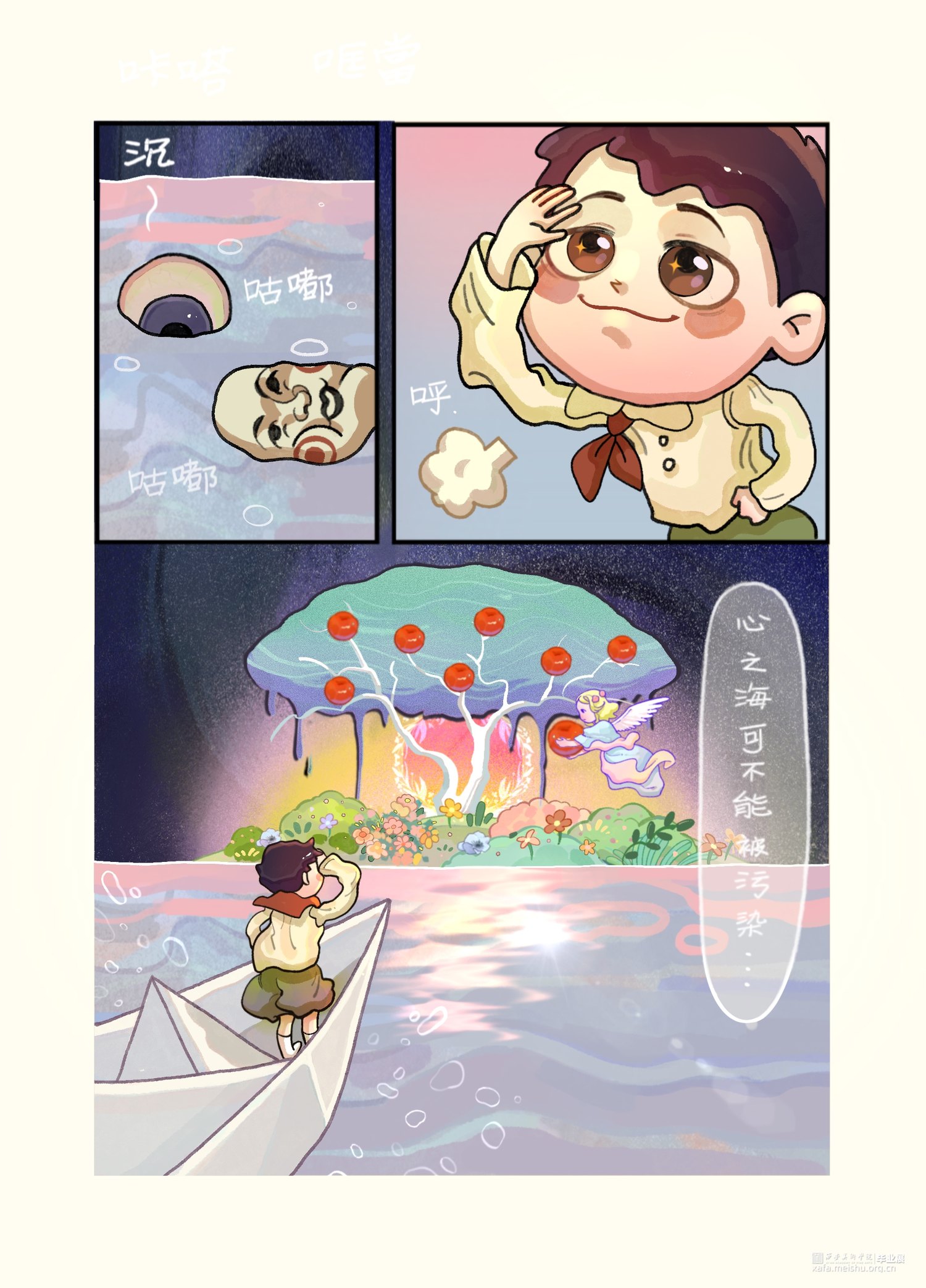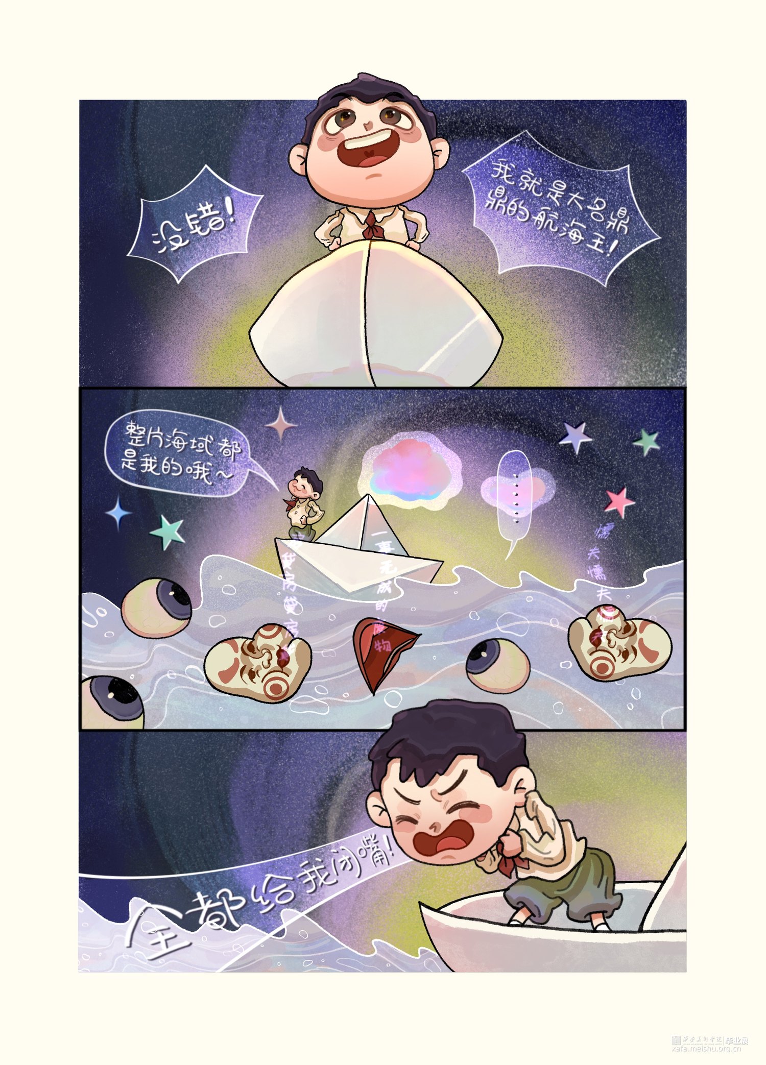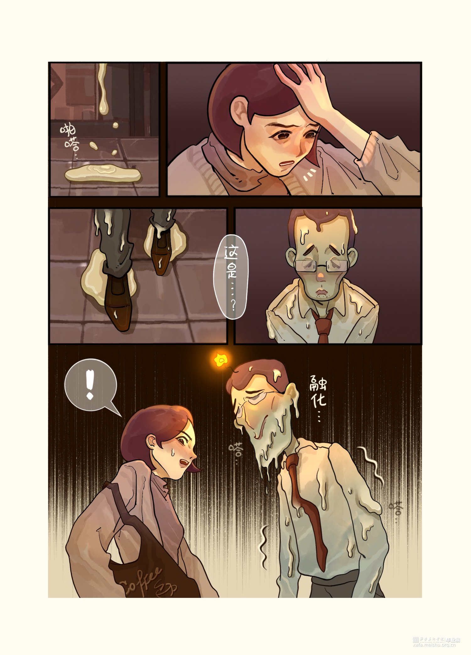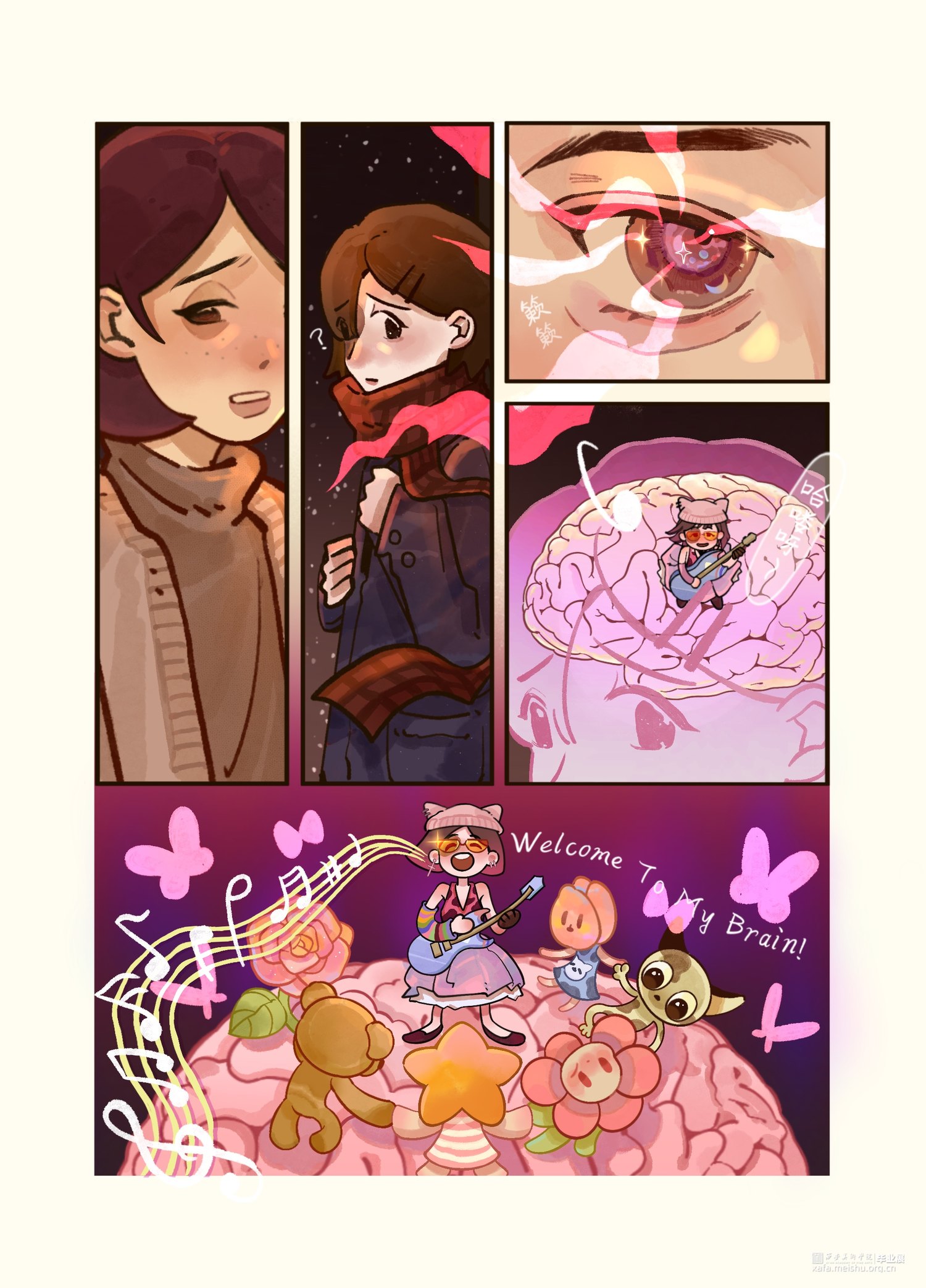 回过神来,主人公不可置信的愣住了,少女已经走远,看着她单薄的背影主人公久久不能回神,是幻觉吗?这时,又一个憔悴的大叔夹着公文包垂头丧气的路过,这引起了主人公的注意,为了验证自己刚刚的不是幻想,主人公望向他,一样的眩晕感,大叔的身体如同蜡烛一样融化,融化开裂的躯壳中冲出来一个小人,原来是大叔小孩时期的模样,主人公又一次进入了别人的脑内世界,她看到大叔变成了小孩时候的模样,踏上了环游世界的轮船,原来大叔的梦想是成为航海王,真是幼稚又可爱;