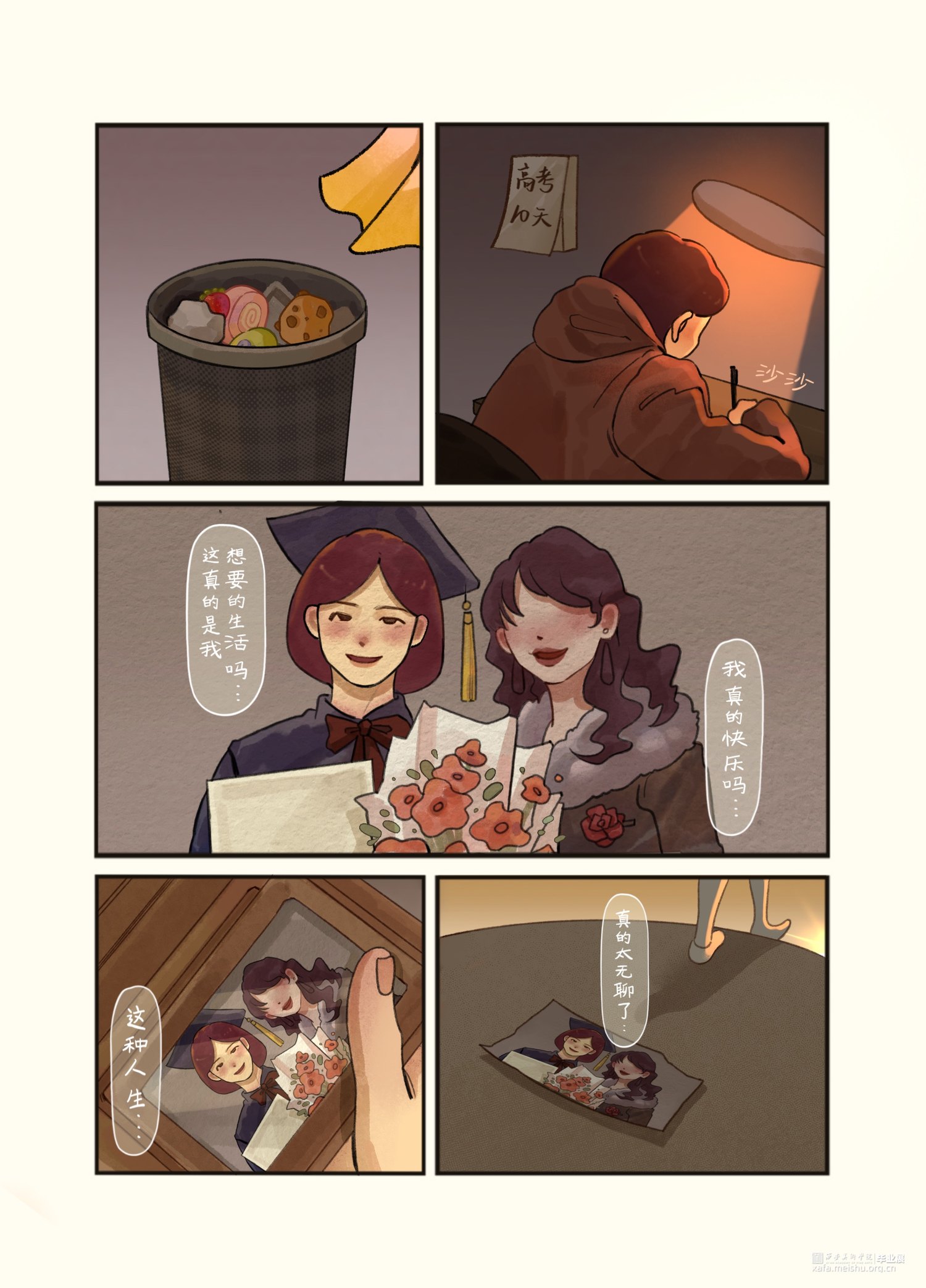 看着这么多人心中都拥有着属于自己的梦想和追求却一直迫于现实的压力之下没有付出行动去实现,主人公不禁感到心痛,她突然就想起了小时候,小小的人举着举着自己亲手做的小蛋糕像母亲炫耀时眼睛闪闪发光的样子,好像心里突然就有了什么目标,生活可能也没有自己想象的那般无趣,或许自己可以试试,试试趁着有限的时间做点自己想做的事情...