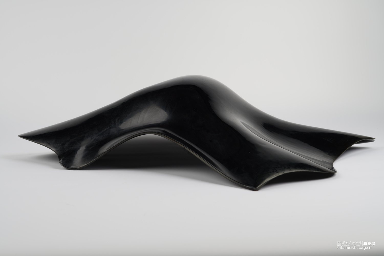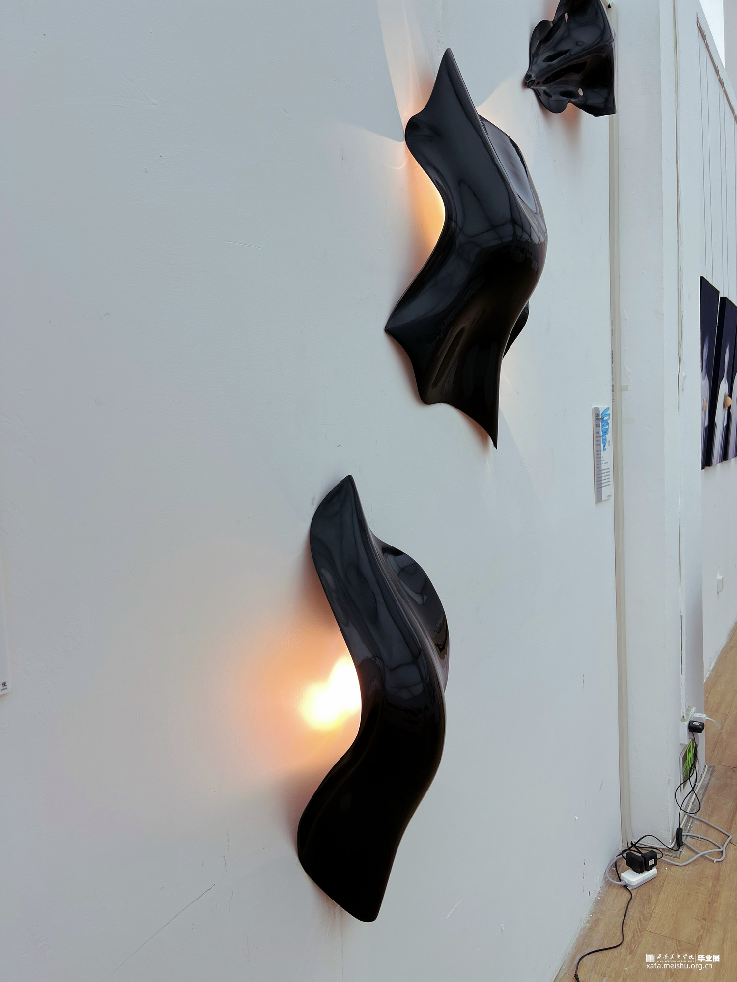 《浮游》是一件以漆立体形式呈现的作品,整体为黑色,边缘处透出光芒。让作品看起来轻盈而神秘,黑色的深邃与透出的光芒形成了强烈的对比,给人一种安抚与希望并存的感觉。作品的整体构思灵感源自于大自然中飘游的感觉,仿佛在无边的宇宙中自由飞翔,流连于梦幻的光影之中。展现了一种超越现实的美学体验,引导观者在欣赏中感受自由与想象的力量,探索生命与宇宙间的奥秘。