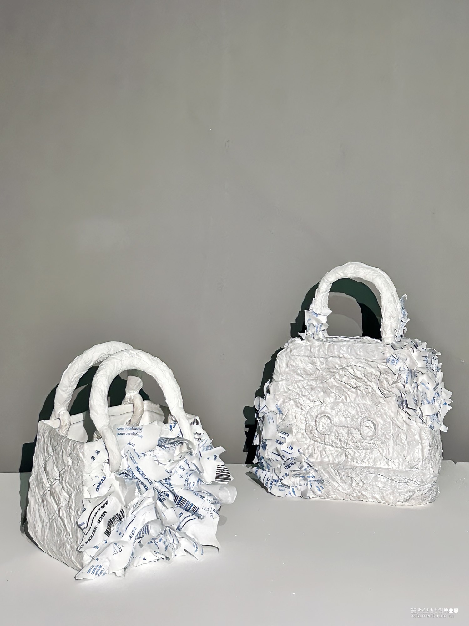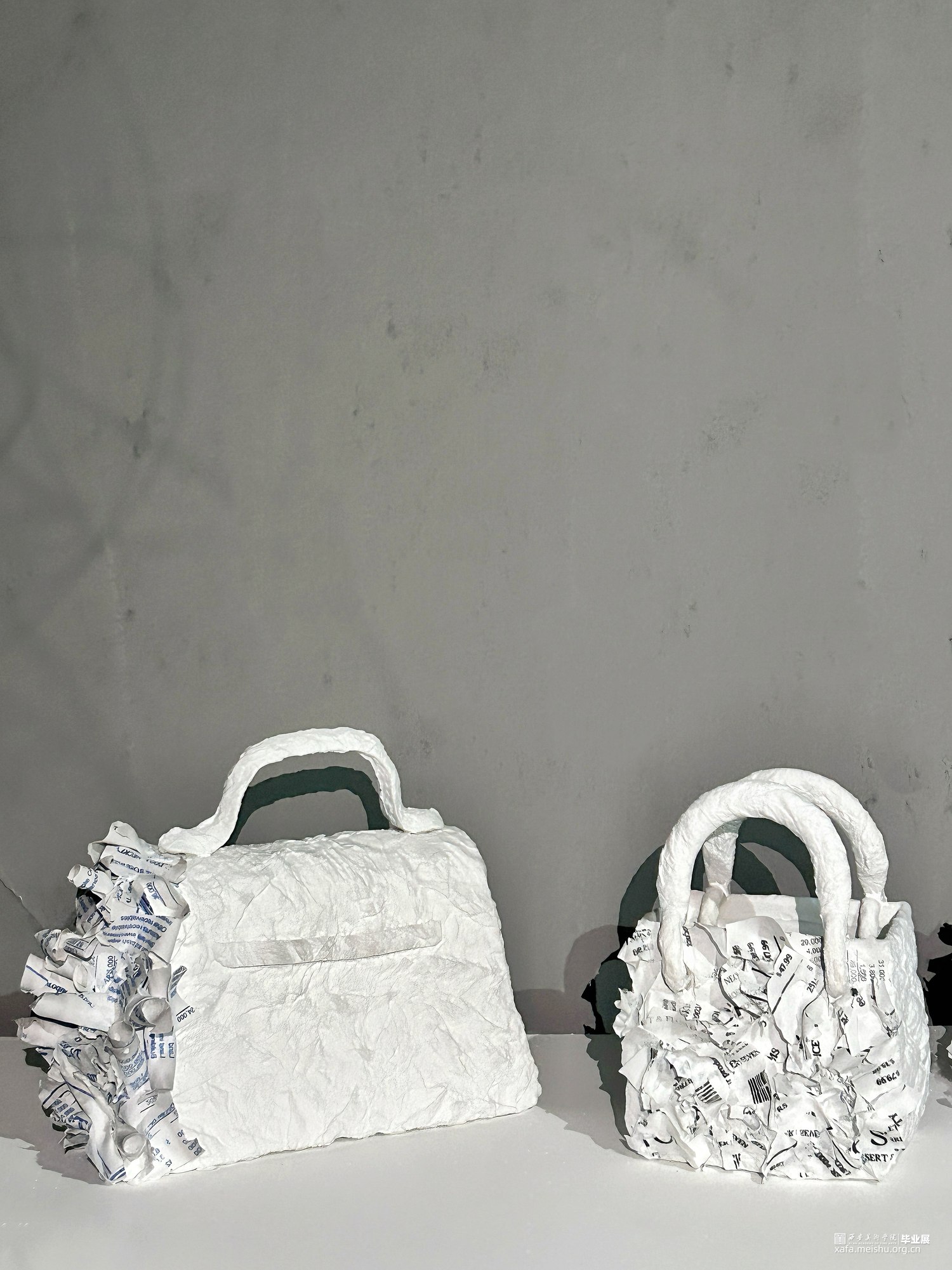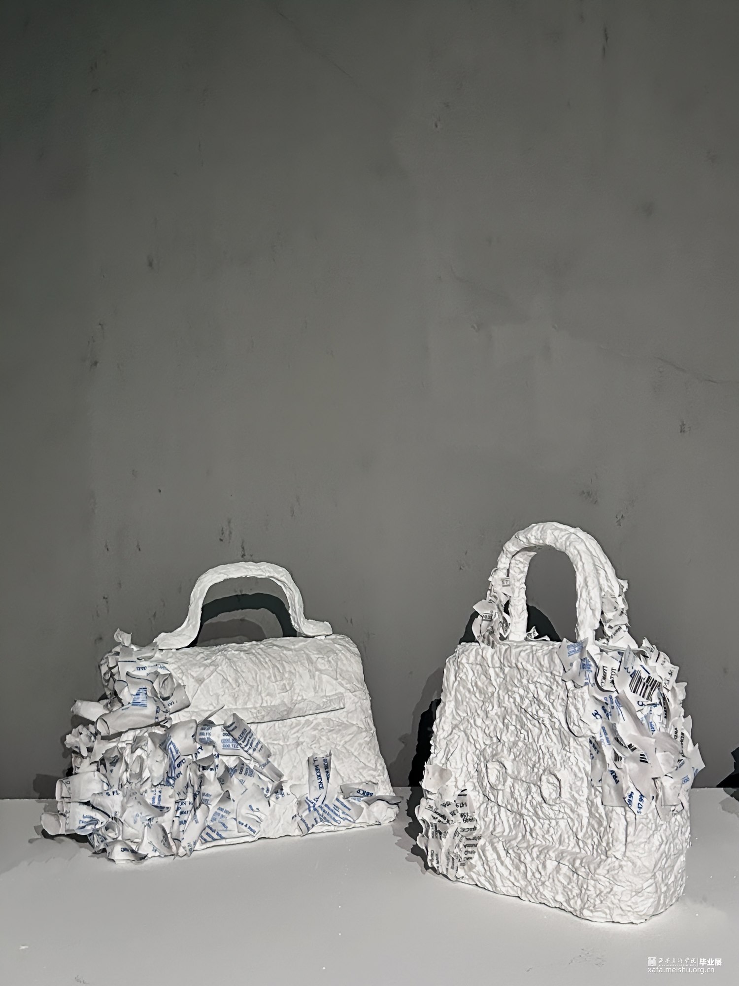 其次,作品的结构设计中包含了多个层次,每个层次都代表了消费主义社会中的不同方面。底层使用粗糙未经修饰的账单。上层展示了陶瓷消费奢侈品,这些都是过度消费文化中常见的象征。象征消费者最终被自己的物欲所困。