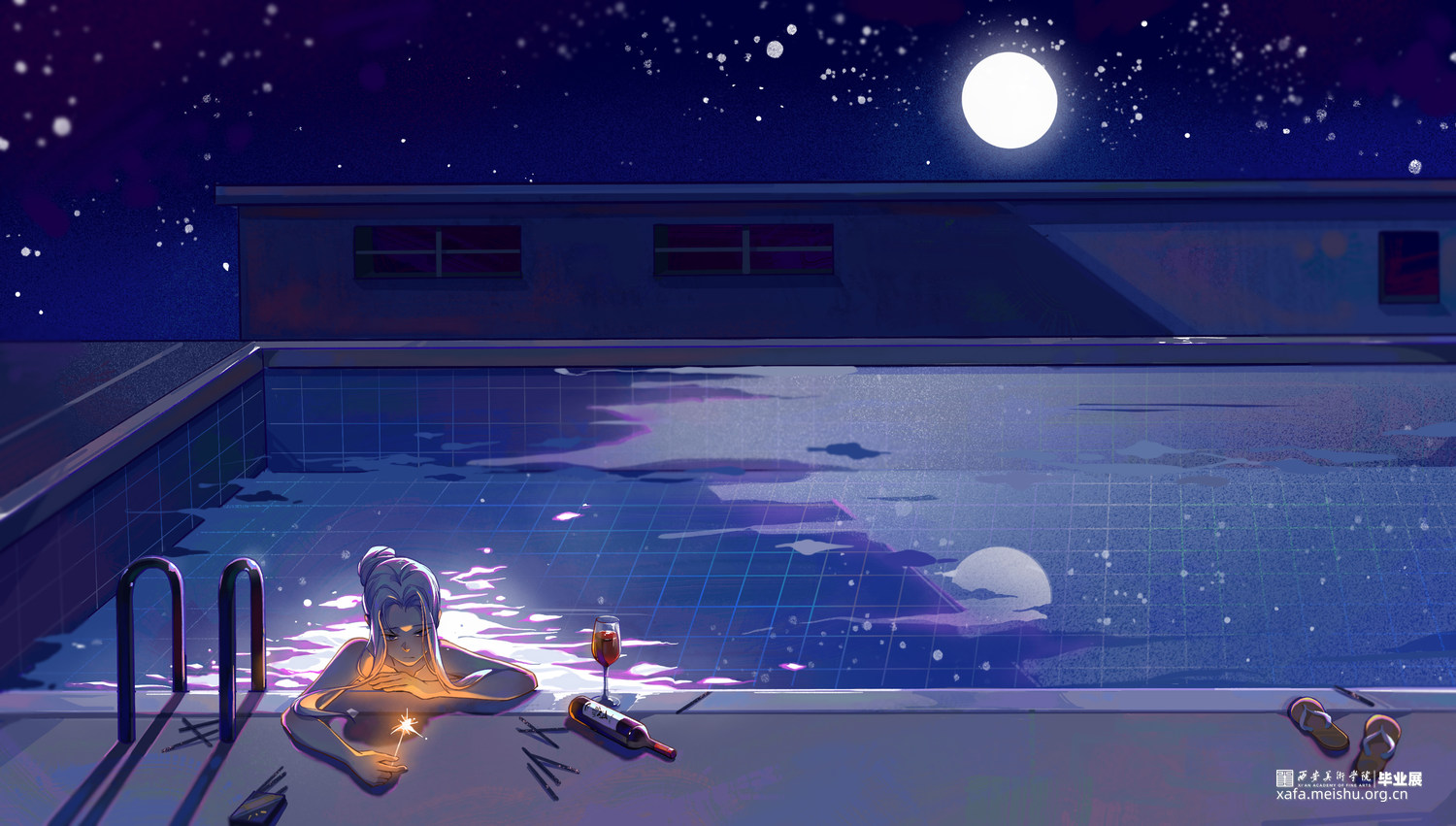 树荫、海水、强烈的光线…夏天热烈又浪漫的特征吸引着我,虽然给人的整体的印象是张扬的,但我表达的情绪却可以是沉静的,想要描绘出属于这个季节的一些片段。我以“寂静”和“夏日”作为两个关键词发散,联想到了夏日的午后、黄昏、傍晚、午夜,各类不同身份的人群身处各自的场所与环境中,也会有不同种“寂静”的内心状态:明媚阳光里的轻松惬意、柔和安定,独处时的平静茫然,告别前的忧伤,深思或抉择时的镇静,身处陌生环境、不合群的孤独,或是不被理解、被抛弃、怀疑的失落与疲惫,被空虚淹没的焦躁内心……夏日是主要背景,而寂静的不止环境,也可以指我们的内心,不论平和还是低落。