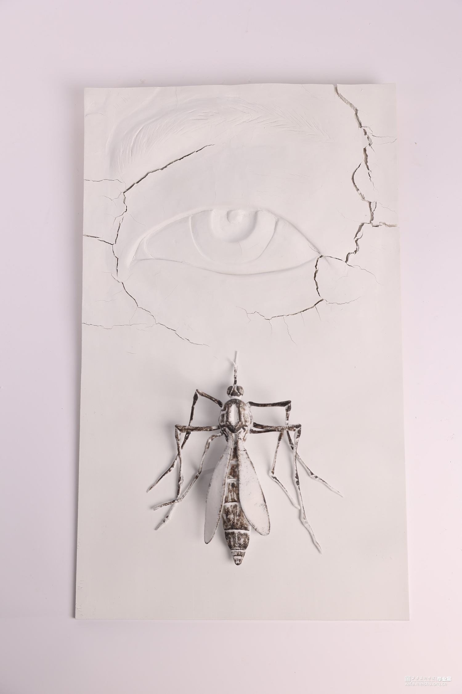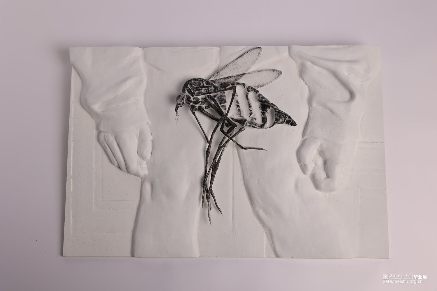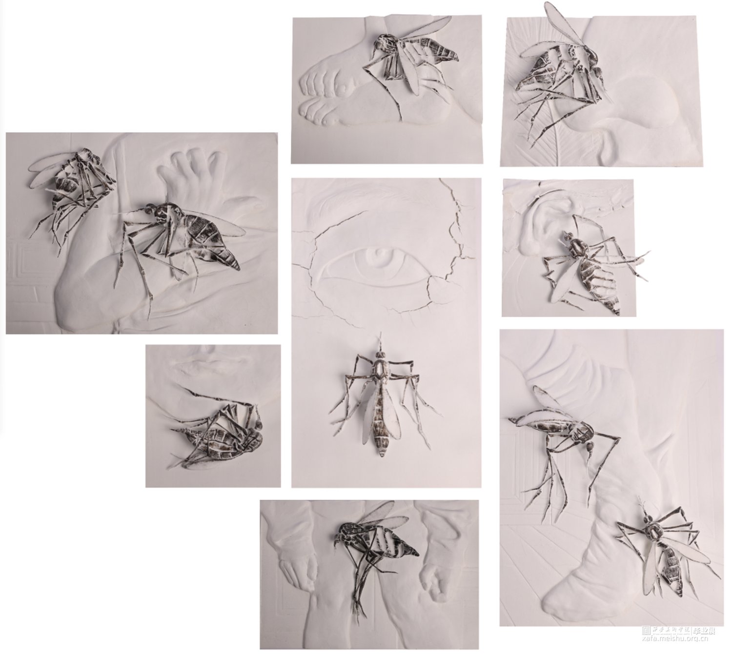 在人类视角下,蚊子通常被视作有害生物,看见就会条件反射的产生拍死它的冲动。我尝试从蚊子的视角出发,用陶泥制作它们并将其拍扁,展示其与人类之间的相互作用。整个过程我既像一位造物者,又是一个破坏者。就蚊子而言,我是食物,亦是坟墓。