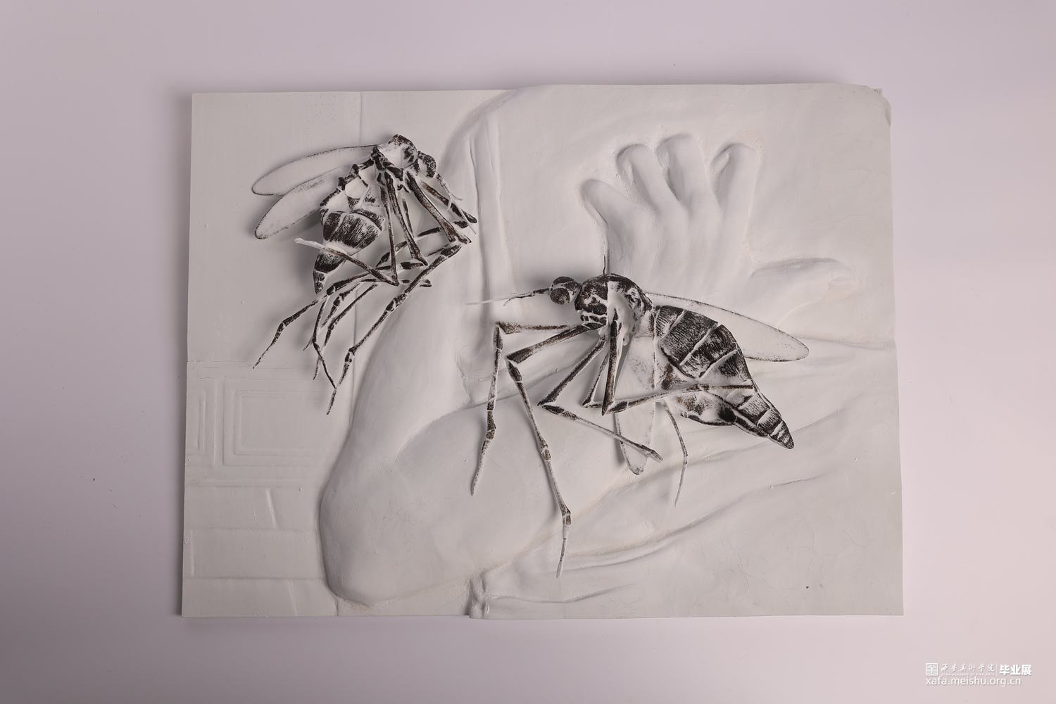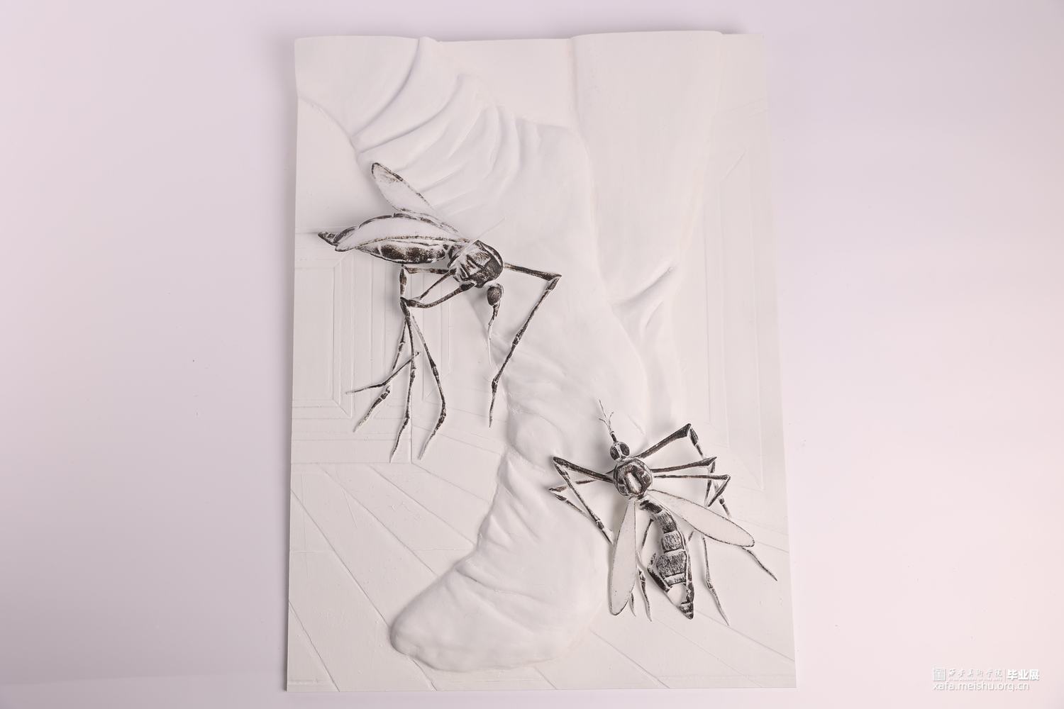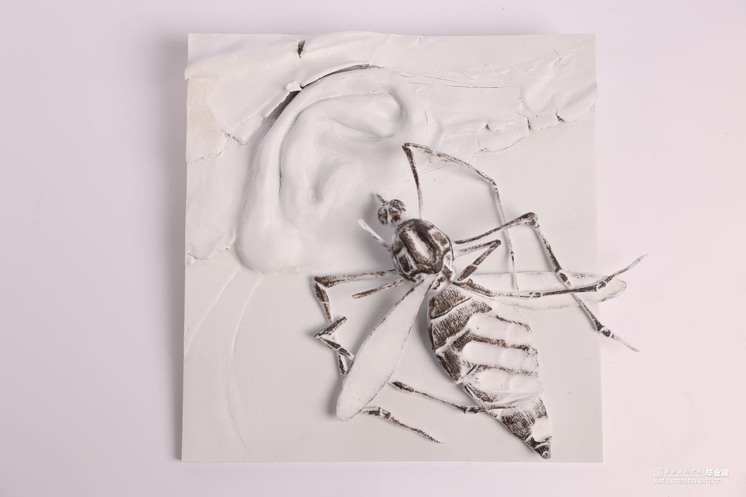在人类视角下,蚊子通常被视作有害生物,看见就会条件反射的产生拍死它的冲动。我尝试从蚊子的视角出发,用陶泥制作它们并将其拍扁,展示其与人类之间的相互作用。整个过程我既像一位造物者,又是一个破坏者。就蚊子而言,我是食物,亦是坟墓。