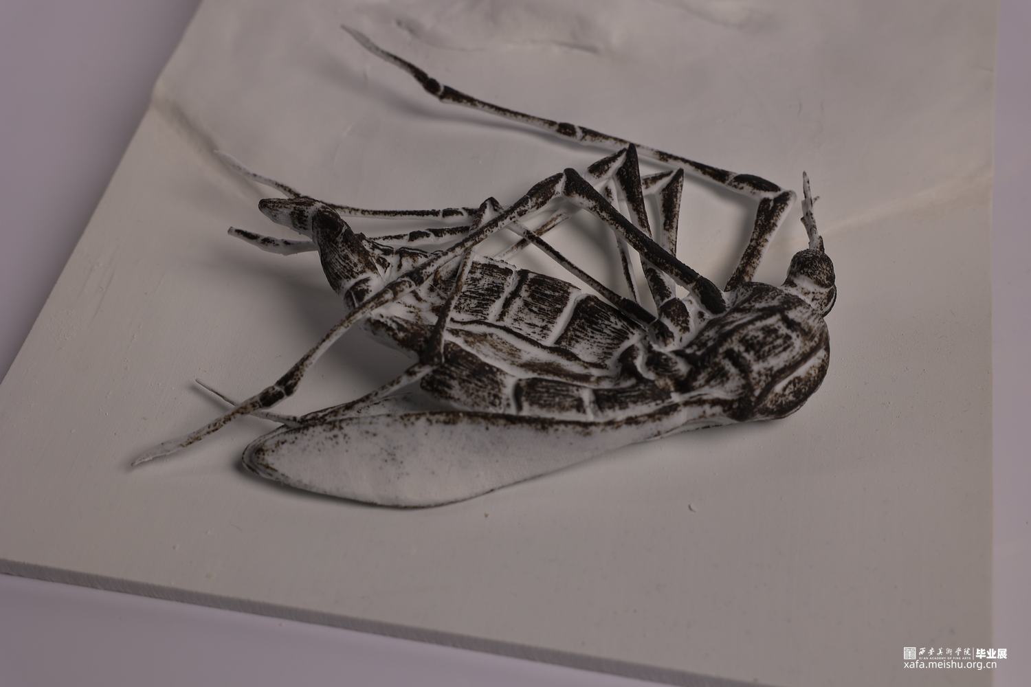 陶瓷材料在物质形态上接近永恒,但却极为易碎,试图用这种永恒的材料去定格一些转瞬即逝的事物,比如生命短暂的夏虫。