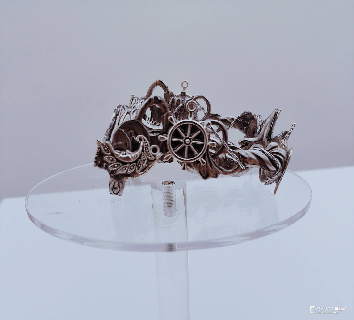 作品在Lorgnette的基础框架上传递中西方装饰纹样的韵律。其设计融合了中国的蛇纹、徽派建筑立体装饰和西方的蛇纹、蒸汽朋克帆船等元素。传统的装饰艺术与现代的制作工艺相结合。在设计过程中,作者深受音乐剧《莫扎特!》中的经典歌词启发——"Wie wird man seinen Schatten los? Wie wird man Herr über sich selbst?" (如何才能摆脱自己的影子?如何才能成为自己的主人?)每个人都在追寻自我和自由的过程中不断探索和融合。
