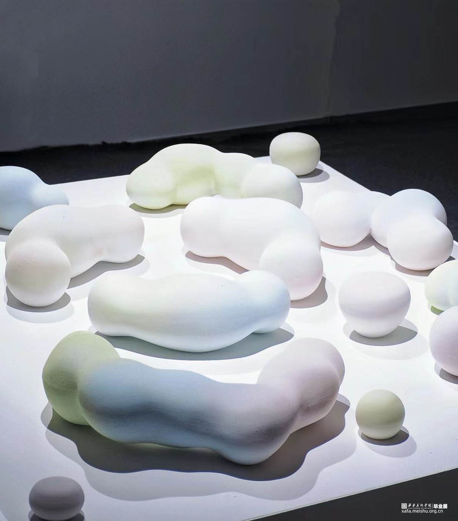 我希望我的作品可以治愈家庭关系中受到伤害的人们也能变得更加温柔与坚强。可以联想到蓝天、夕阳的光晕,渐变的极光,又或是童年的糖果,让人从繁重的世俗中脱离出来,感受一种澄澈的空明,又或一场甜蜜的幻梦。