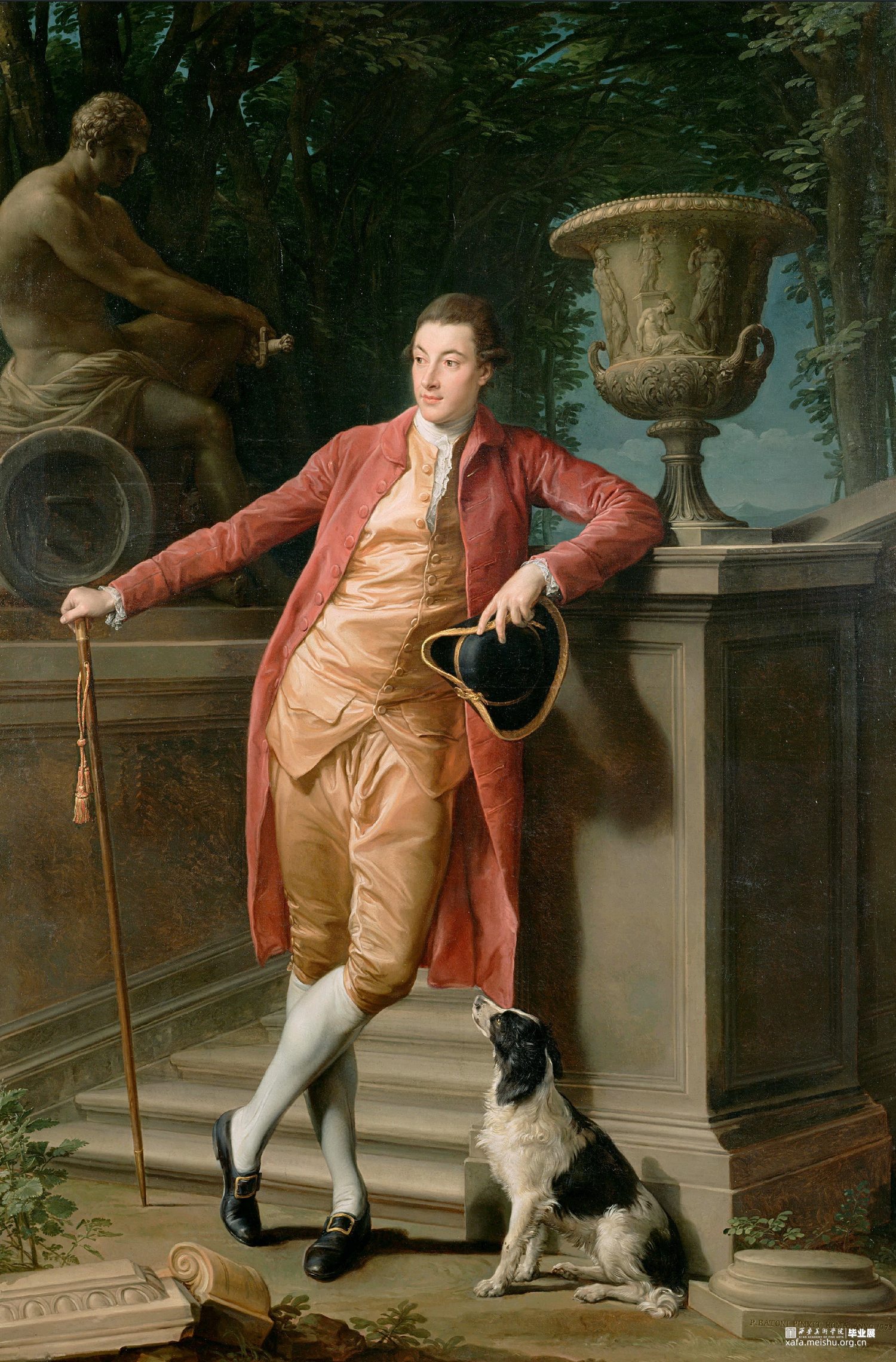 蓬皮奥·巴托尼(Pompeo Batoni,1708-1787)是意大利著名画家,被称为是十八世纪罗马的“画家王子”。巴托尼的绘画注重细节,色彩明丽,在古典的风格中透露着现实的美。他把绘画技艺带进了一个新的领域,是意大利艺术史上最伟大的画家之一。同时,十八世纪是壮游的时代,英国贵族在导师的陪伴下前往欧洲大陆游历学习,最终完成绅士教育。巴托尼则是英国壮游文化中的重要人物。十八世纪中叶,巴托尼在壮游中以欧洲贵族肖像画而闻名,为英格兰、爱尔兰等贵族绘制肖像画近两百幅。巴托尼的作品充满“个人的文化”,深受上层社会的青睐,英国贵族们在游览罗马时,都特意前往巴托尼工作室,请巴托尼为其私人订制一幅肖像画,作为他们壮游行程中不可缺少的纪念品。