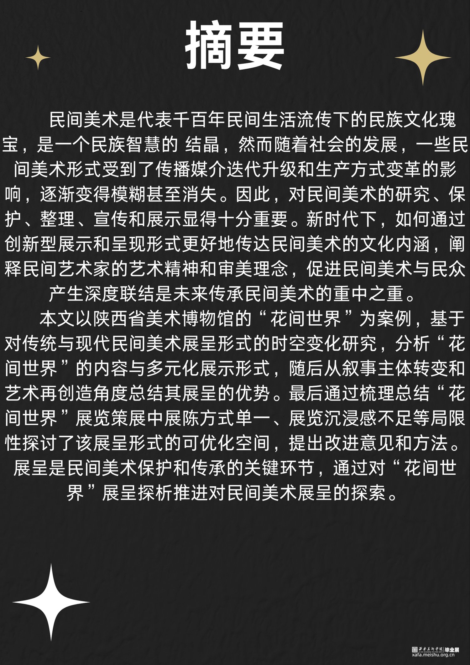 本文以陕西省美术博物馆的“花间世界”为案例,基于对传统与现代民间美术展呈形式的时空变化研究,分析“花间世界”的内容与多元化展示形式,随后从叙事主体转变和艺术再创造角度总结其展呈的优势。最后通过梳理总结“花间世界”展览策展中展陈方式单一、展览沉浸感不足等局限性探讨了该展呈形式的可优化空间,提出改进意见和方法。展呈是民间美术保护和传承的关键环节,通过对“花间世界”展呈探析推进对民间美术展呈的探索。