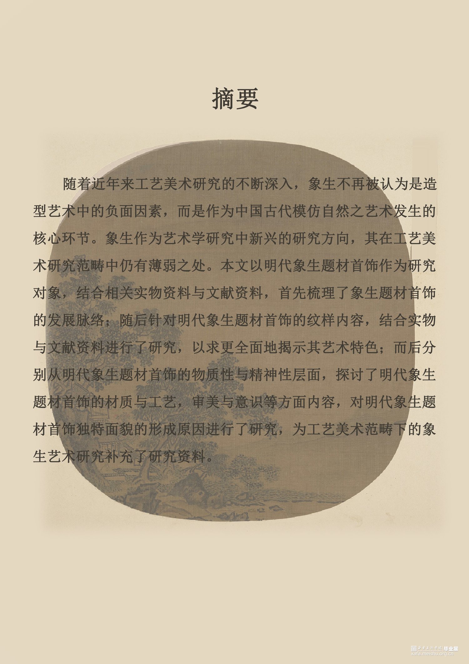 象生艺术发源于原始社会中的祭祀行为,其艺术性来源于人造物与真实自然客观存在的差异。“象生”一词虽然于南朝才被确切提出,但象生意识早在原始社会的工艺品上就有体现,象生题材首饰也是早在周朝就有相关文物出土,之后随着审美文化的变迁展现出越发深化的装饰化风格。象生题材首饰在宋代开始吸收借鉴绘画作品中的视觉形象作为自身装饰题材,由此深深的被宋代文人画的“传神”内核所影响,最终在明代随着商业化社会的发展与工艺技术的完善达到自身发展的繁盛时期,最后随着清代保守的审美文化进入程式化而丧失作为象生艺术生动的艺术性来源。