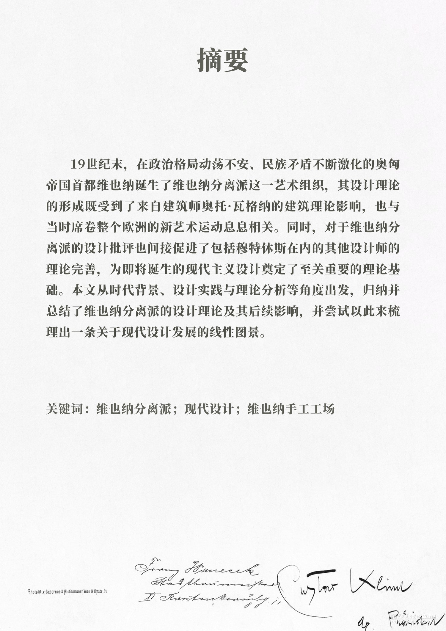 19世纪末,在政治格局动荡不安、民族矛盾不断激化的奥匈帝国首都维也纳诞生了维也纳分离派这一艺术组织,其设计理论的形成既受到了来自建筑师奥托·瓦格纳的建筑理论影响,也与当时席卷整个欧洲的新艺术运动息息相关。同时,对于维也纳分离派的设计批评也间接促进了包括穆特休斯在内的其他设计师的理论完善,为即将诞生的现代主义设计奠定了至关重要的理论基础。本文从时代背景、设计实践与理论分析等角度出发,归纳并总结了维也纳分离派的设计理论及其后续影响,并尝试以此来梳理出一条关于现代设计发展的线性图景。