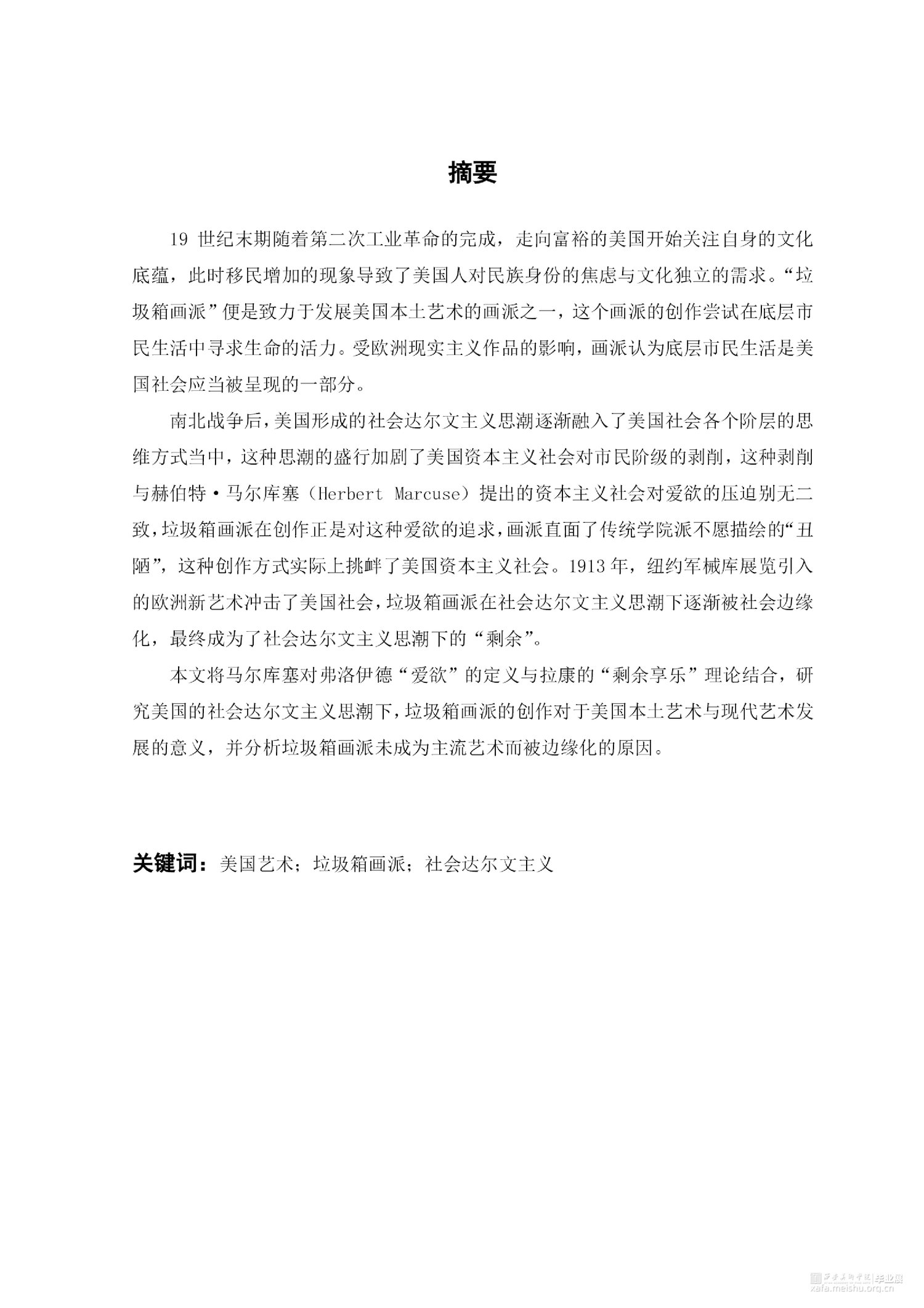 南北战争后,美国形成的社会达尔文主义思潮逐渐融入了美国社会各个阶层的思维方式当中,这种思潮的盛行加剧了美国资本主义社会对市民阶级的剥削,这种剥削与赫伯特·马尔库塞(Herbert Marc