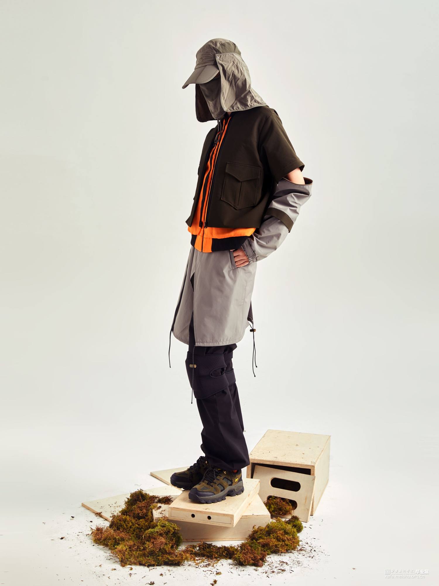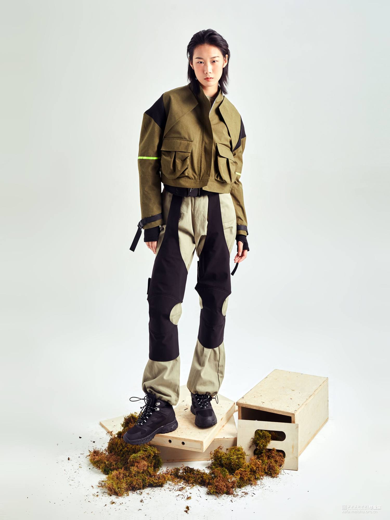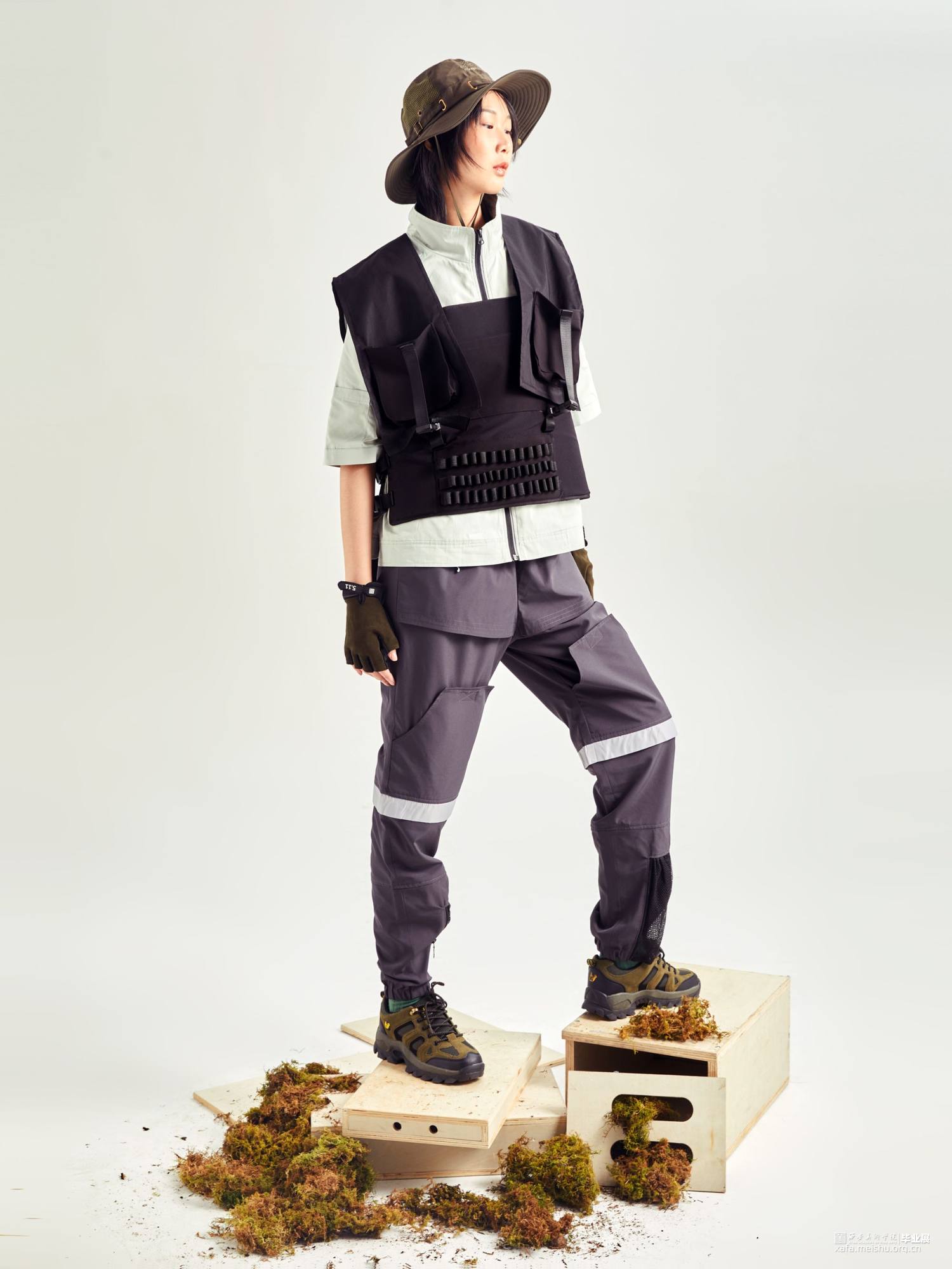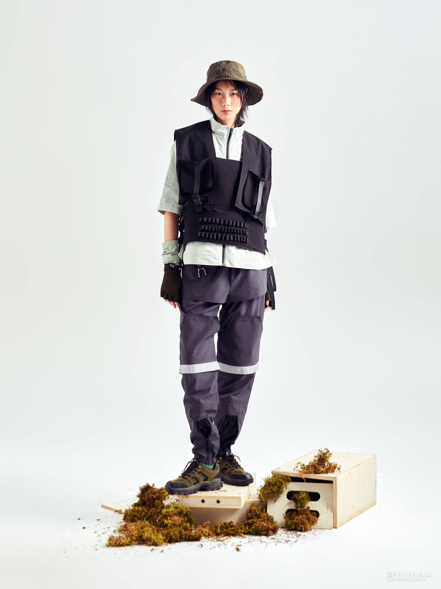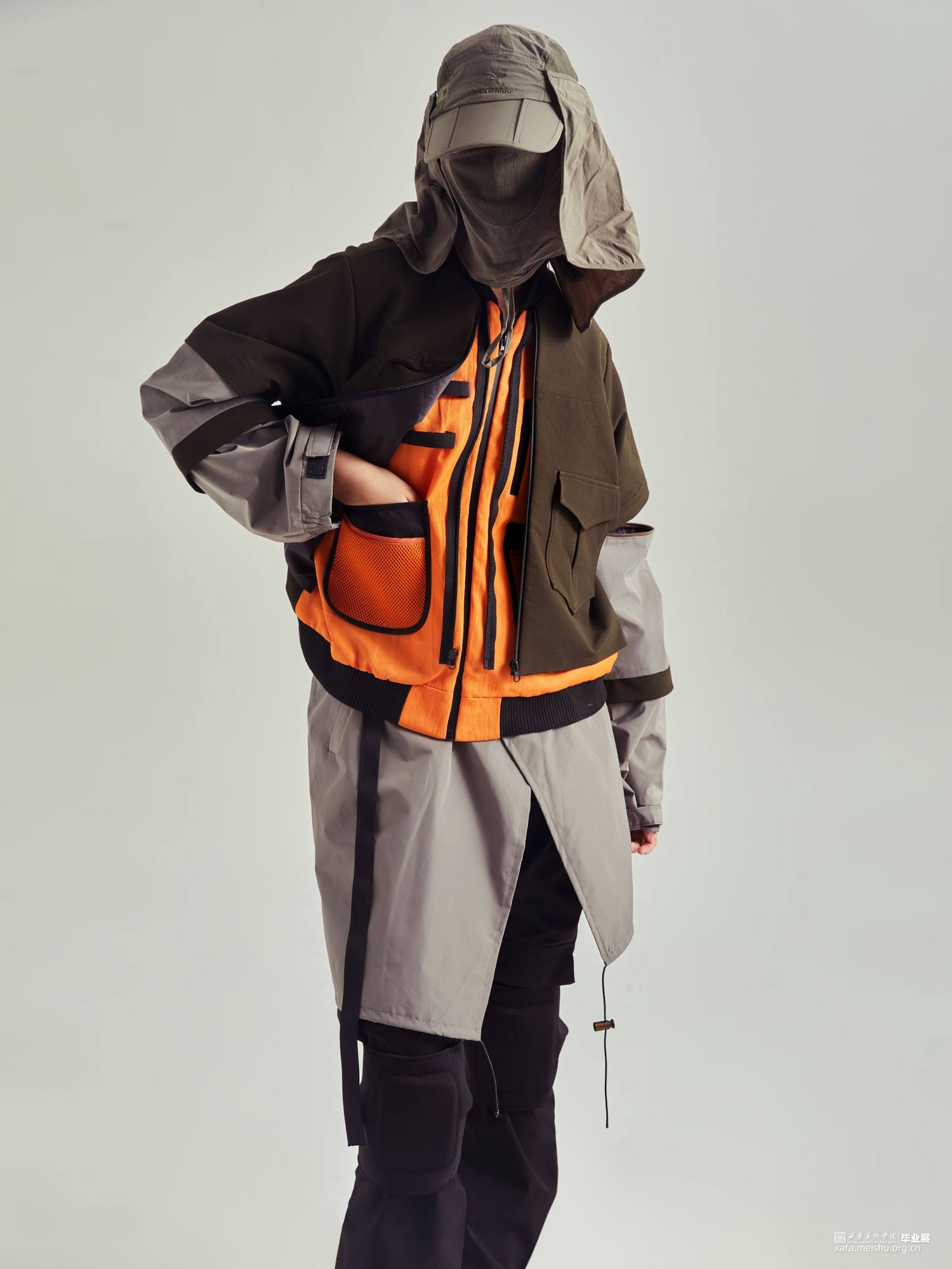 本系列的设计从户外运动服的设计角度出发,结合当下流行的城市户外活动,选取运动护具作为灵感元素进行发散。通过结合户外服装的机能特点与运动护具的防护元素,在服装一体上达到二者的平衡状态。在简单的剪裁上,多采用叠加设计,分段式设计作为设计手法。希望将户外风的机能感与运动的休闲感集合,呈现活力运动的自然健康风貌。
