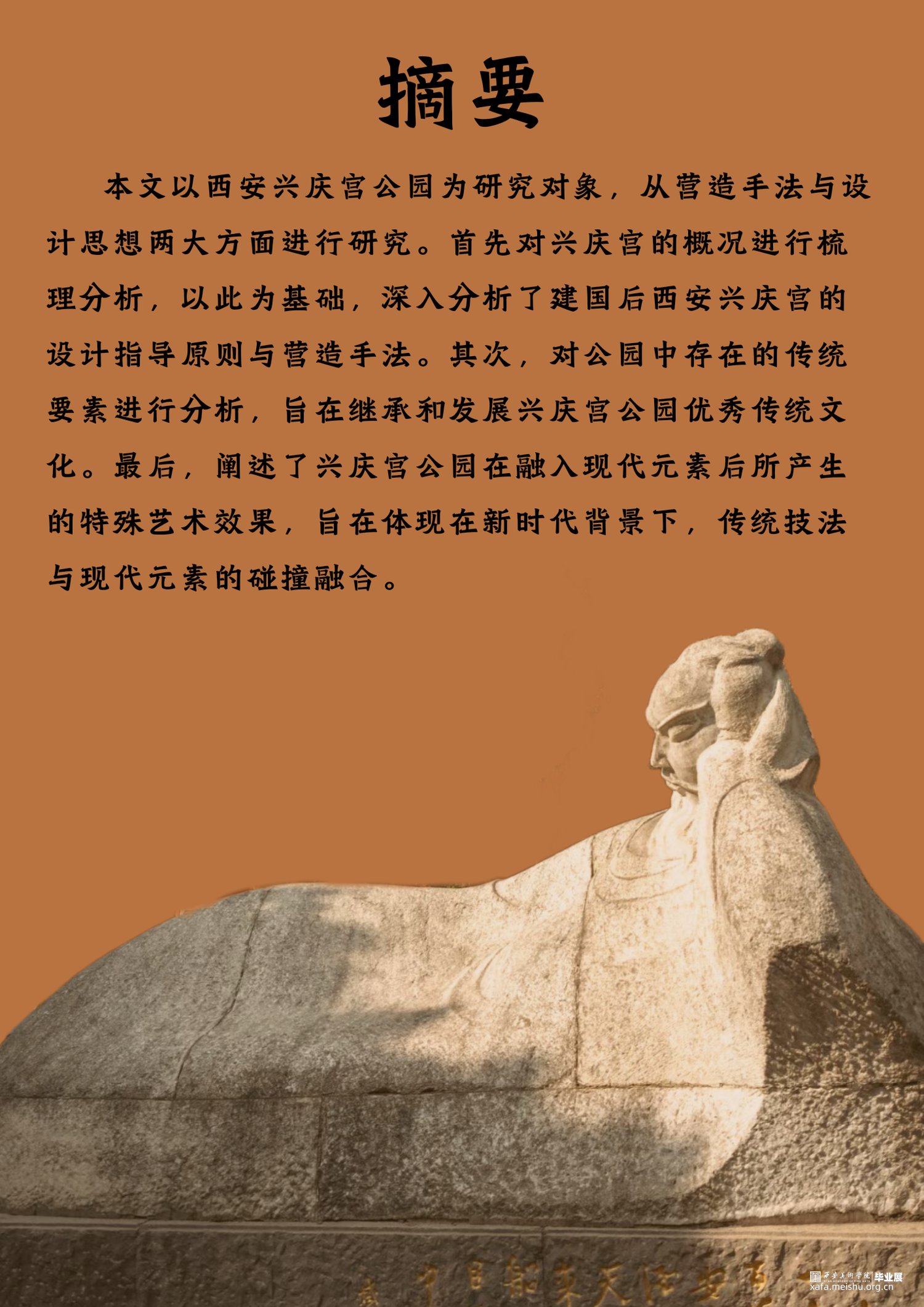 兴庆宫公园的营造手法与设计思想为其他历史文化园林的建设提供了有益的借鉴。未来的园林设计师们应当深入挖掘我国传统文化的精粹,透过对历史背景的认识和研究,融合古典园林建筑艺术与现代审美。这样,不仅能够创造出更多引人入胜的绿色空间,也能在这一过程中传承和发扬我国的园林艺术,让之成为永续传承的文化财富。在尊重自然和维护生态平衡的前提下,我们应积极探索创新的园林设计方法和理念,旨在促进园林与自然景观的和谐统一,并确保其可持续性,以期对中国园林事业做出积极和长远的贡献。