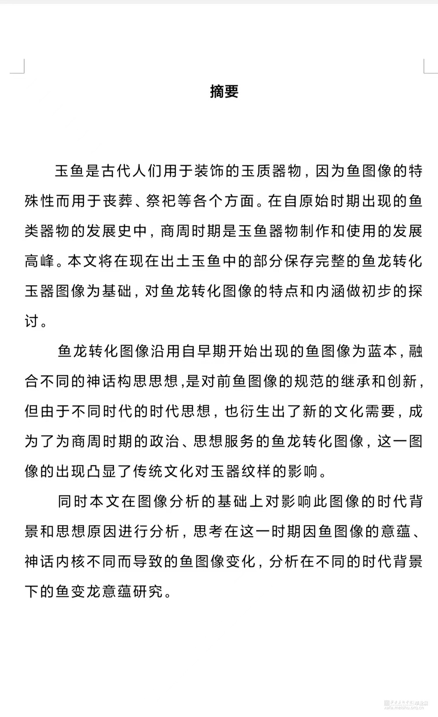 玉鱼是古代人们用于装饰的玉质器物,因为鱼图像的特殊性而用于丧葬、祭祀等各个方面。在自原始时期出现的鱼类器物的发展史中,商周时期是玉鱼器物制作和使用的发展高峰。本文将在现在出土玉鱼中的部分保存完整的鱼龙转化玉器图像为基础,对鱼龙转化图像的特点和内涵做初步的探讨。