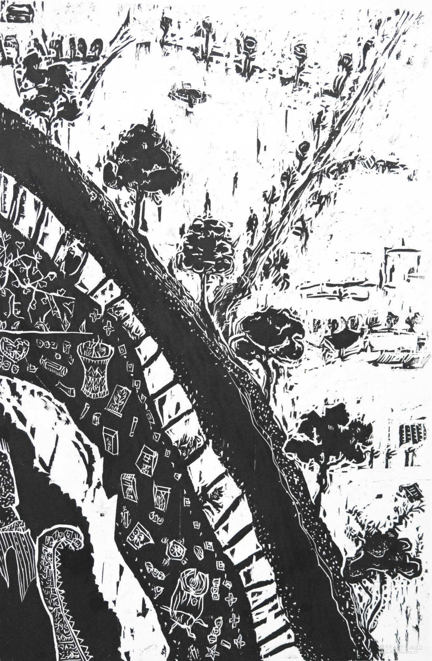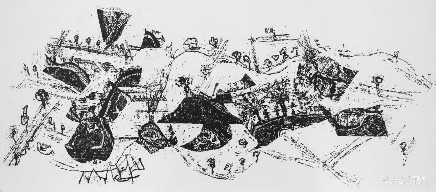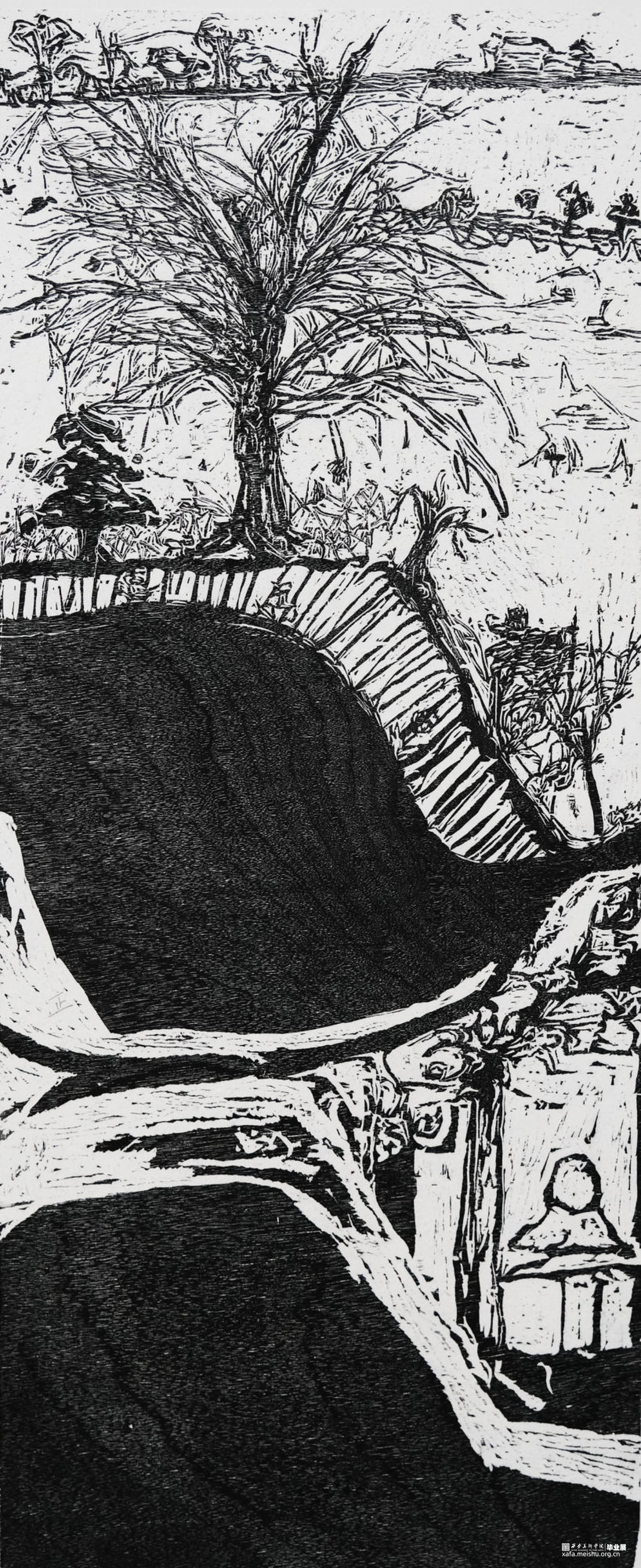 《家山快活的鸟兽鱼虫与我们》系列是一组黑白木刻作品,从作者家人的生活场景与作者的家乡提取灵感。作者的家乡在黄河滩小渔村——辛村,那里常常飞鸟翱翔,鱼池里鸭鹭成群,成片的芦苇荡茂密生长,时不时能看到放牧的老人和田野果树下的农民,田园气息浓郁,人们在这里仿佛进入了世外桃源,令人安逸舒适。静谧与自由是我想表达的主题,我想带观者走入一个祥和恬静的世界,对于我来说,我的家乡我的家人就是我汲取爱的来源,所以我选择了这里,希望能实现我的想法。