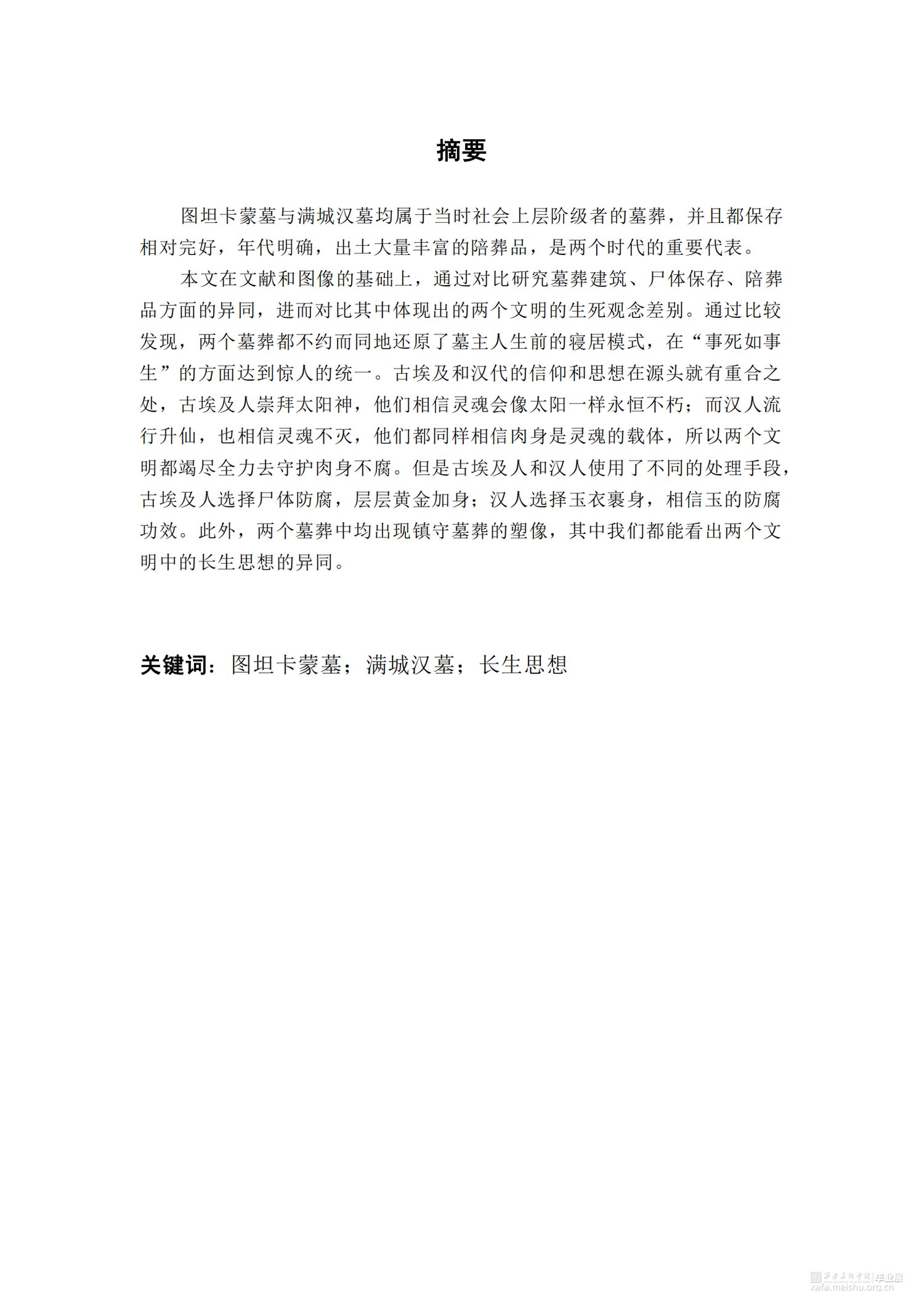 图坦卡蒙墓和满城汉墓在古埃及和汉代都是保存完整、出土数量种类众多的陪葬物品、功能布局清晰、用有完备祭祀体系的贵族墓葬,两个墓葬都具有高度的考古研究和艺术文化价值。