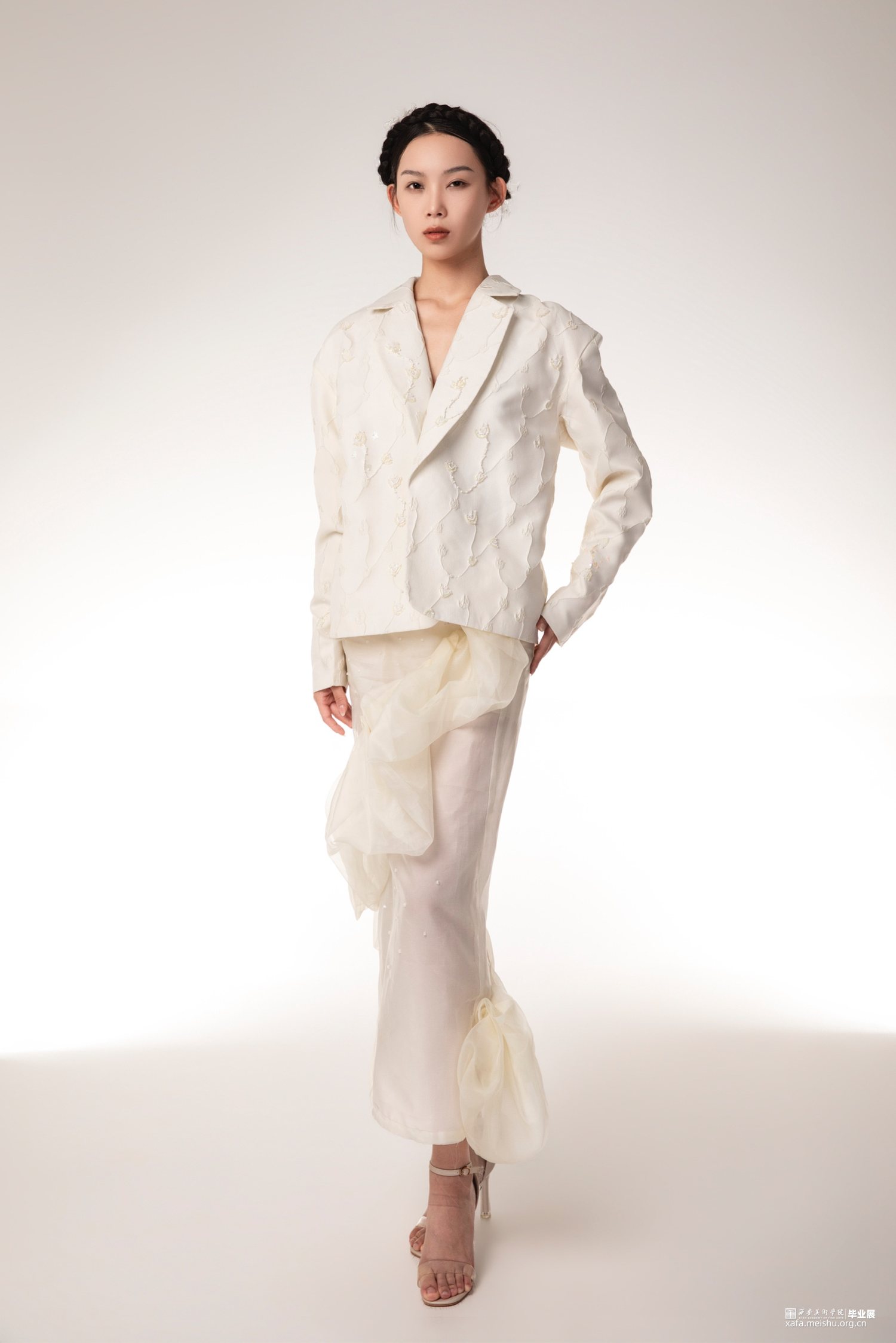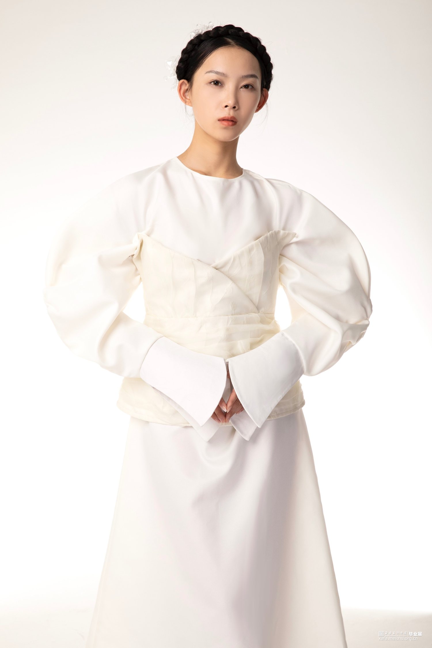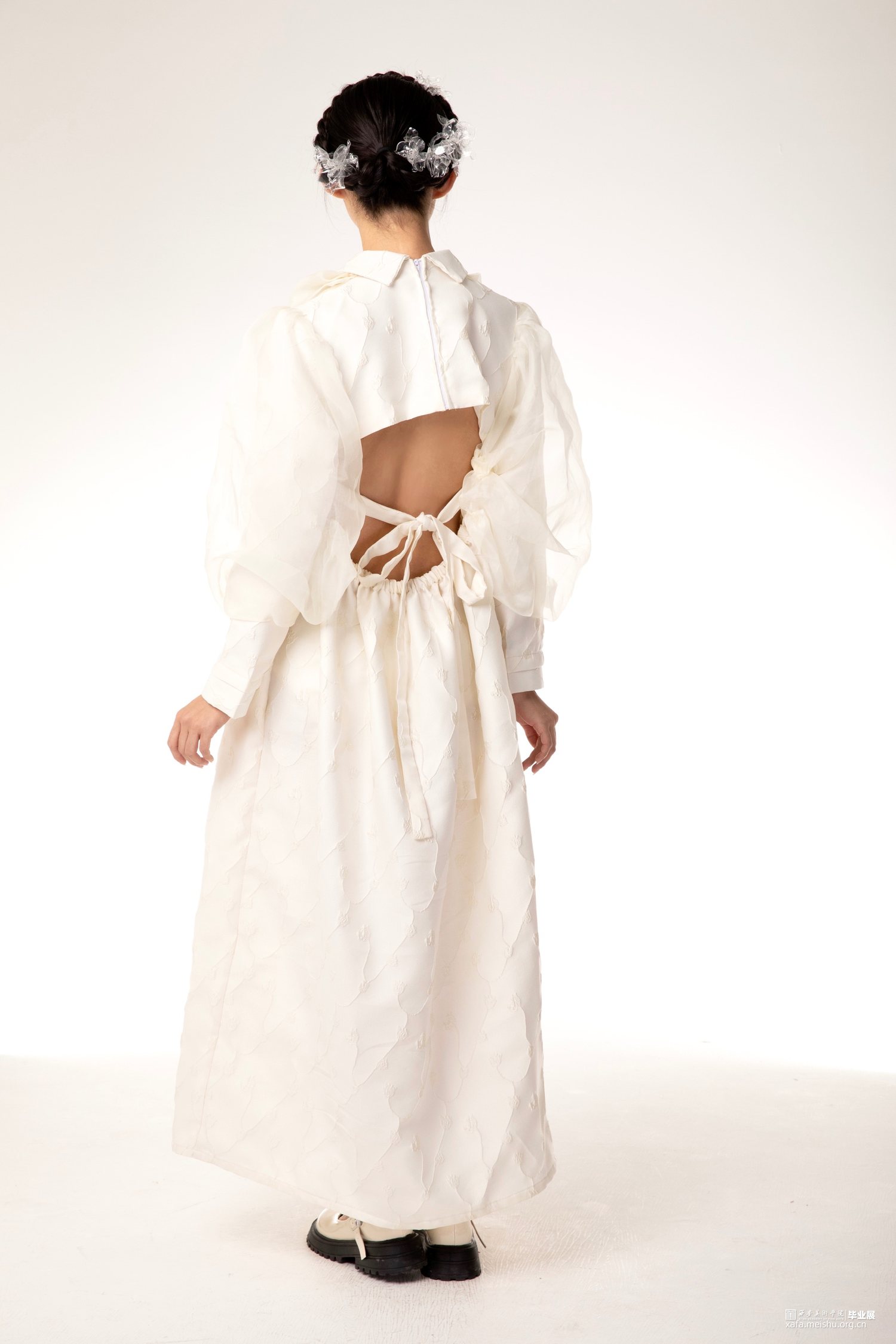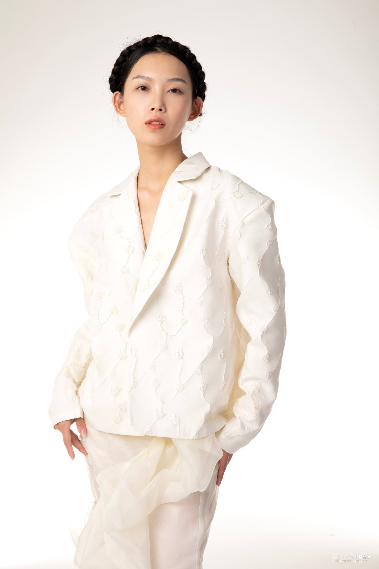 本人毕业设计以“宫”为主题,体现东西方宫廷韵味,灵感来源是西方巴洛克艺术风格,通过了解巴洛克时期的服装造型,在本人的毕业设计中服装廓形使用了泡泡袖、羊腿袖、A字型裙摆、束腰这些元素,毕业创作款式设计图,放大了服装的体量感,符合巴洛克艺术风格的服装设计,设计中,半透明的层次效果,增加了服装的空间感,纱料的泡泡袖叠加在里层提花面料上,让原本较为厚重的质感,更显的轻快活泼,加上巴洛克风格的荷叶边领口,使用的是更清透的纱料,复古与现代的结合,让服装不显的沉闷无聊。整个系列设计想表达的是充满浪漫气息的休闲女装。