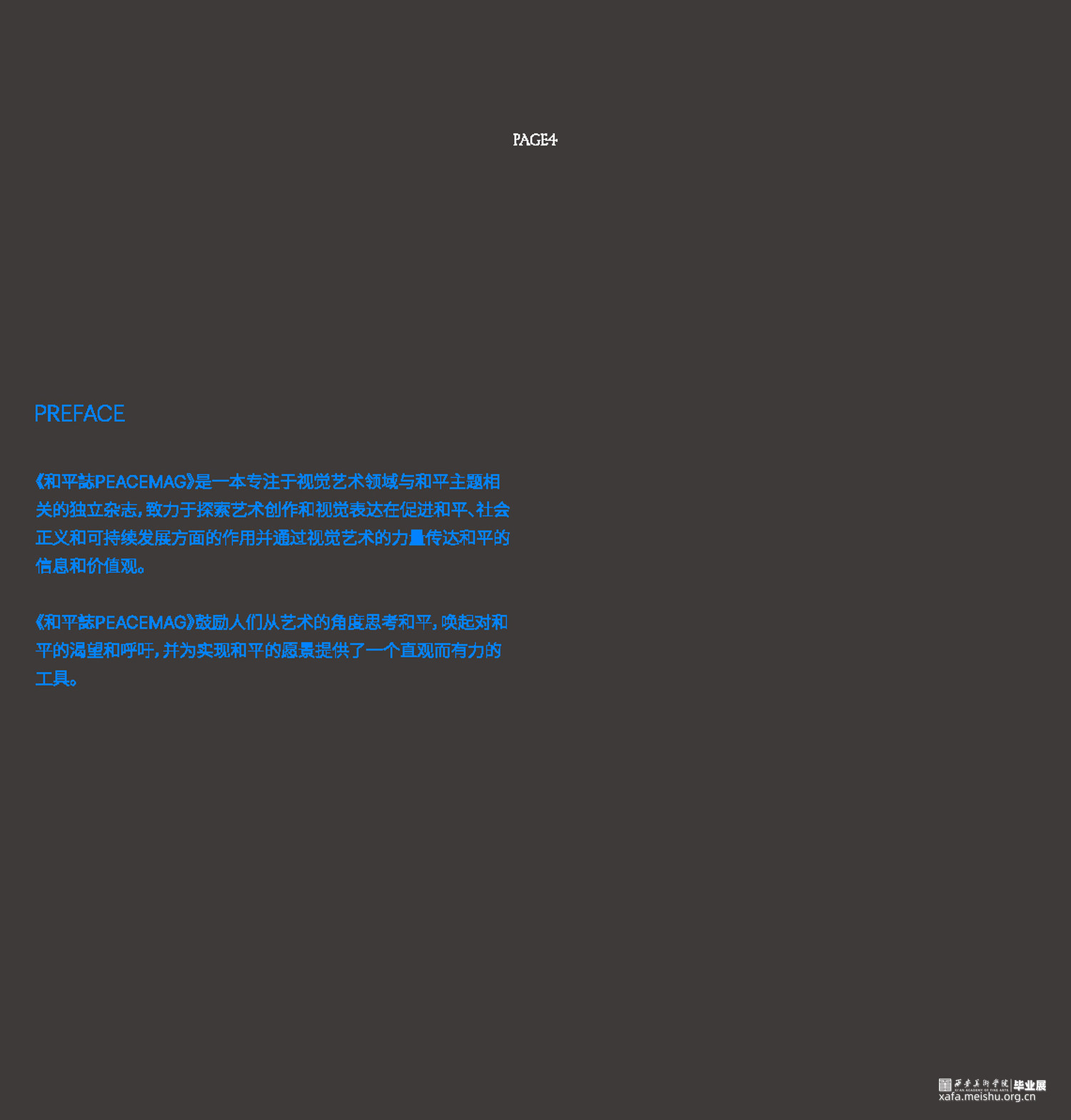 《和平誌PEACEMAG》以“PEACE”为主题,设计了一系列具有代性的和平主题图形设计,并将其以杂志的形式呈现。